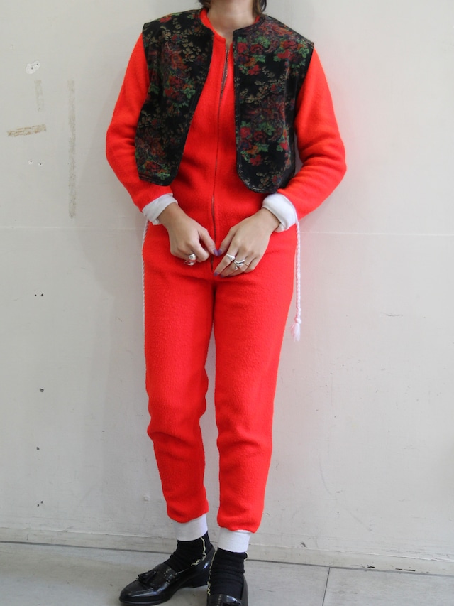 家庭用にsleep wearとしてつくられたオールインワン 一際目立つ鮮明な赤、cuteさと機能性をあわせた一枚です ベストやジャケットを重ねることで、コーディネートに幅を出してみるのがおすすめです◯ 状態:生地特有の毛羽立ちがあります。使用感あり。 素材:タグに記載なし size 裄丈76 身幅47 股上76(首から股まで) 股下66 わたり28 すそ12 着丈137cm model 163cm --------- <ご購入前にご確認ください> 当店の商品は、アメリカにて1点ずつハンドピックで買い付けた古着です。 検品のうえ出品しておりますが、見落としがある場合もございます。 古着特有の使用感・ほつれ・汚れなどがあることをご了承ください。 店頭でも同時販売しているため、 タイミングによっては売り切れとなる場合がございます。 また、返品・交換は一切お受けできませんのでご了承ください。 ⚫︎発送について ・簡易包装での発送となります。 ・急ぎの発送は対応できない場合がございます。 ・実店舗の休業日は、発送もお休みです。 (営業日はInstagramにてご案内しております。)