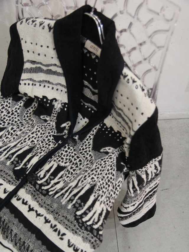 アニマル柄のゴブランジャケット 買付で出会うたびに安心するのと、何度見ても褪せない魅力とかわいさがあります 製品のクオリティとしても定評のあるインド製のものです こちらはキリンさんがあしらわれたモノトーンなデザイン Sサイズなので、普段M-Lを着用している私が着ると袖丈が若干短いです 下に着るトップスの袖丈を見せられるのでそれはそれでかわいい◯ 状態:小さな傷が2箇所ございます(写真最後) 素材:コットン100% made in INDIA size S 肩幅44 袖丈51 身幅50 着丈76cm model 163cm --------- <ご購入前にご確認ください> 当店の商品は、アメリカにて1点ずつハンドピックで買い付けた古着です。 検品のうえ出品しておりますが、見落としがある場合もございます。 古着特有の使用感・ほつれ・汚れなどがあることをご了承ください。 店頭でも同時販売しているため、 タイミングによっては売り切れとなる場合がございます。 また、返品・交換は一切お受けできませんのでご了承ください。 ⚫︎発送について ・簡易包装での発送となります。 ・急ぎの発送は対応できない場合がございます。 ・実店舗の休業日は、発送もお休みです。 (営業日はInstagramにてご案内しております。)