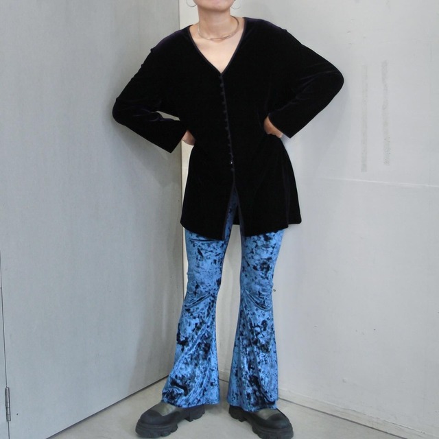 くすんだブルーカラー、ベロア素材のフレアパンツです 裾にかけて大きくひろがったシルエットが特徴的です スニーカーやブーツと合わせても相性◎ ウエストはゴムなので伸縮性がございます 状態:目立った傷や汚れはございません 素材:タグ写真に記載 ※平置きでの計測 ウエスト66 ※伸縮性あり 股上26 股下75 総丈100 わたり幅21cm model 163cm アメリカより1点1点、ハンドピックにて買い付けております。 検品してから出品していますが、万が一見落としてしまっている場合もあります。 古着のため、ある程度の使用感がございます。 また、ほつれ・汚れなどがある場合もございます。 同時に店舗でも販売しておりますので、 先に売り切れる場合もございます。 返品等はできませんので、ご了承ください。 どうぞよろしくお願い致します。
