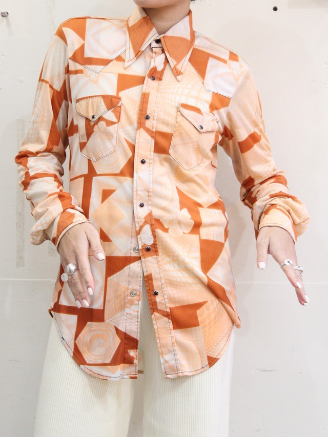 70年代のデザインシャツ この時代らしい襟元のデザイン、今の時代のコーディネートにも馴染むかわいさ◯ 見えてないのですが、薄手のニットトップスな上に着てます 年中を通して、スタイリングで活躍する一枚です 状態:ヨレ感あり。ほつれ、小さなダメージあり(写真最後) 素材:35%ナイロン 65%アセテート size 肩幅43 袖丈69 身幅47 着丈80cm model 163cm --------- <ご購入前にご確認ください> 当店の商品は、アメリカにて1点ずつハンドピックで買い付けた古着です。 検品のうえ出品しておりますが、見落としがある場合もございます。 古着特有の使用感・ほつれ・汚れなどがあることをご了承ください。 店頭でも同時販売しているため、 タイミングによっては売り切れとなる場合がございます。 また、返品・交換は一切お受けできませんのでご了承ください。 ⚫︎発送について ・簡易包装での発送となります。 ・急ぎの発送は対応できない場合がございます。 ・実店舗の休業日は、発送もお休みです。 (営業日はInstagramにてご案内しております。)