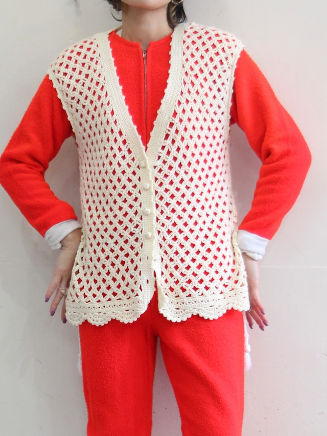 この時期、シャツやワンピースの上から重ねたり、アウターから覗かせるように着てもかわいい◯ ワンパターンになりがちな冬のコーディネートに、新たな発想をもたらしてくれる救世主的アイテムです。 状態:目立った傷や汚れはなし 素材:タグなしのため不明 size 肩幅51 身幅46 着丈72cm model 163cm --------- <ご購入前にご確認ください> 当店の商品は、アメリカにて1点ずつハンドピックで買い付けた古着です。 検品のうえ出品しておりますが、見落としがある場合もございます。 古着特有の使用感・ほつれ・汚れなどがあることをご了承ください。 店頭でも同時販売しているため、 タイミングによっては売り切れとなる場合がございます。 また、返品・交換は一切お受けできませんのでご了承ください。 ⚫︎発送について ・簡易包装での発送となります。 ・急ぎの発送は対応できない場合がございます。 ・実店舗の休業日は、発送もお休みです。 (営業日はInstagramにてご案内しております。)
