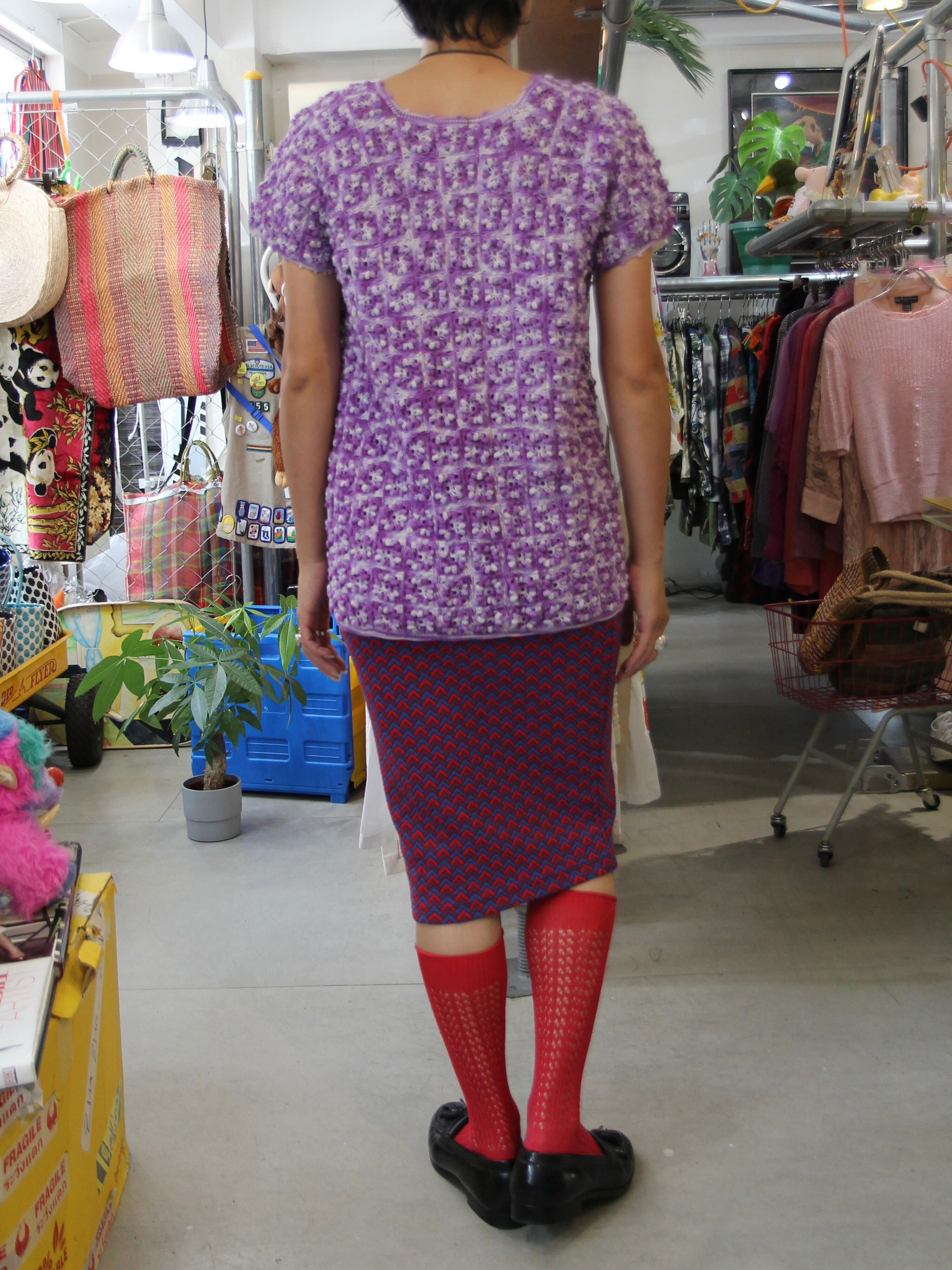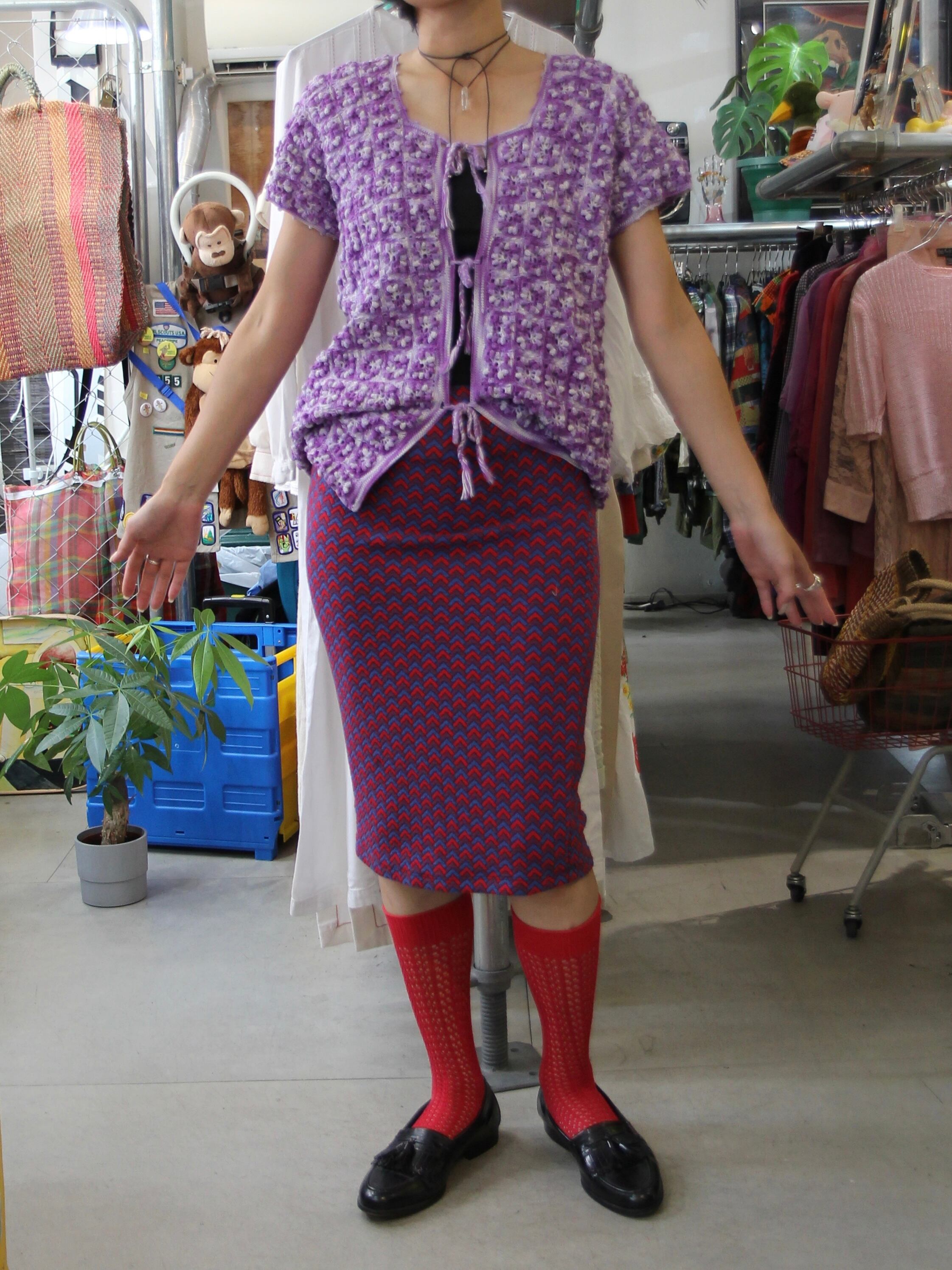 パープル×レッド×ブルーのカラーコンビネーションが印象的なタイトスカートです