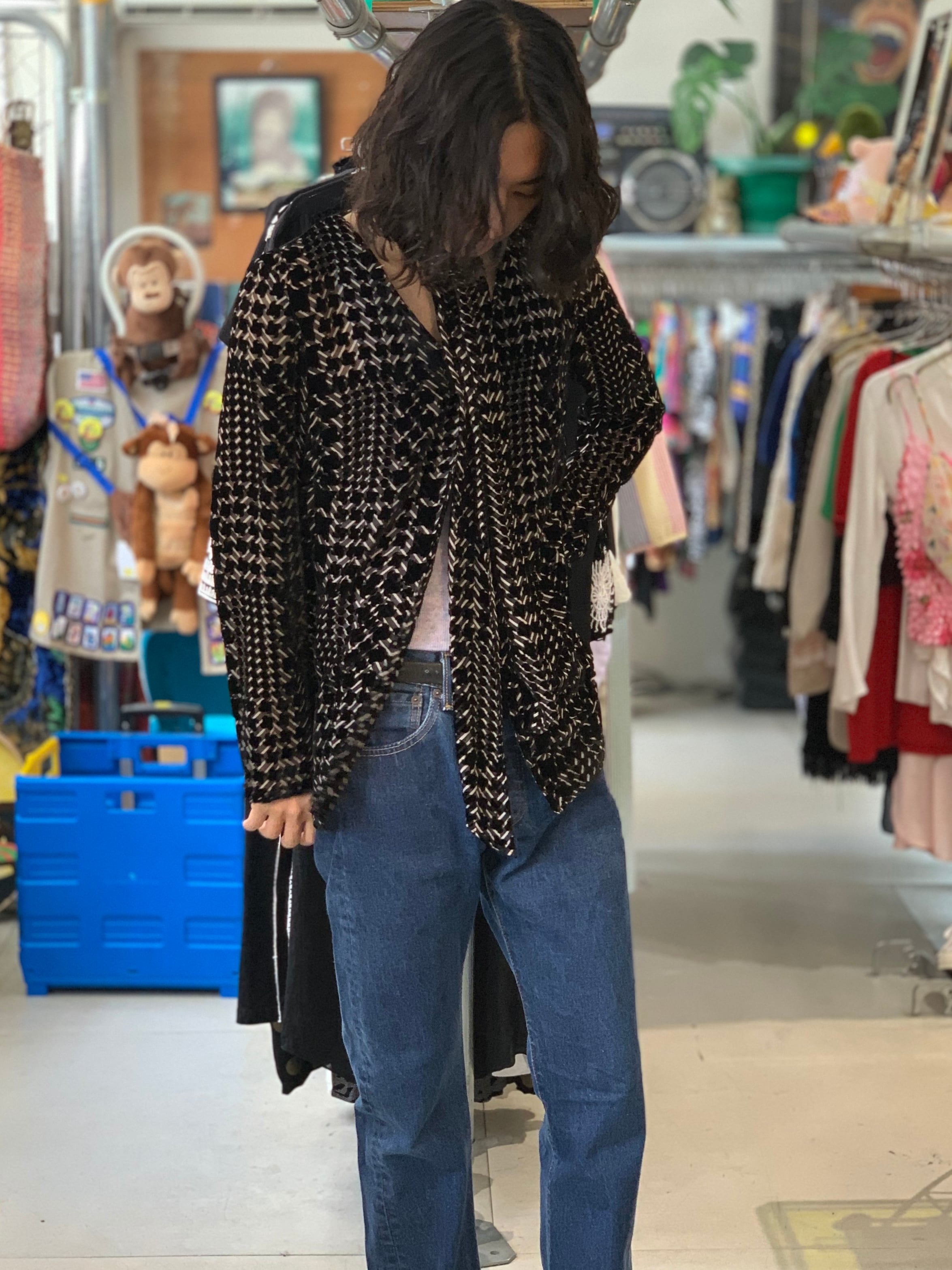 シアー素材にベロアで大小細かい千鳥格子の柄が入ってます