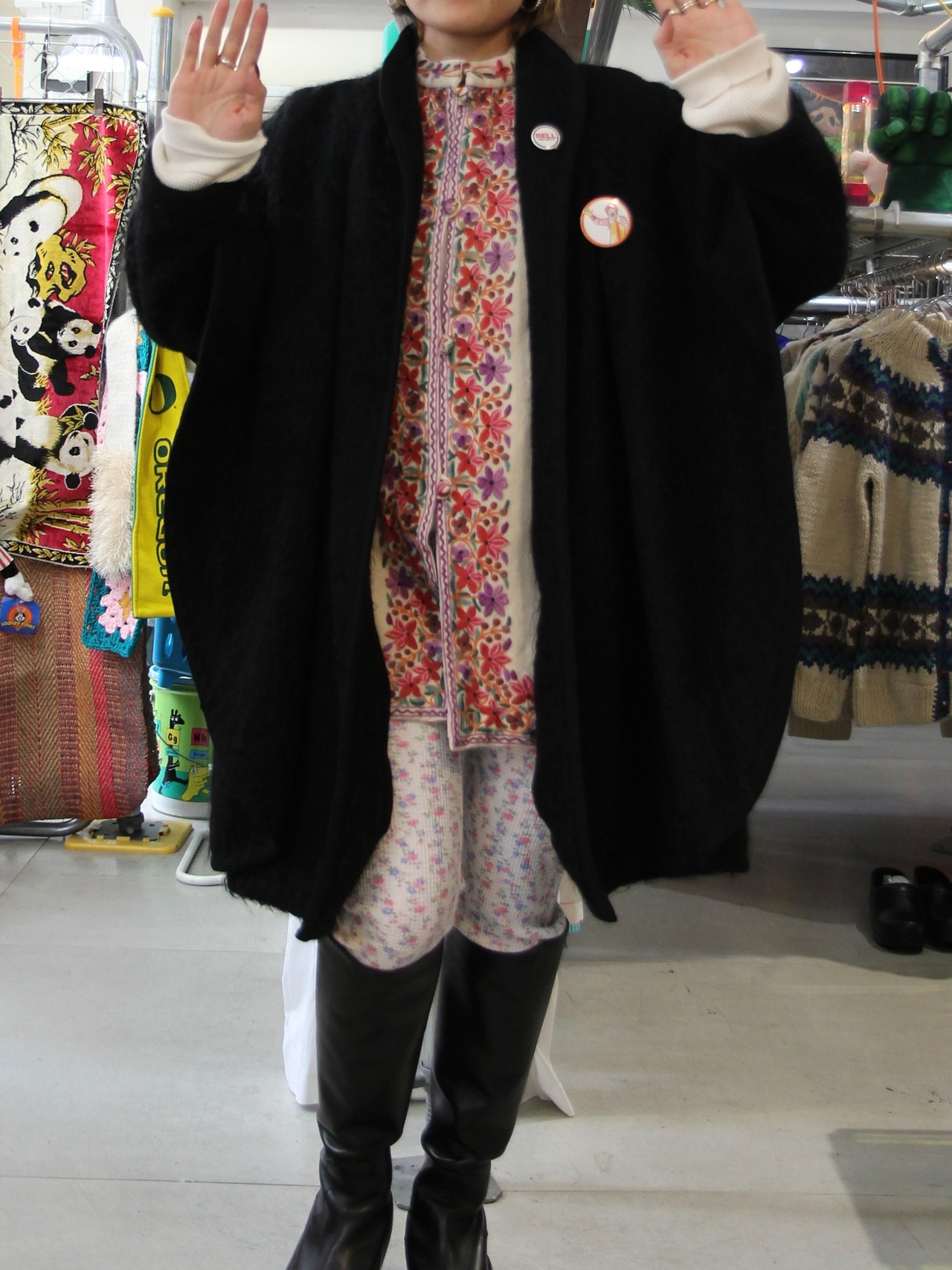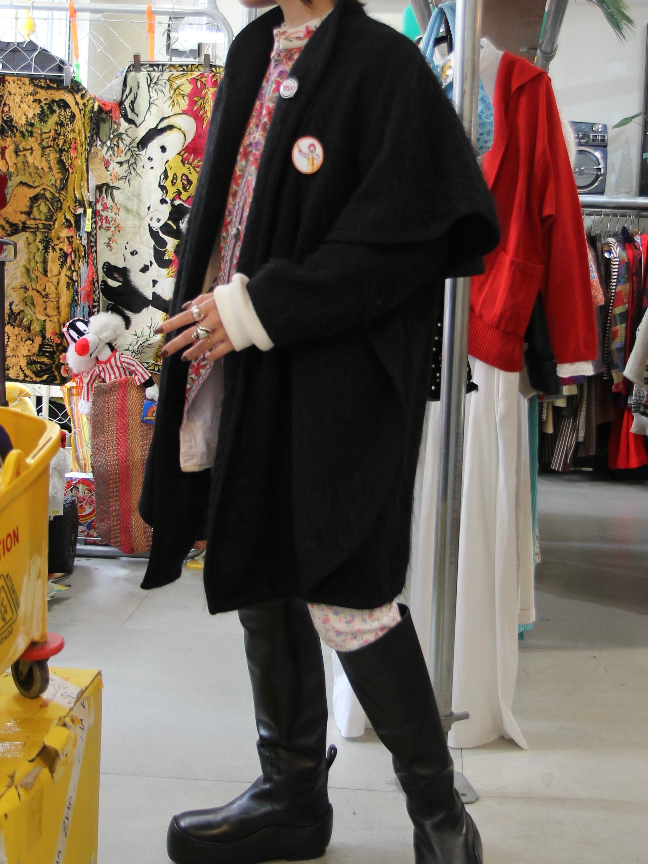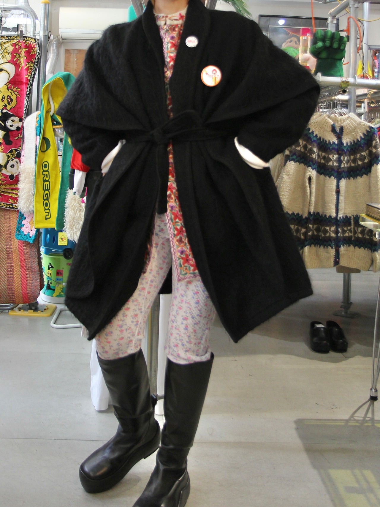 大きな襟と背中にかけて広がるハネのシルエットが特徴的