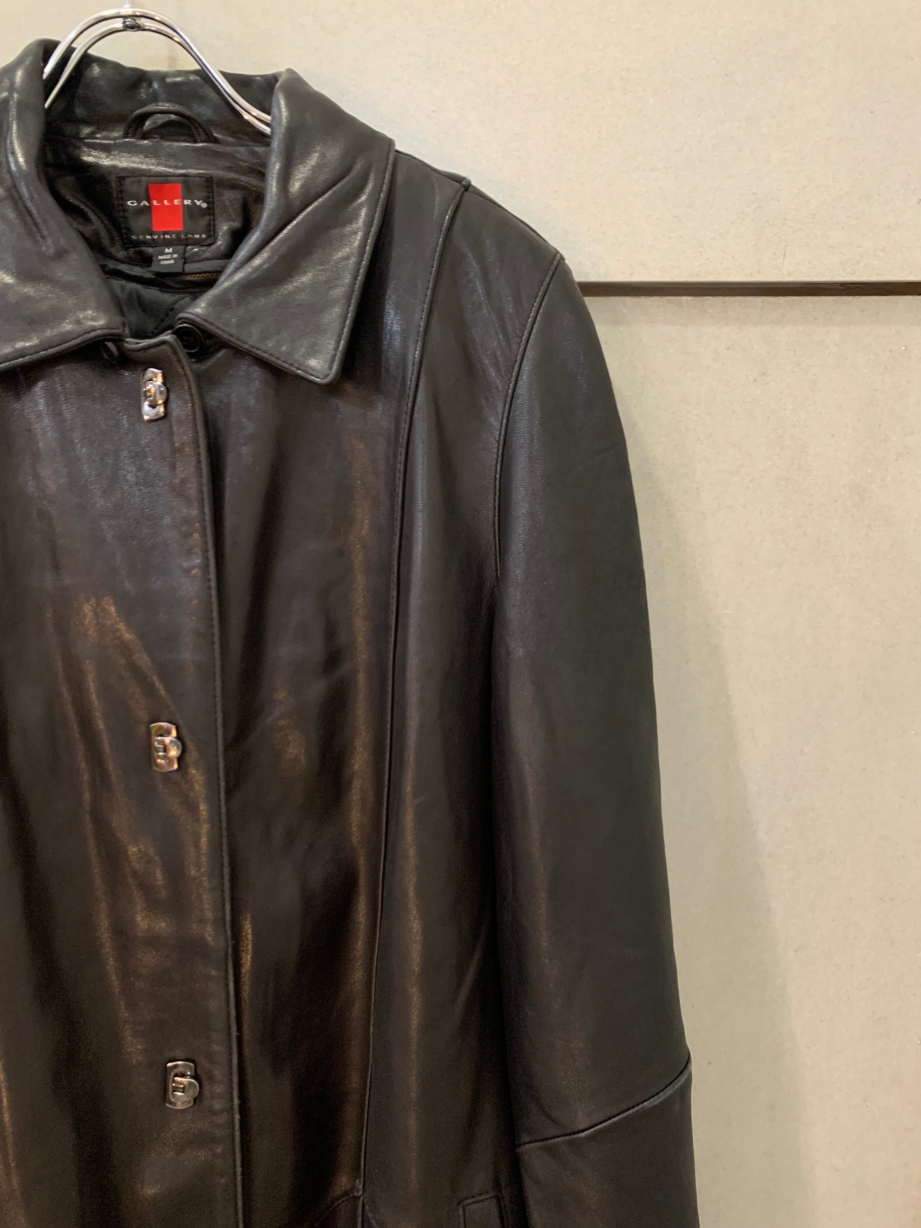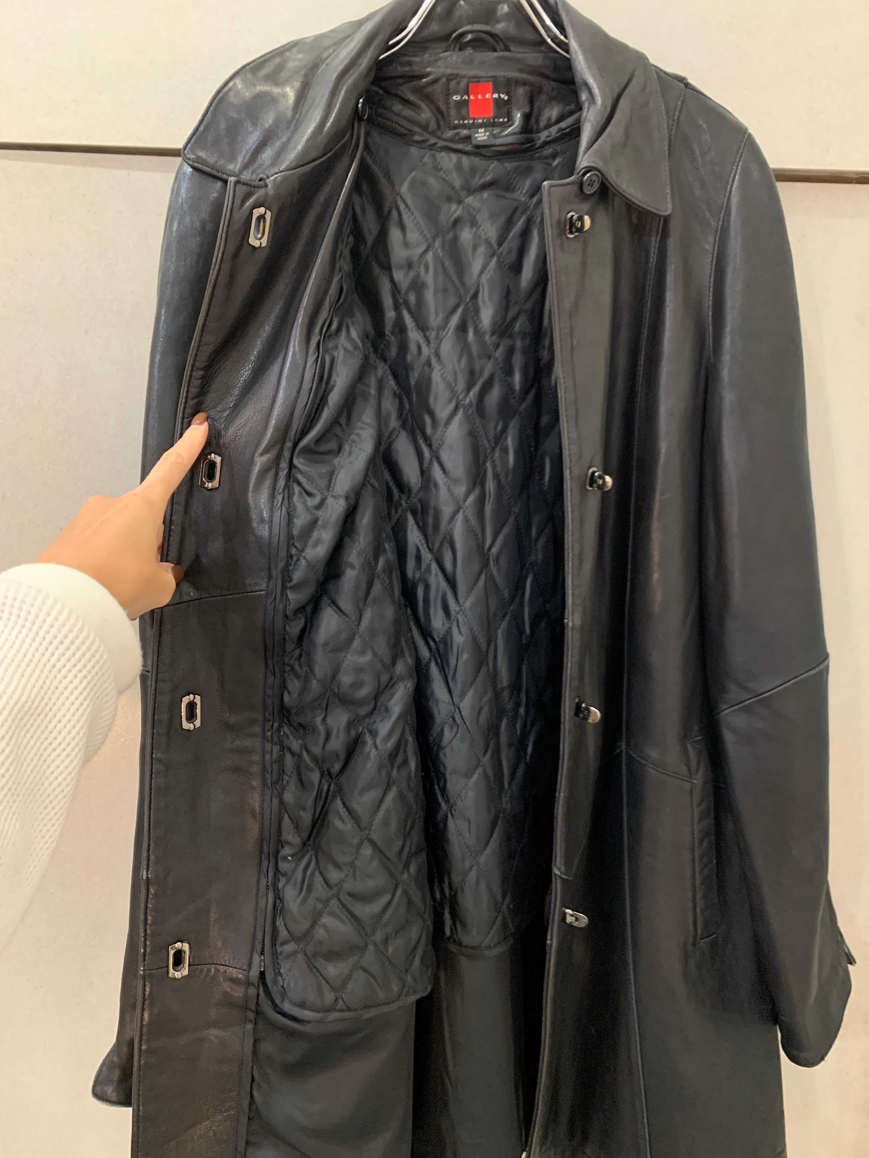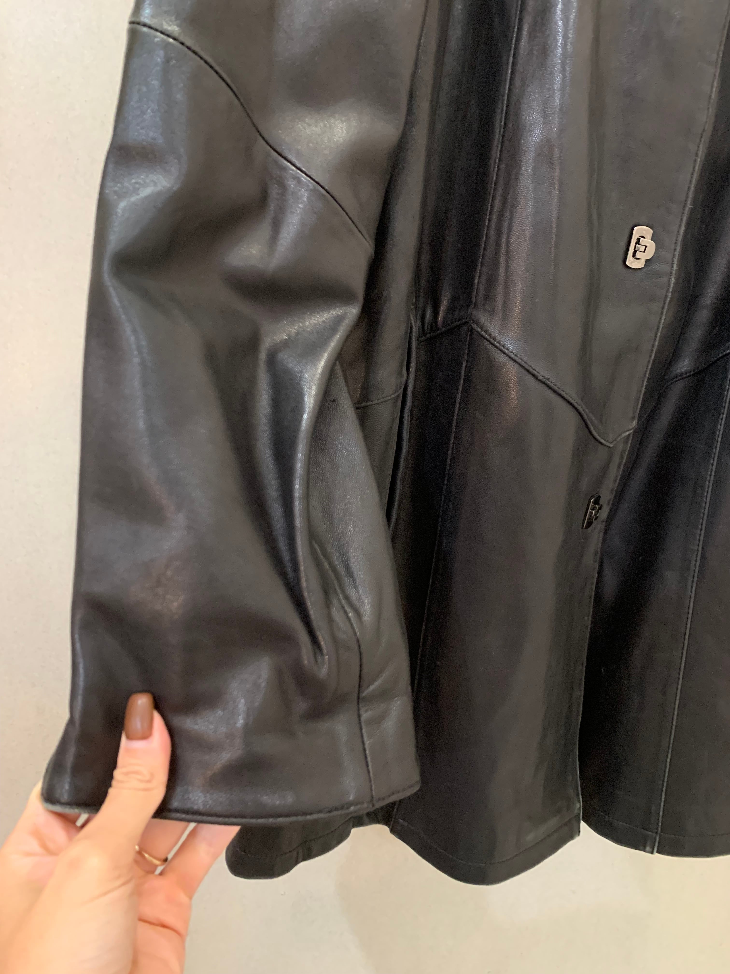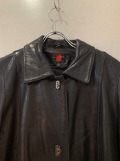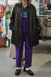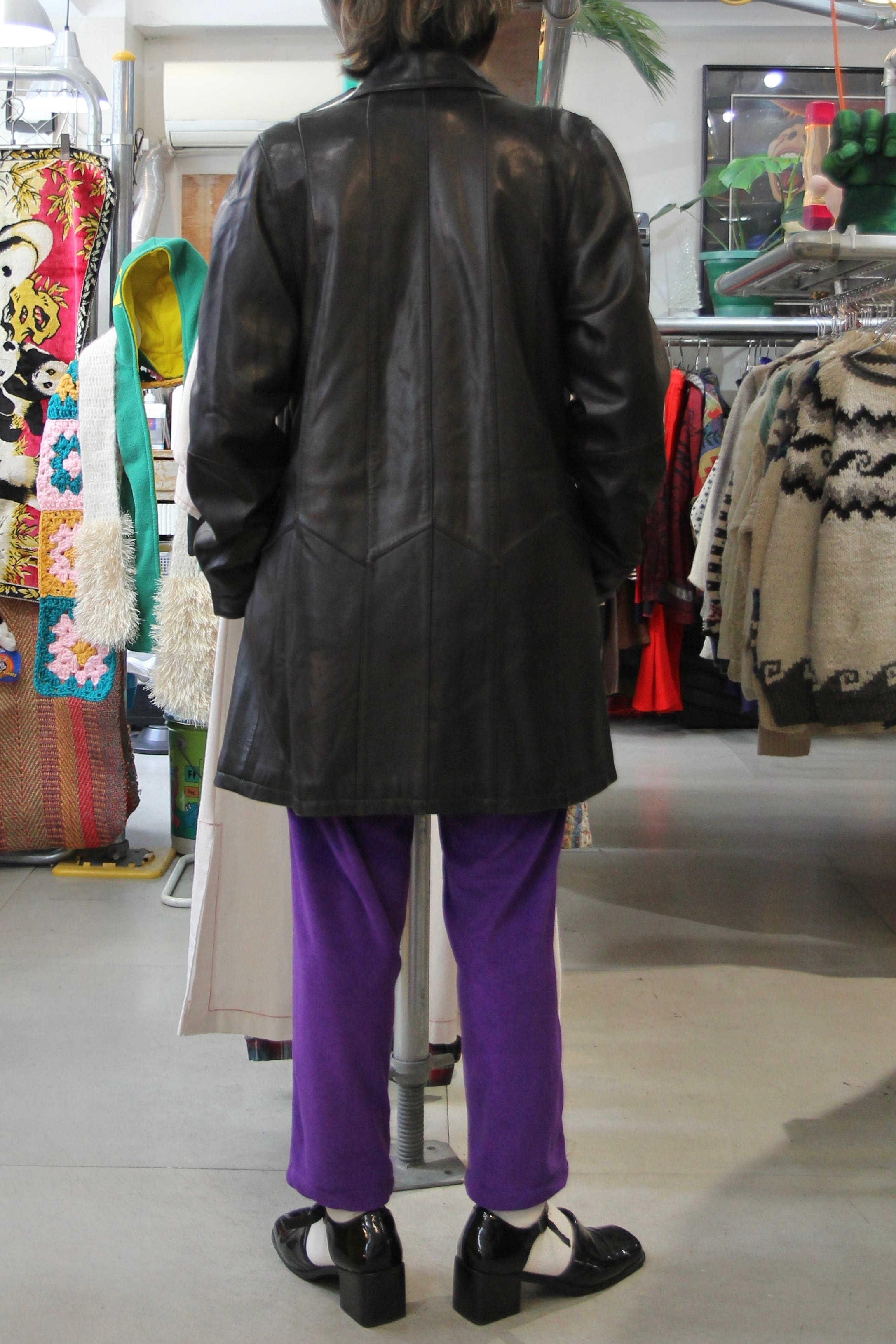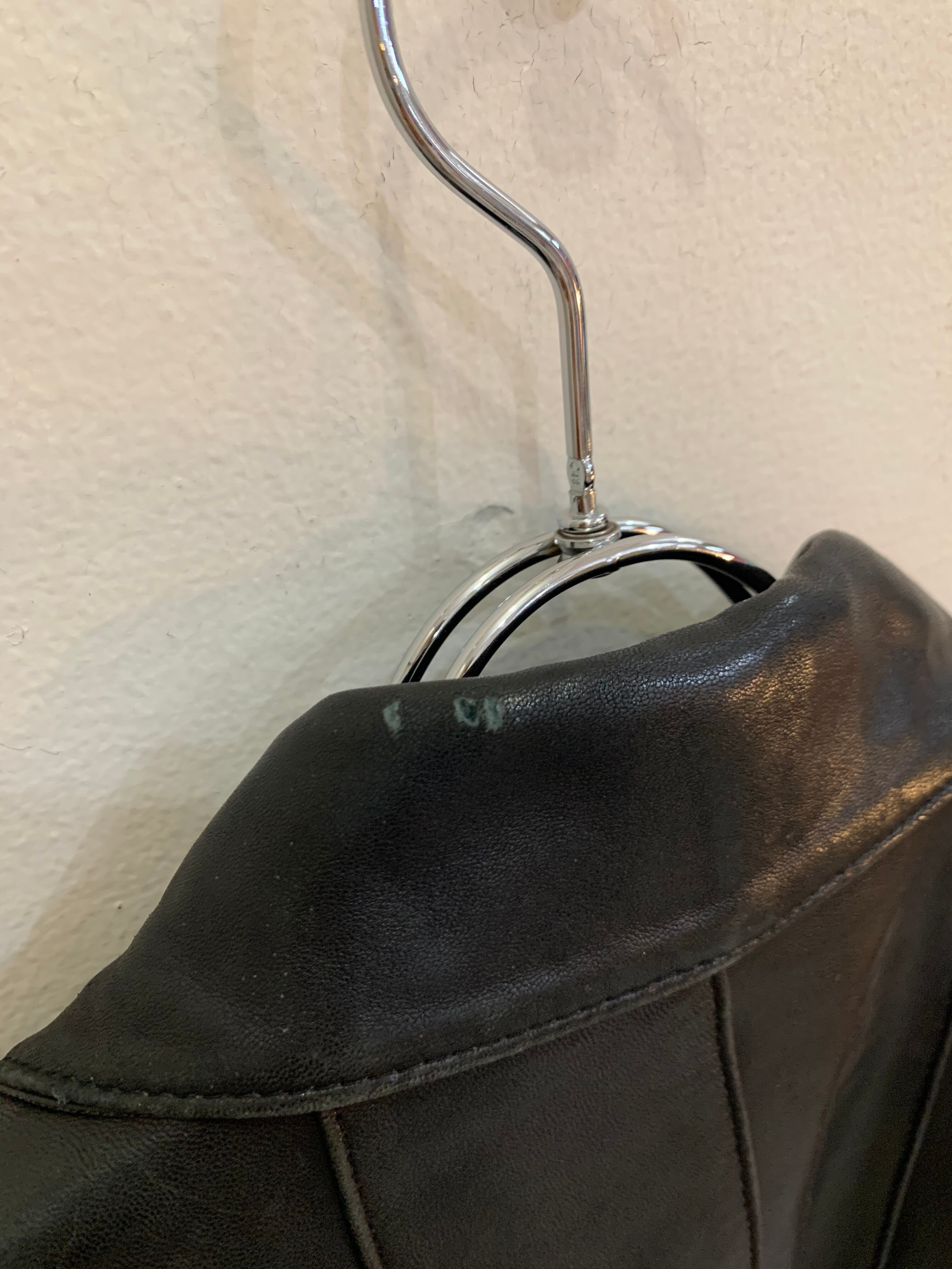 後ろ側は黒レザーのパッチワークデザインで、留め具のボタンにもこだわりが感じられる粋な一枚