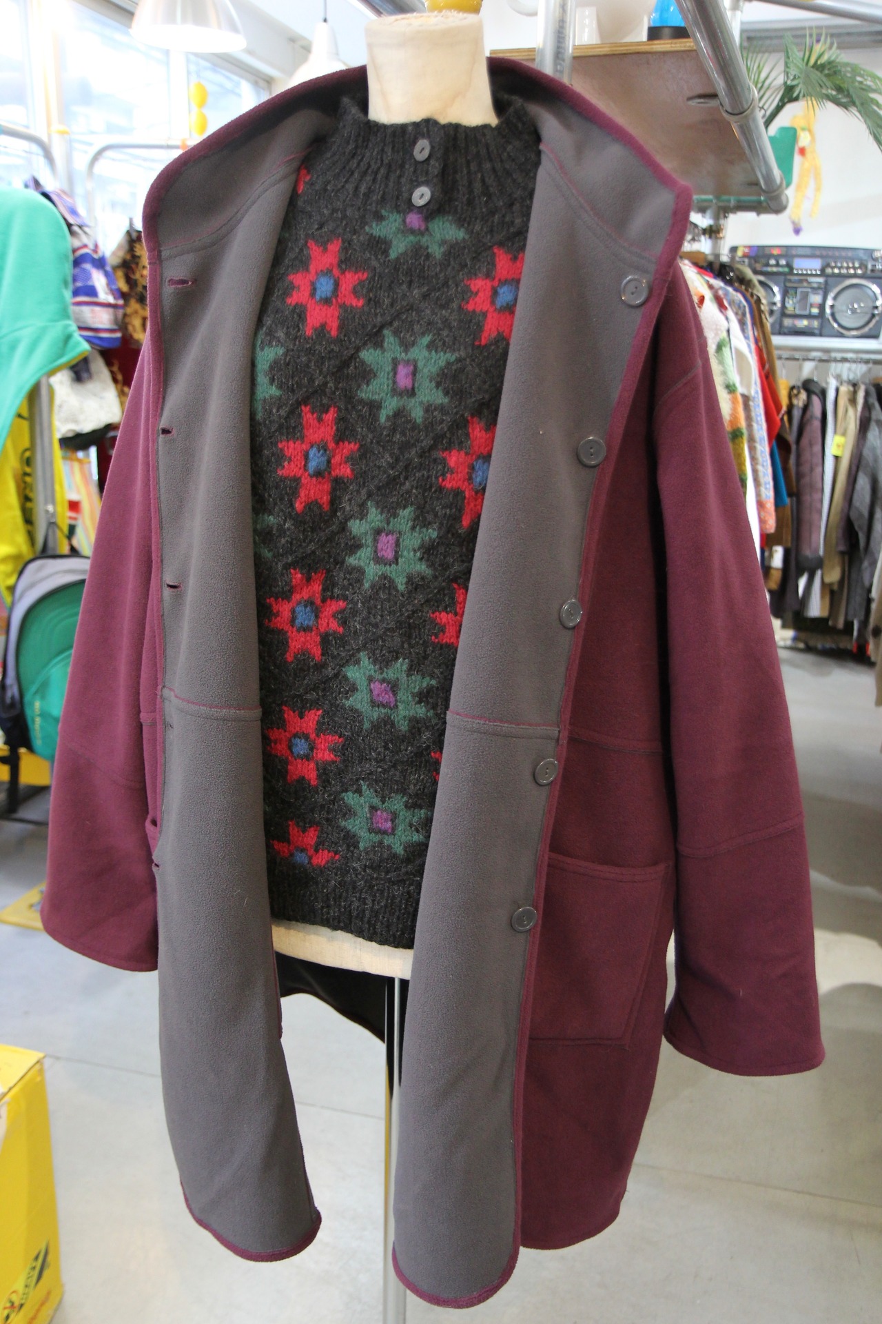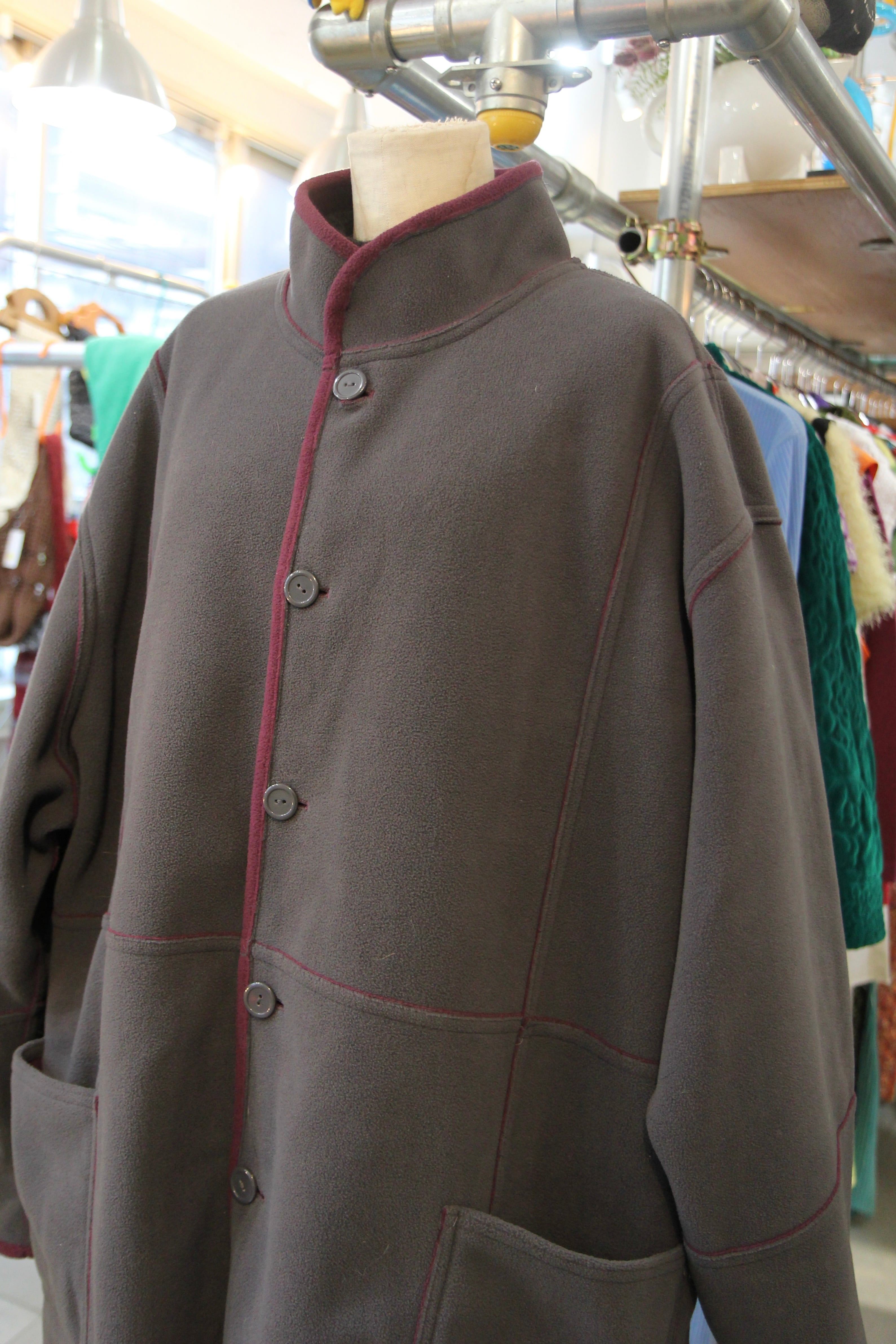 パープルとグレー、どちらも楽しめるリバーシブルコートです。
