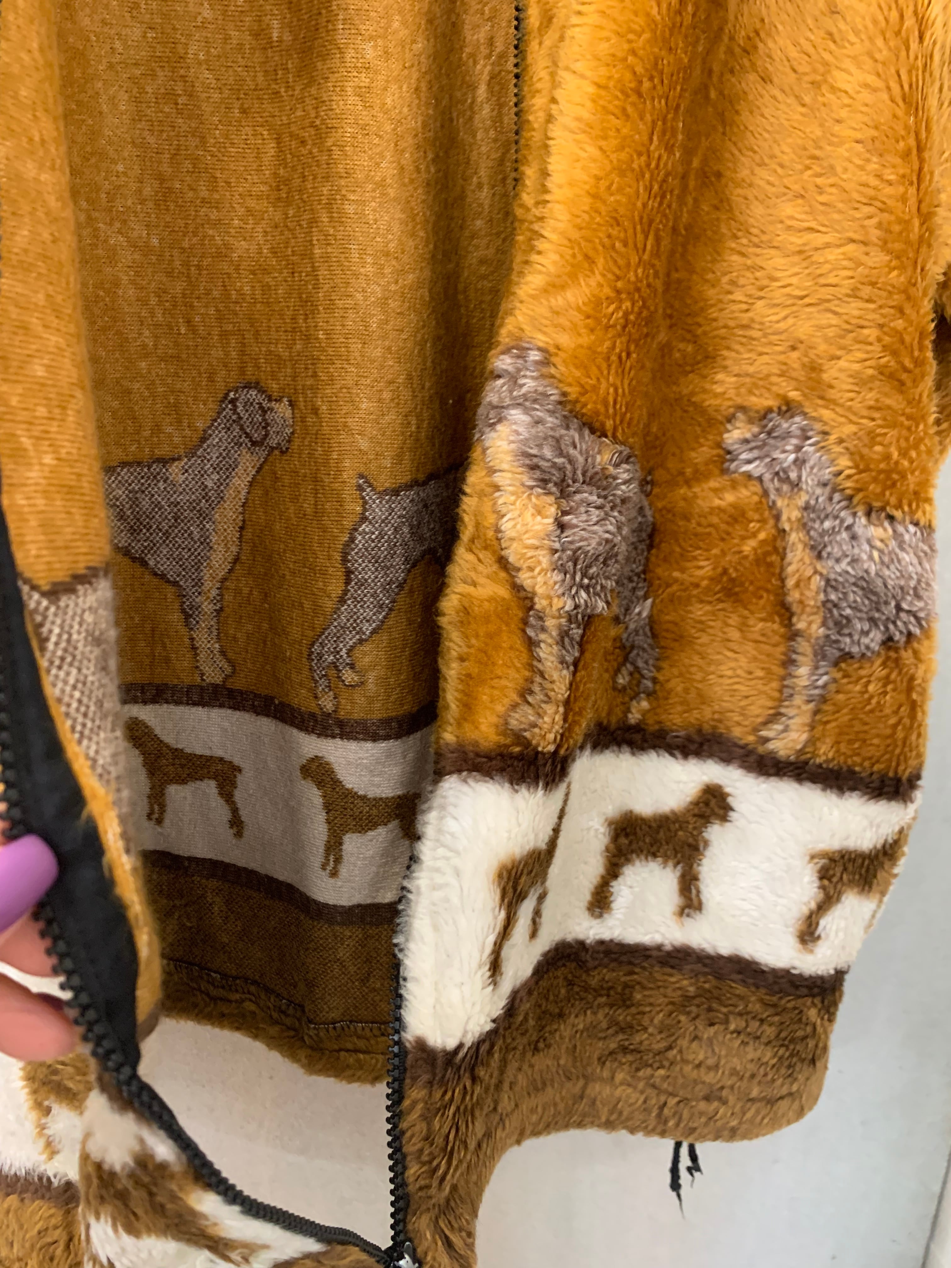 360度、犬のイラストがあしらわれたアメリカ製のフリースジャケットです