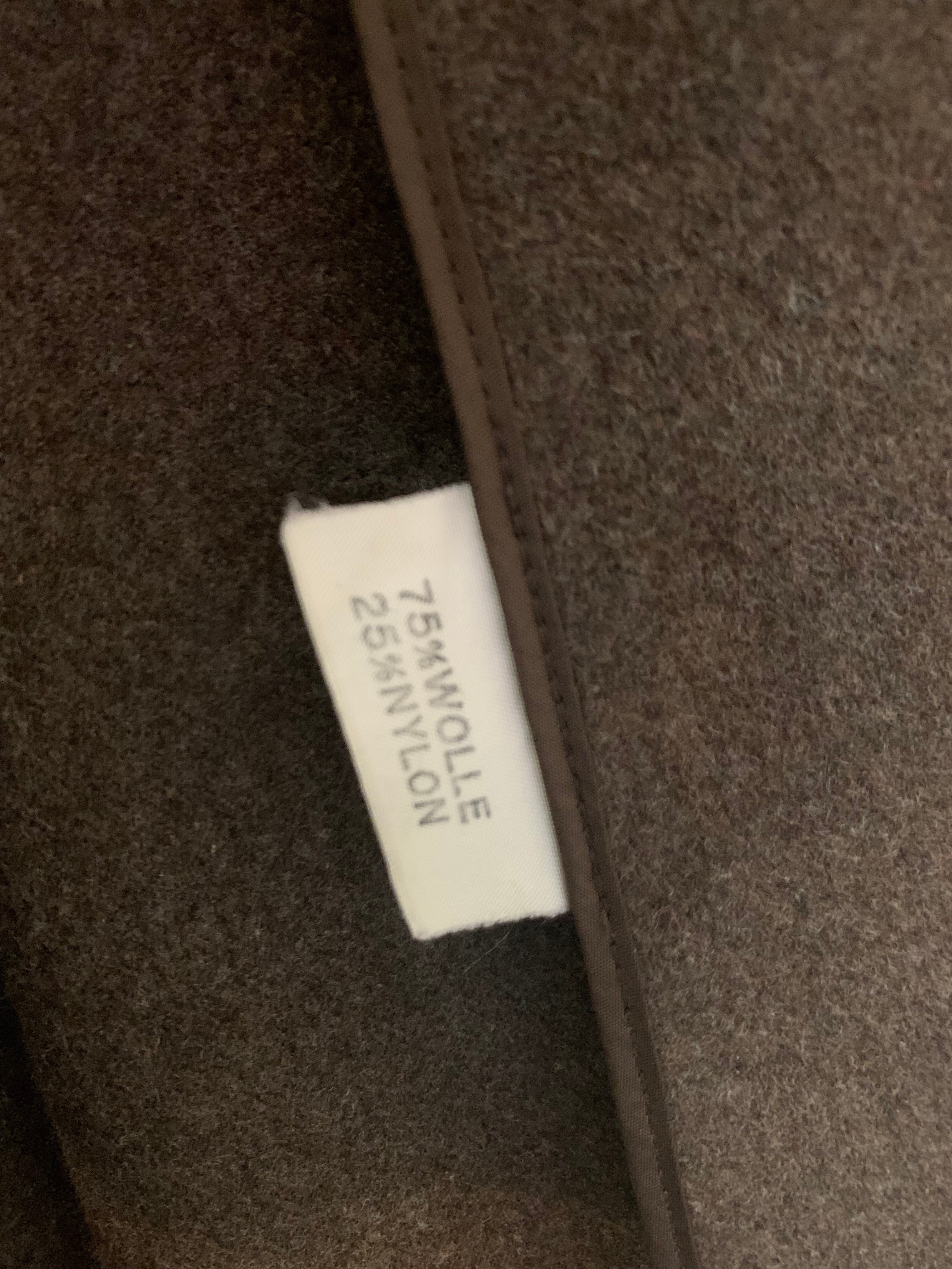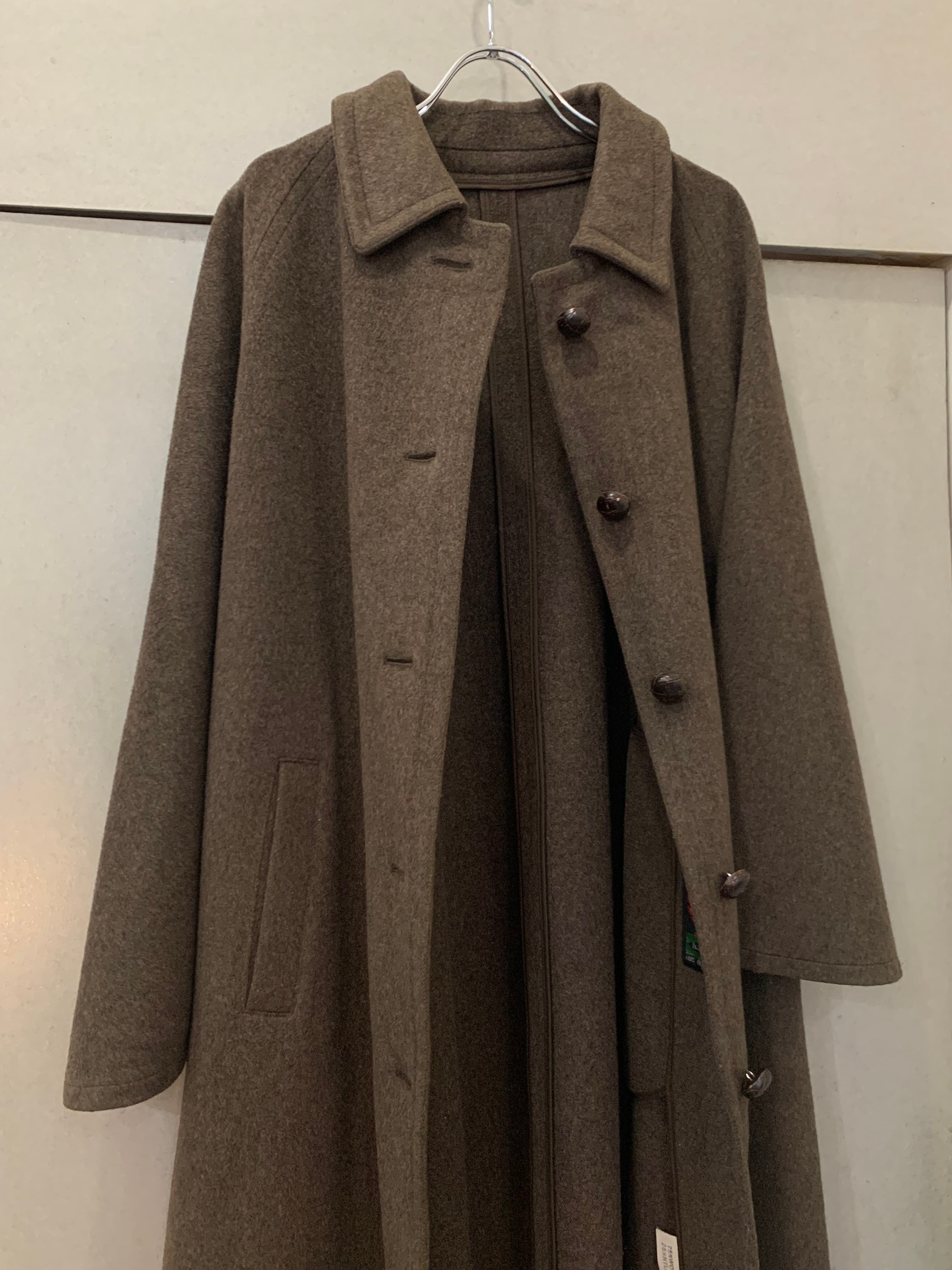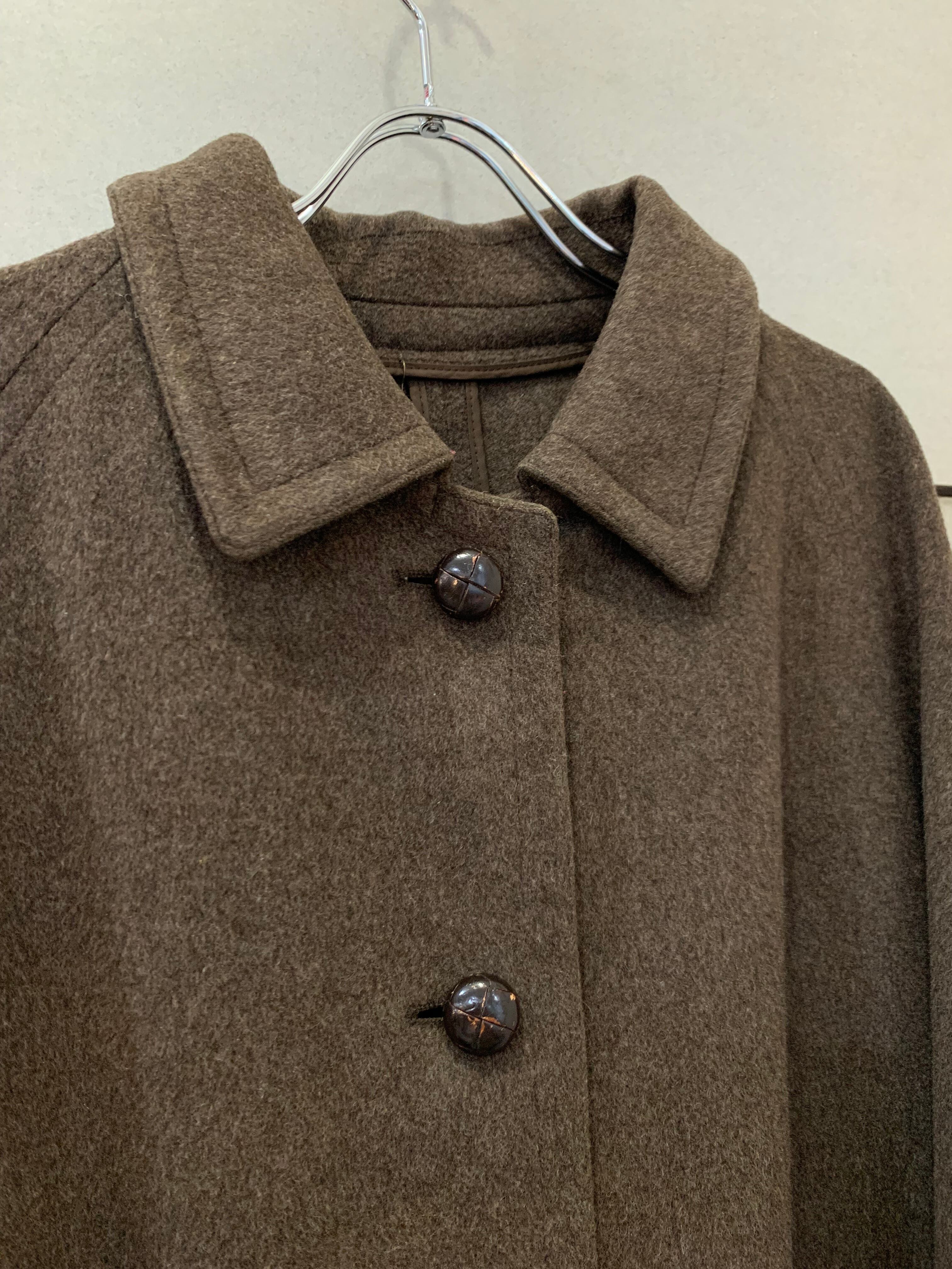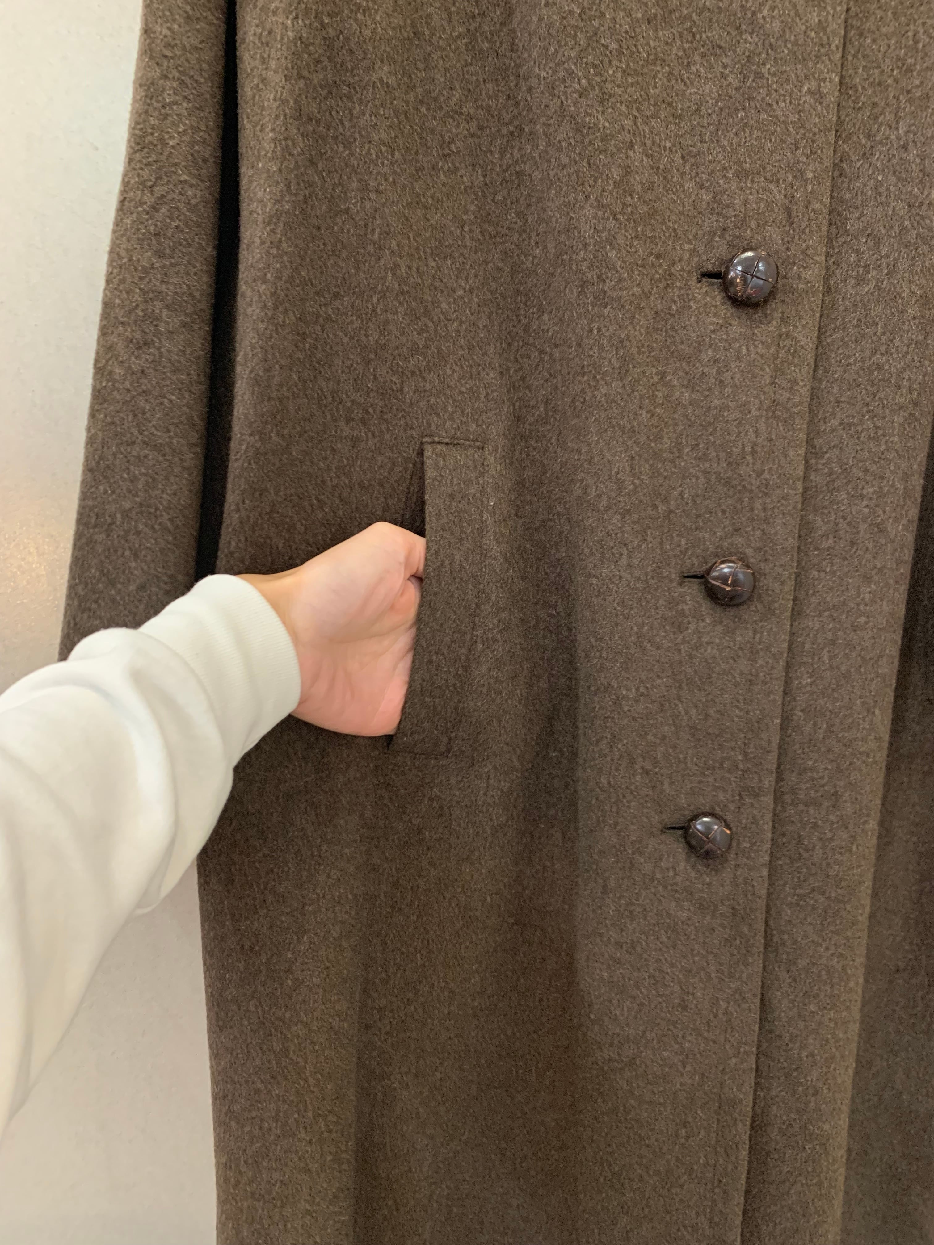 ポンチョやケープのような袖デザイン、ぷっくりとした胡桃ボタン、コーディネートしやすいブラウンカラー。