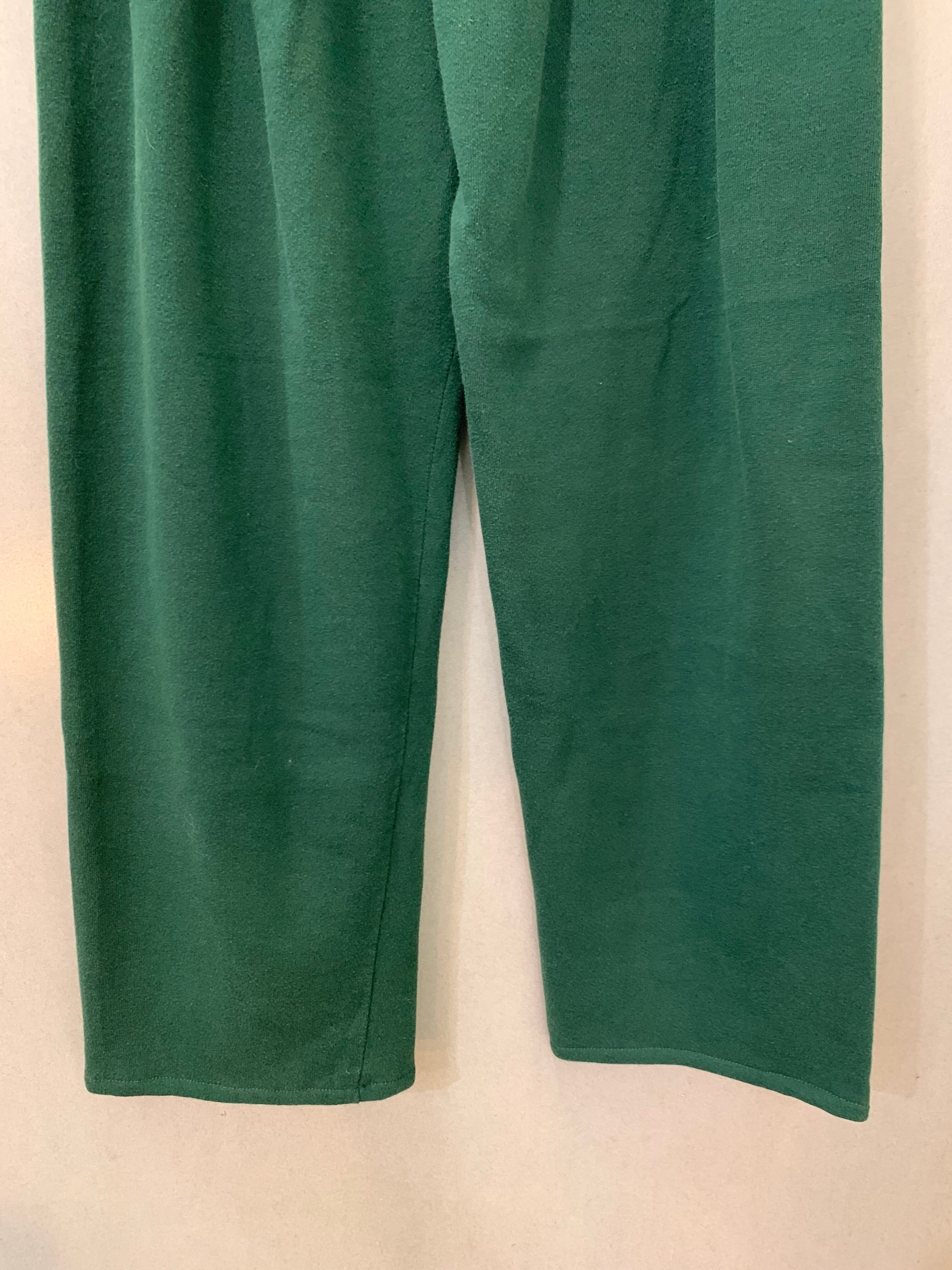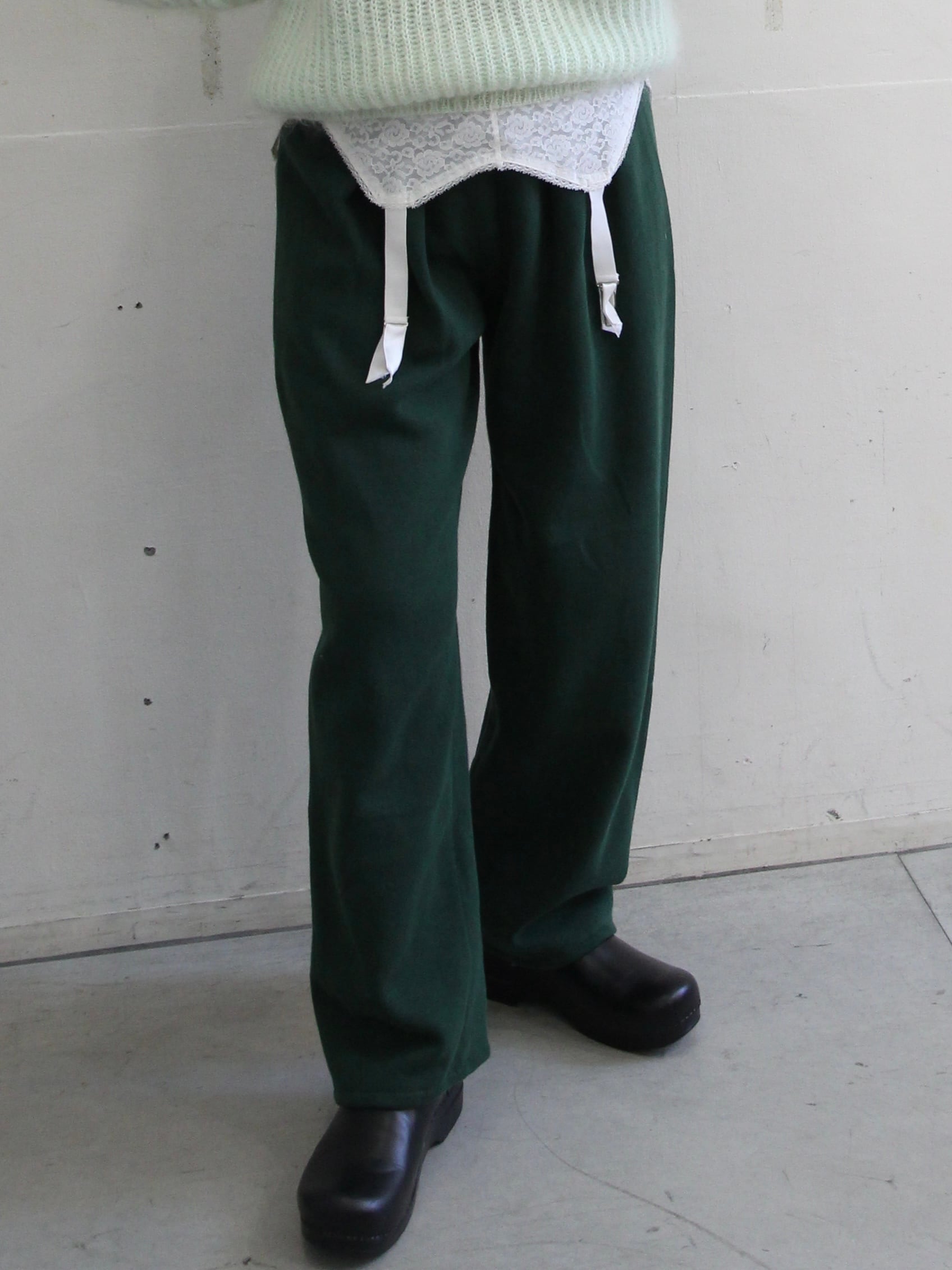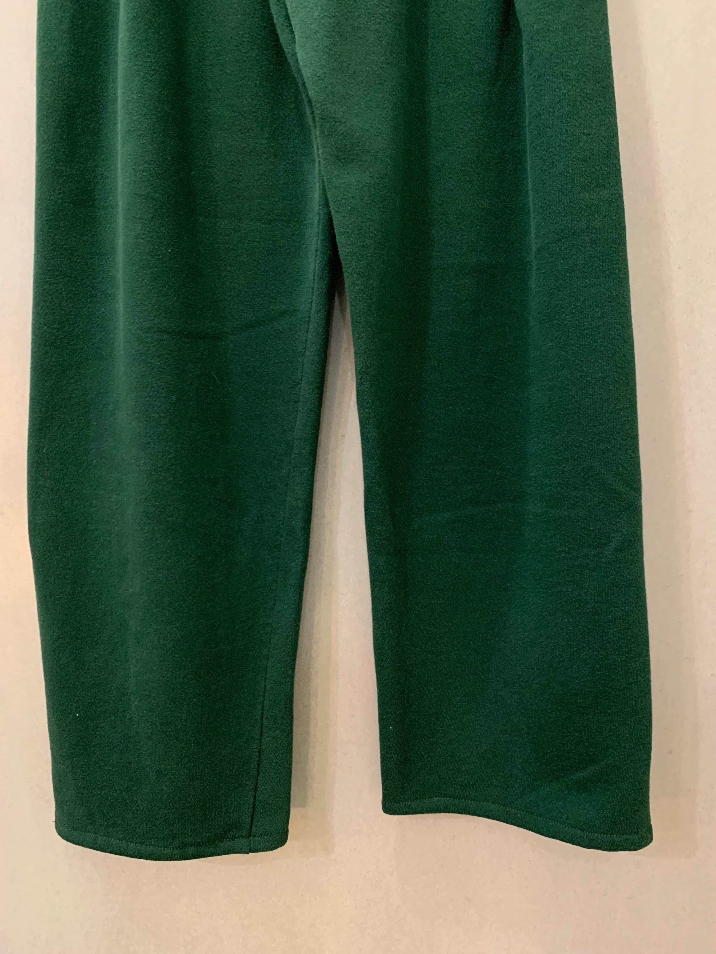 シルエットがきれいなダークグリーンのスウェットボトム