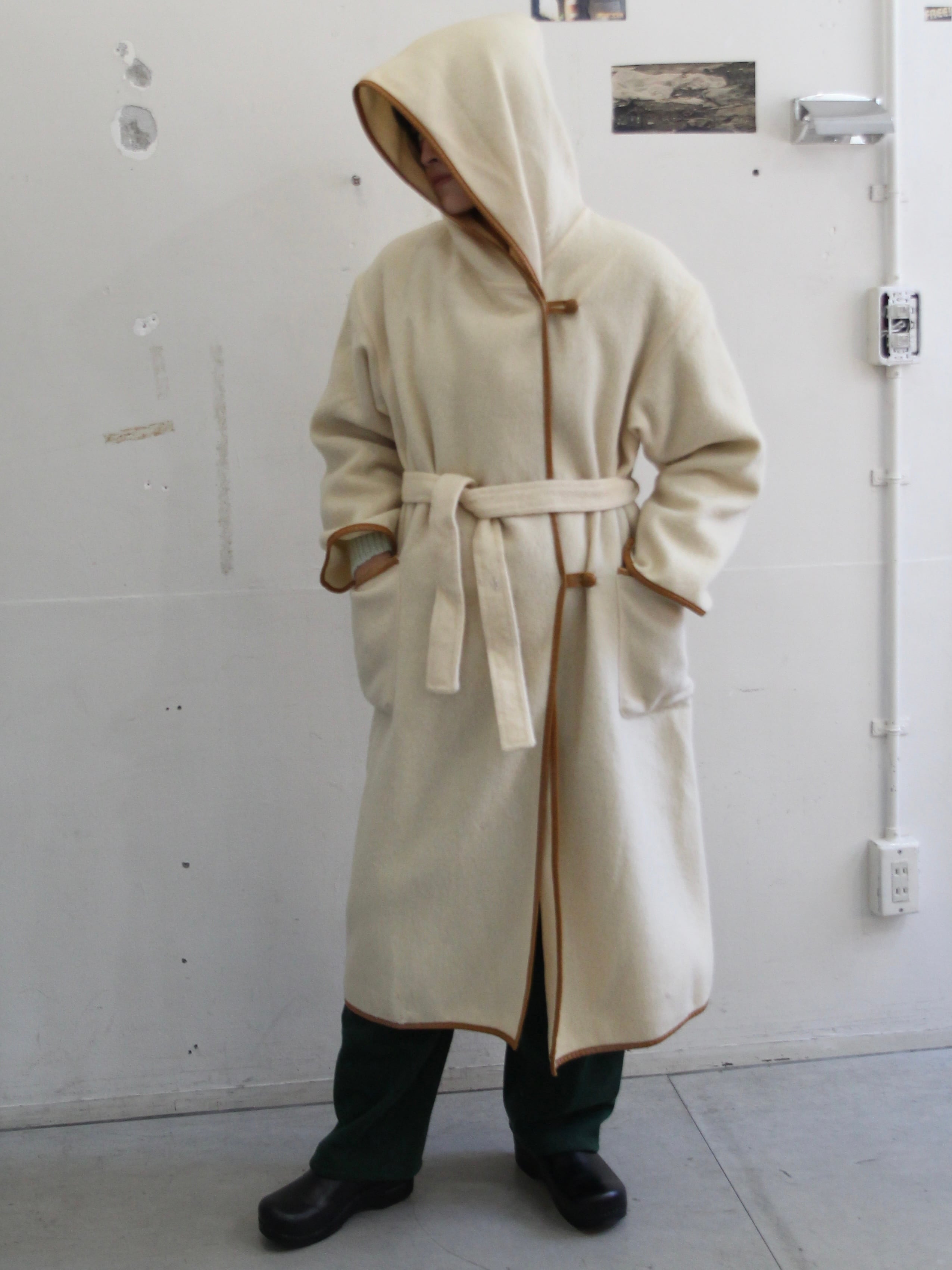 100%ウール素材のフーディコート