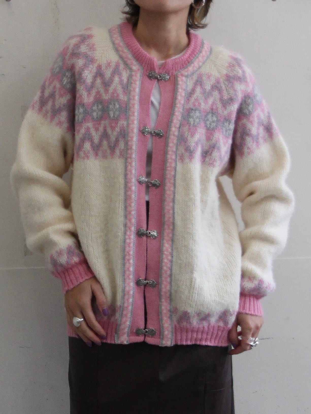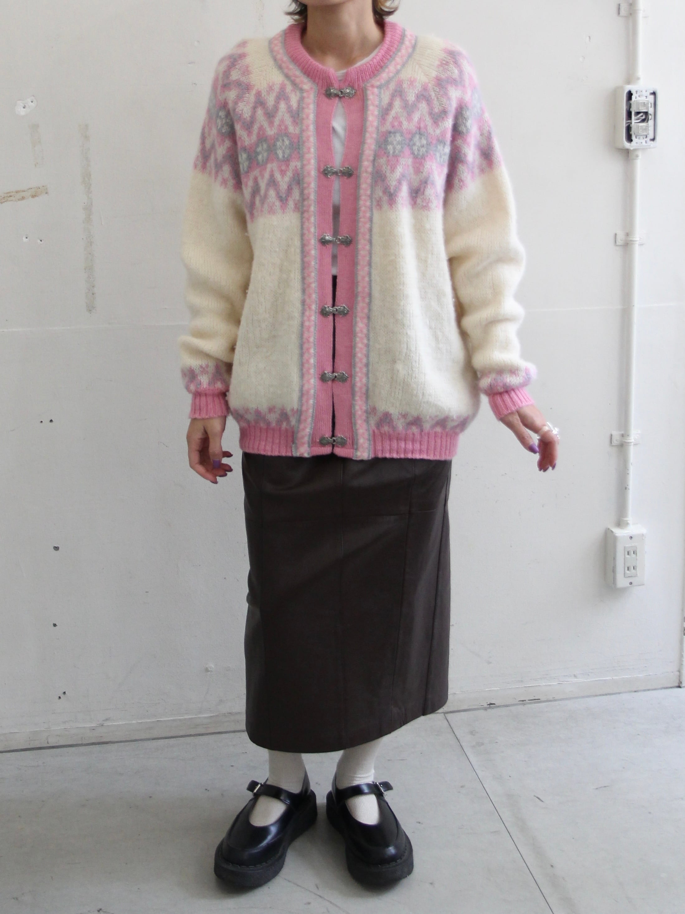 ピンクのノルディックカーディガン