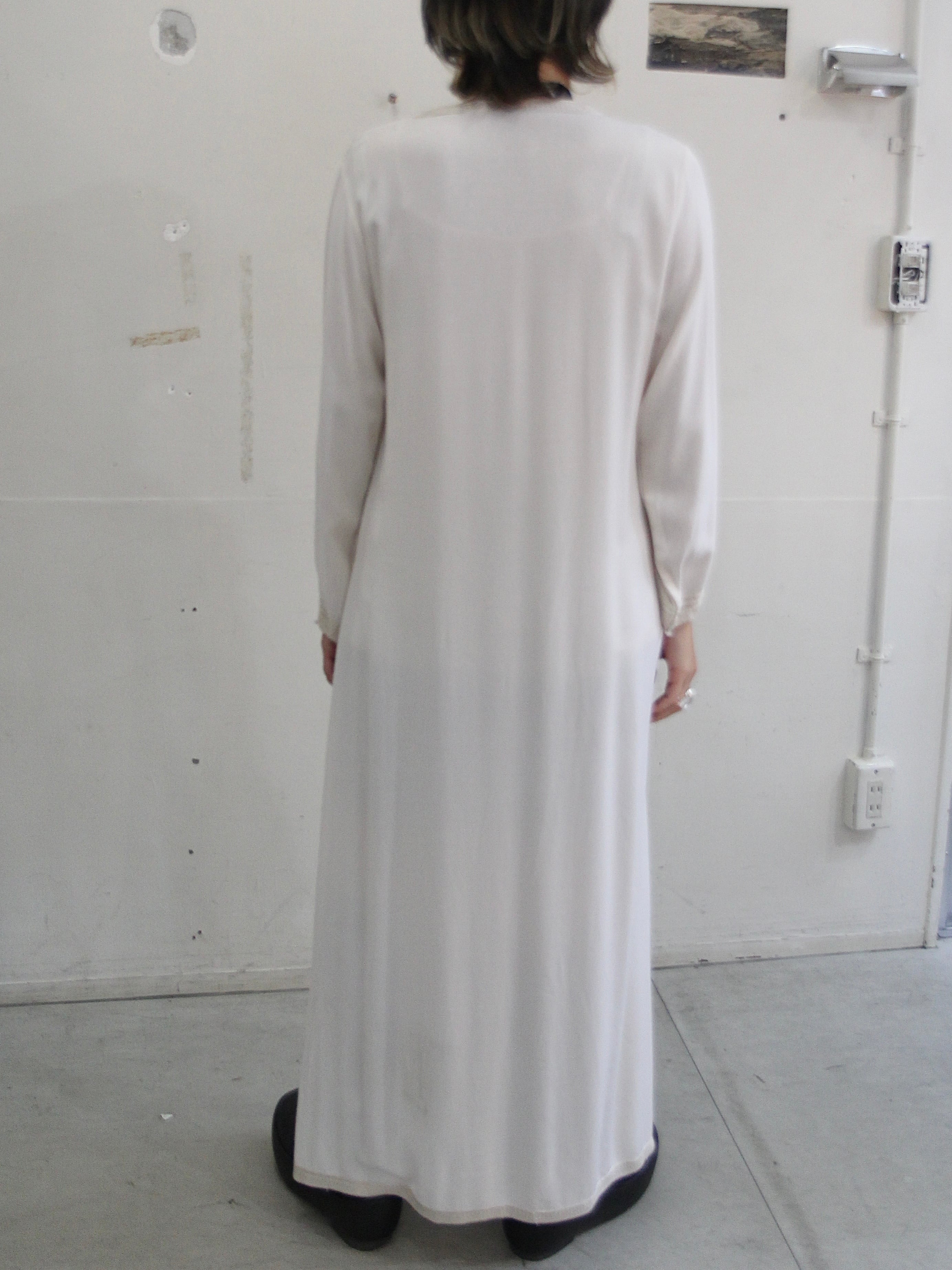 足元まであるフルレングスの丈、サイドにスリットが入っているので360℃で動きがあって野暮ったくなりません