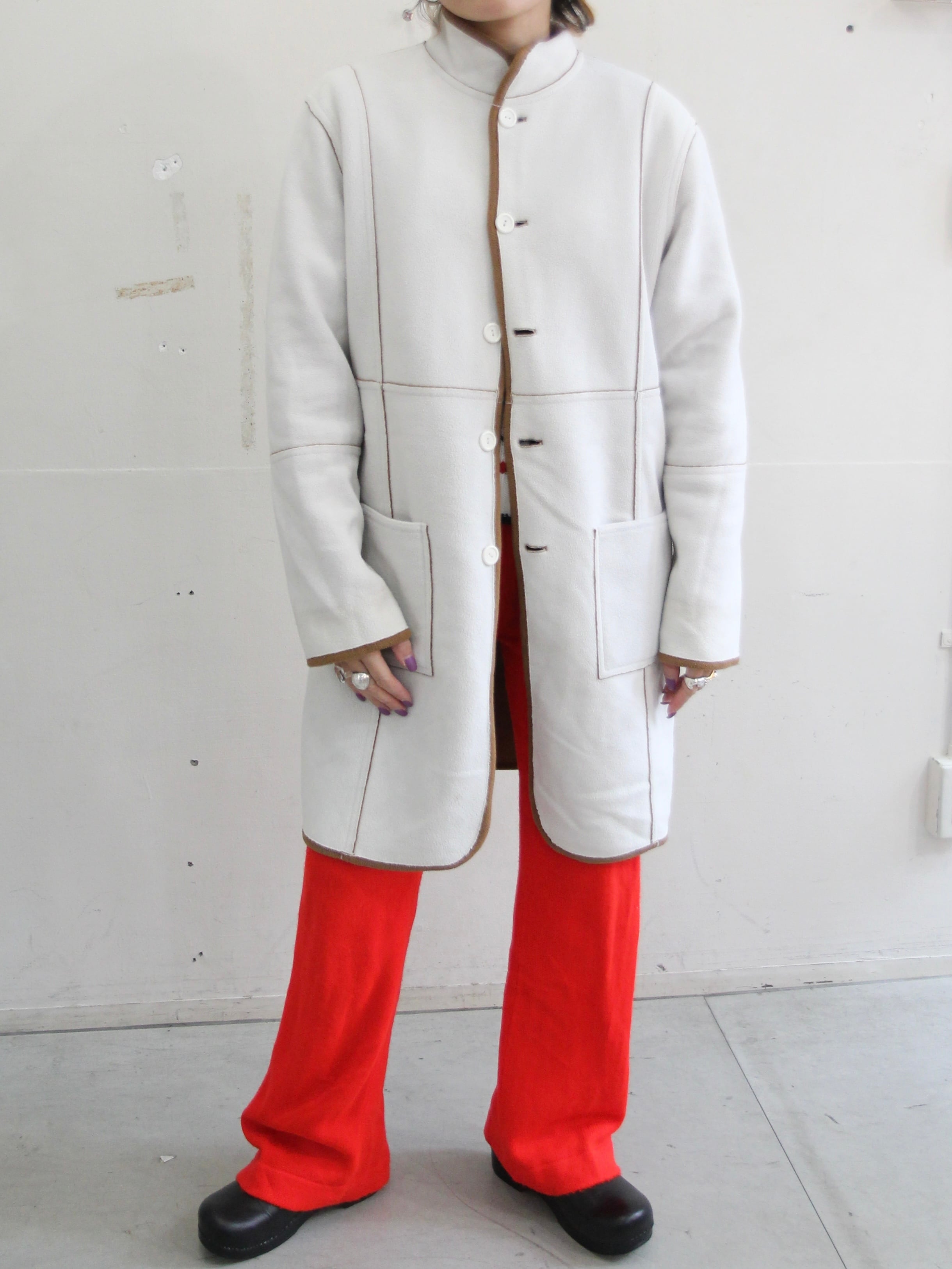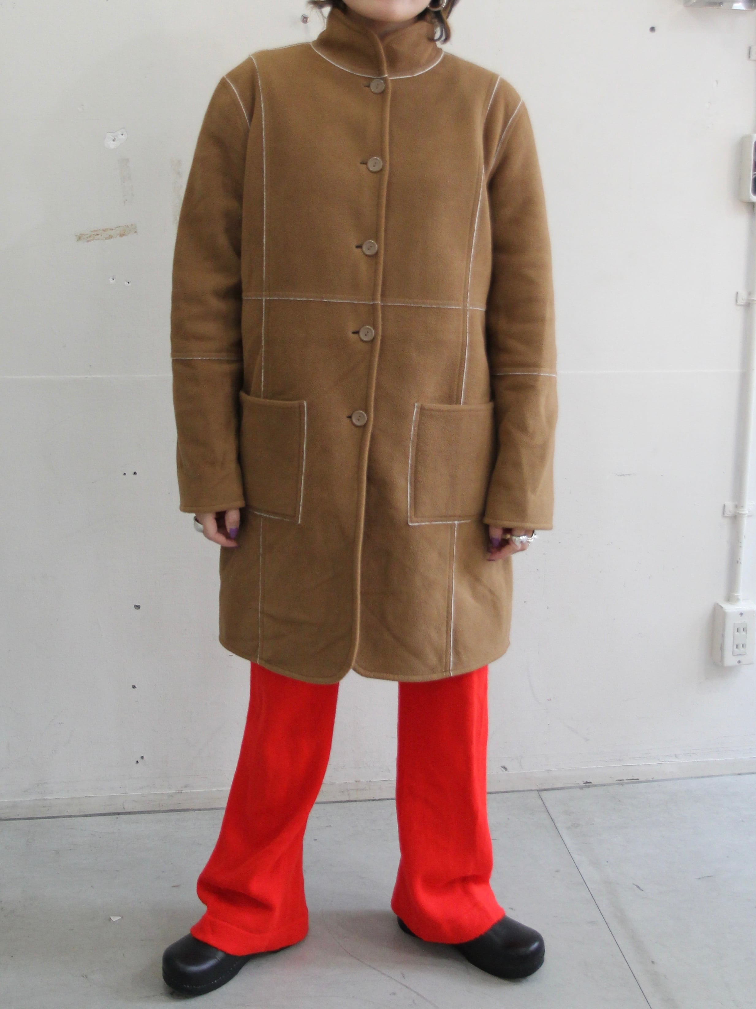 フリース素材のスタンドカラーコート