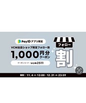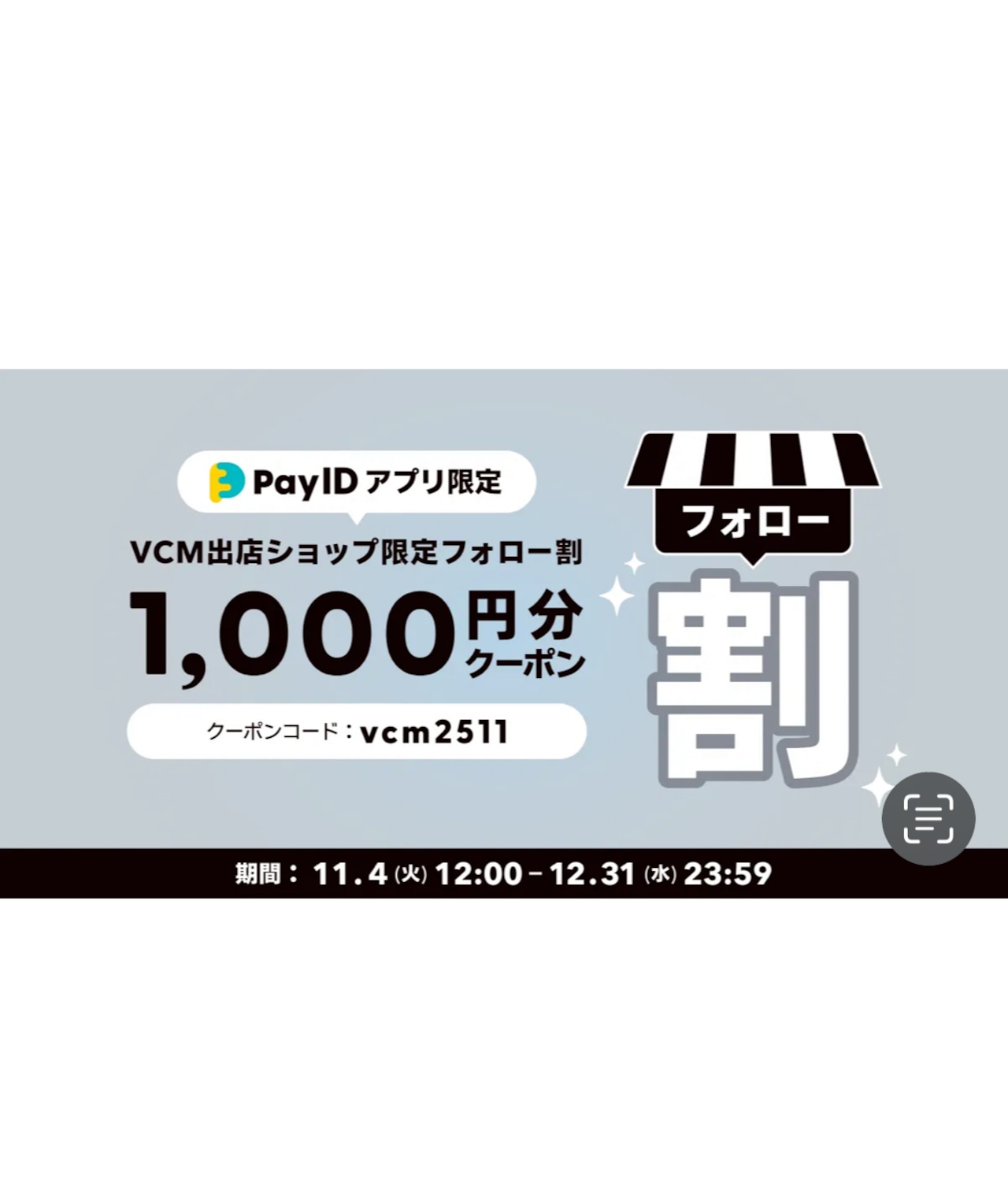 「VCM VINTAGE MARKET Vol.7」参加ショップをフォローすると使用できる、「Pay IDアプリ」限定1,000円 OFF クーポン
