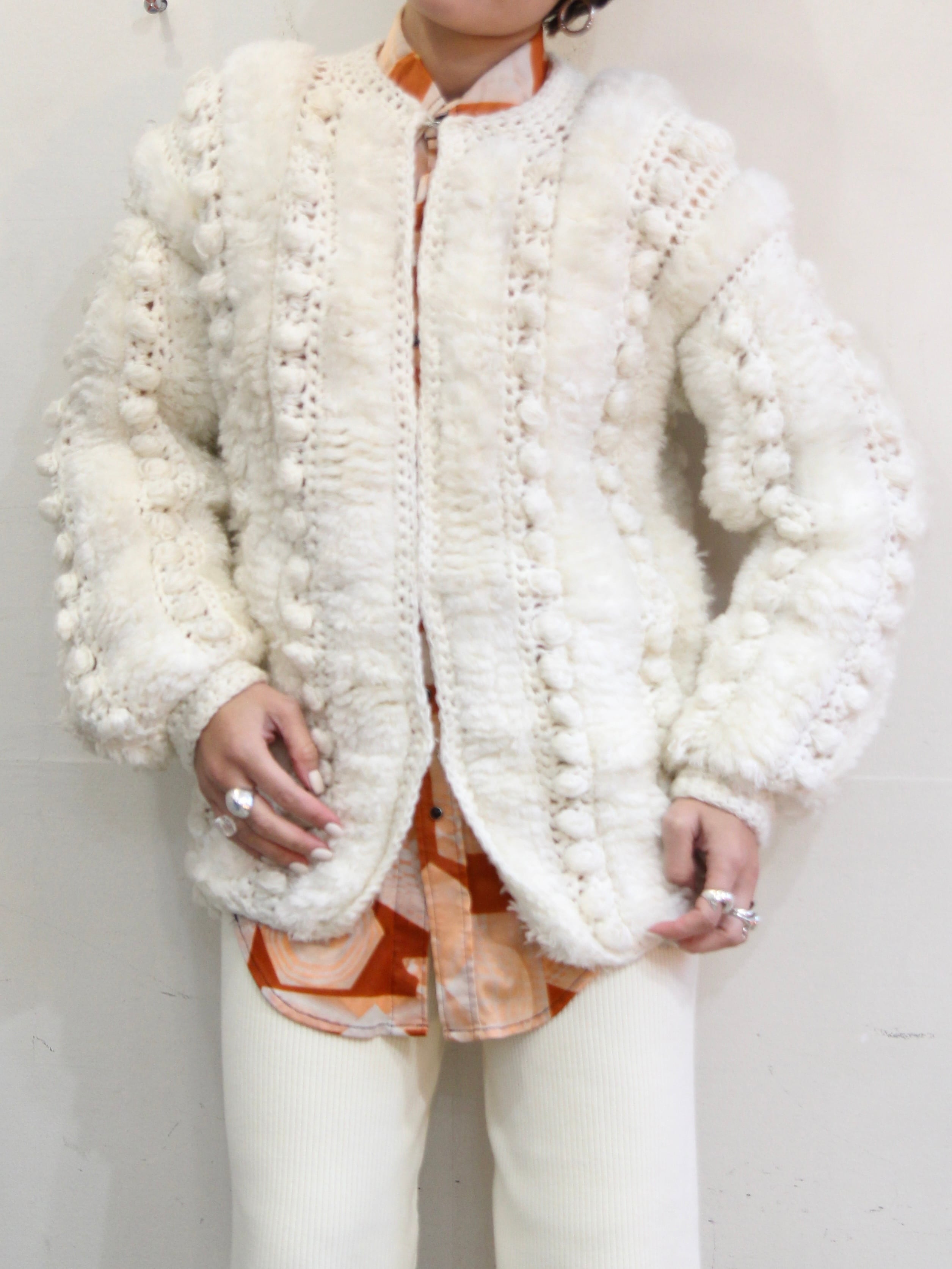 80-90年代あたり、厚みのある豪華なつくりのポンポンニットカーディガン