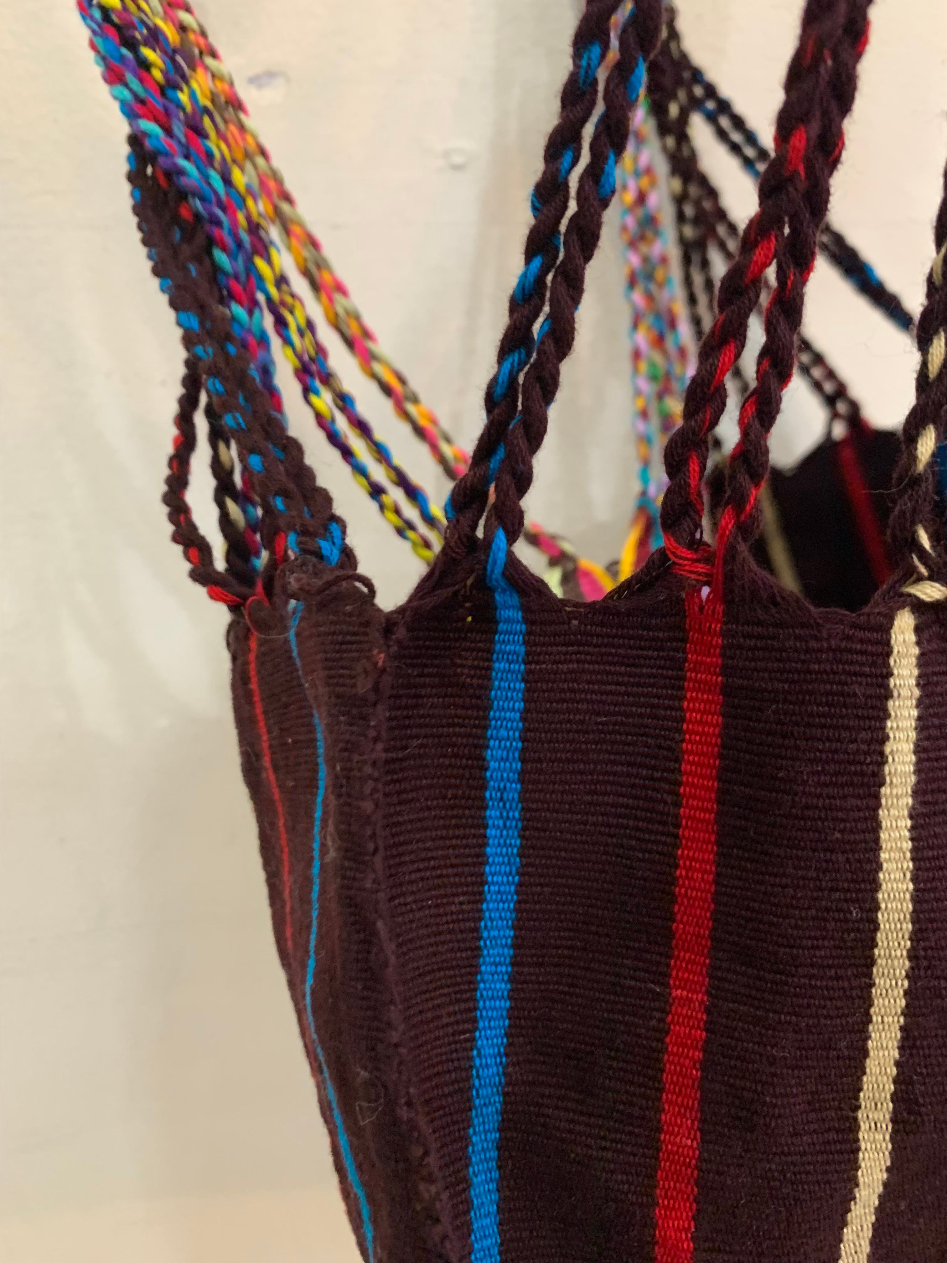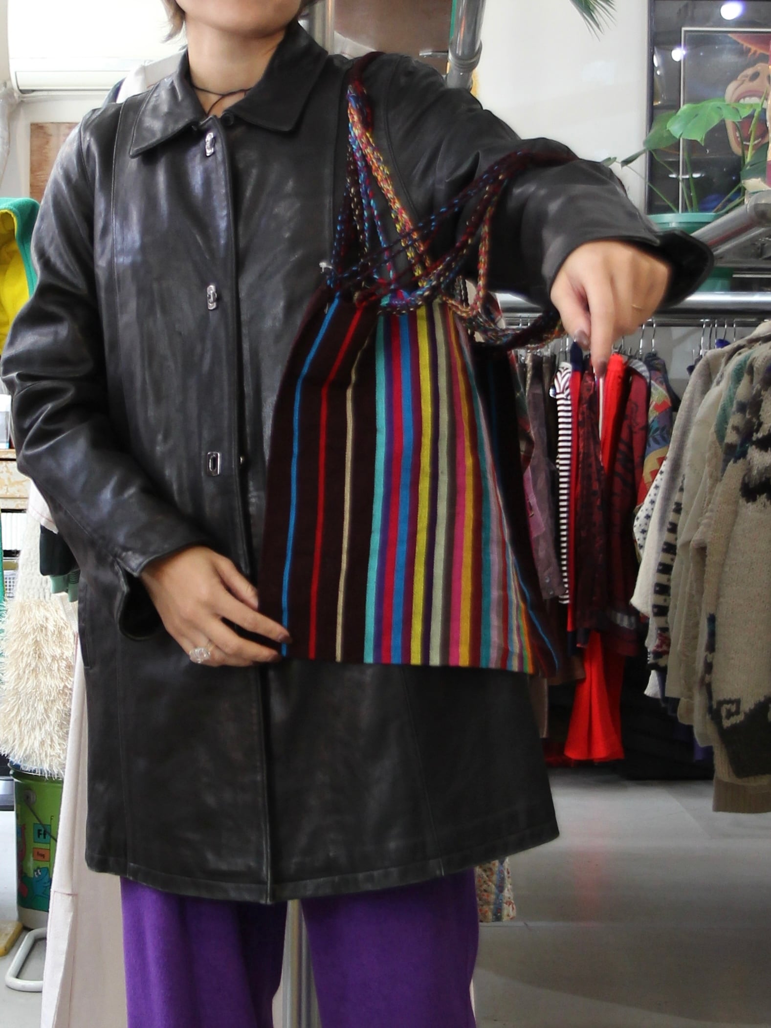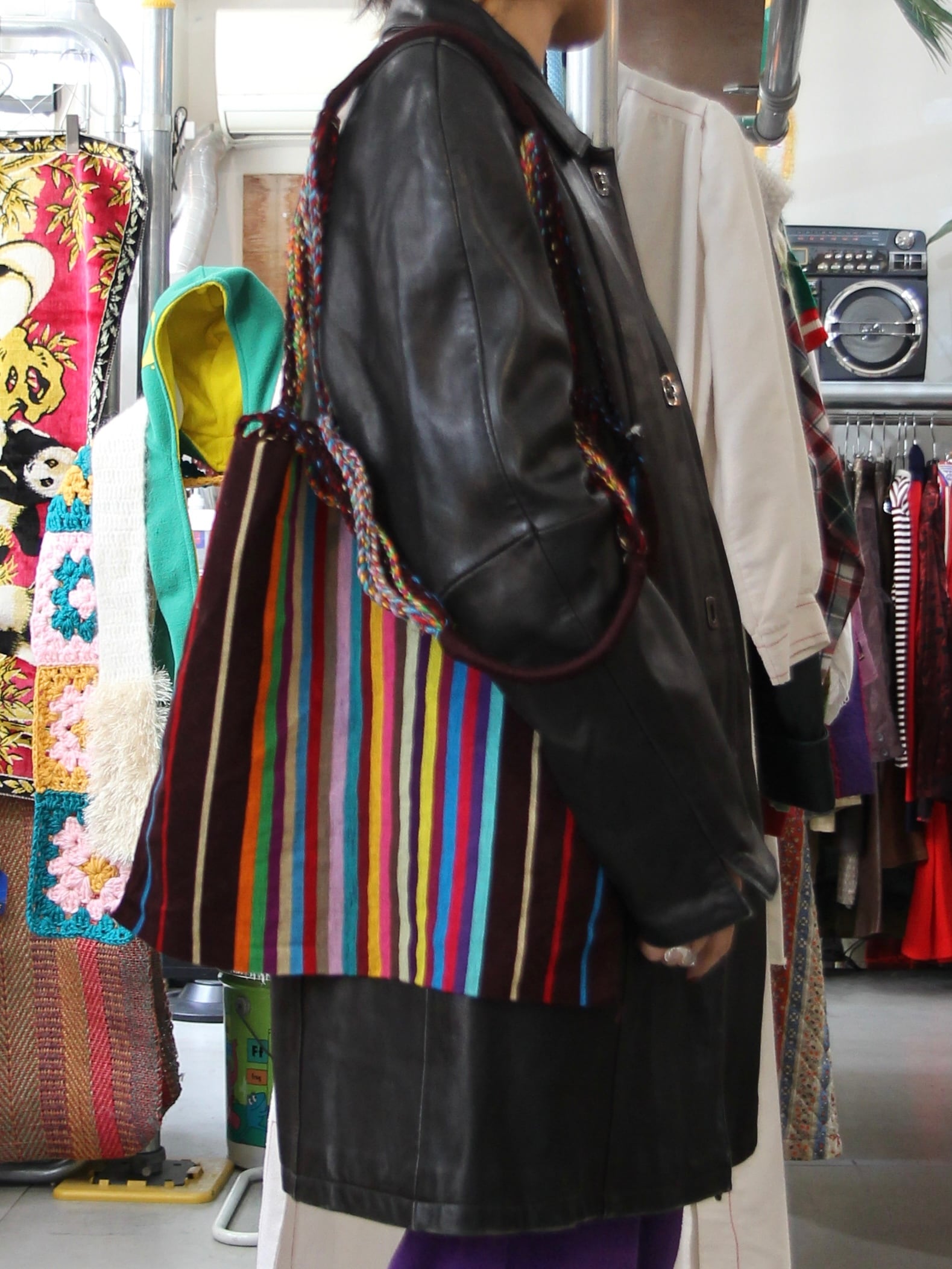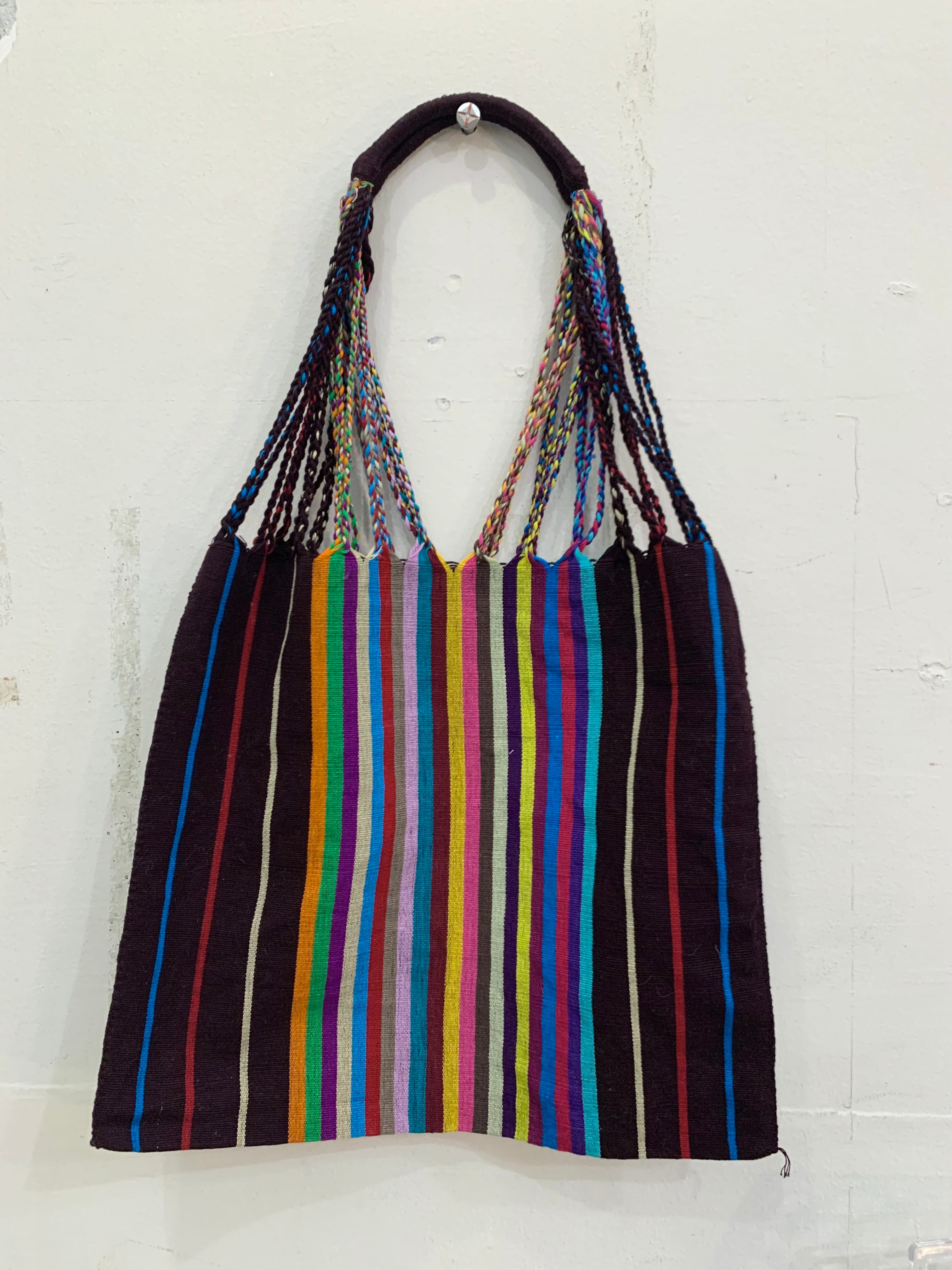落ち着きのあるカラフルなストライプ柄のトートバッグ