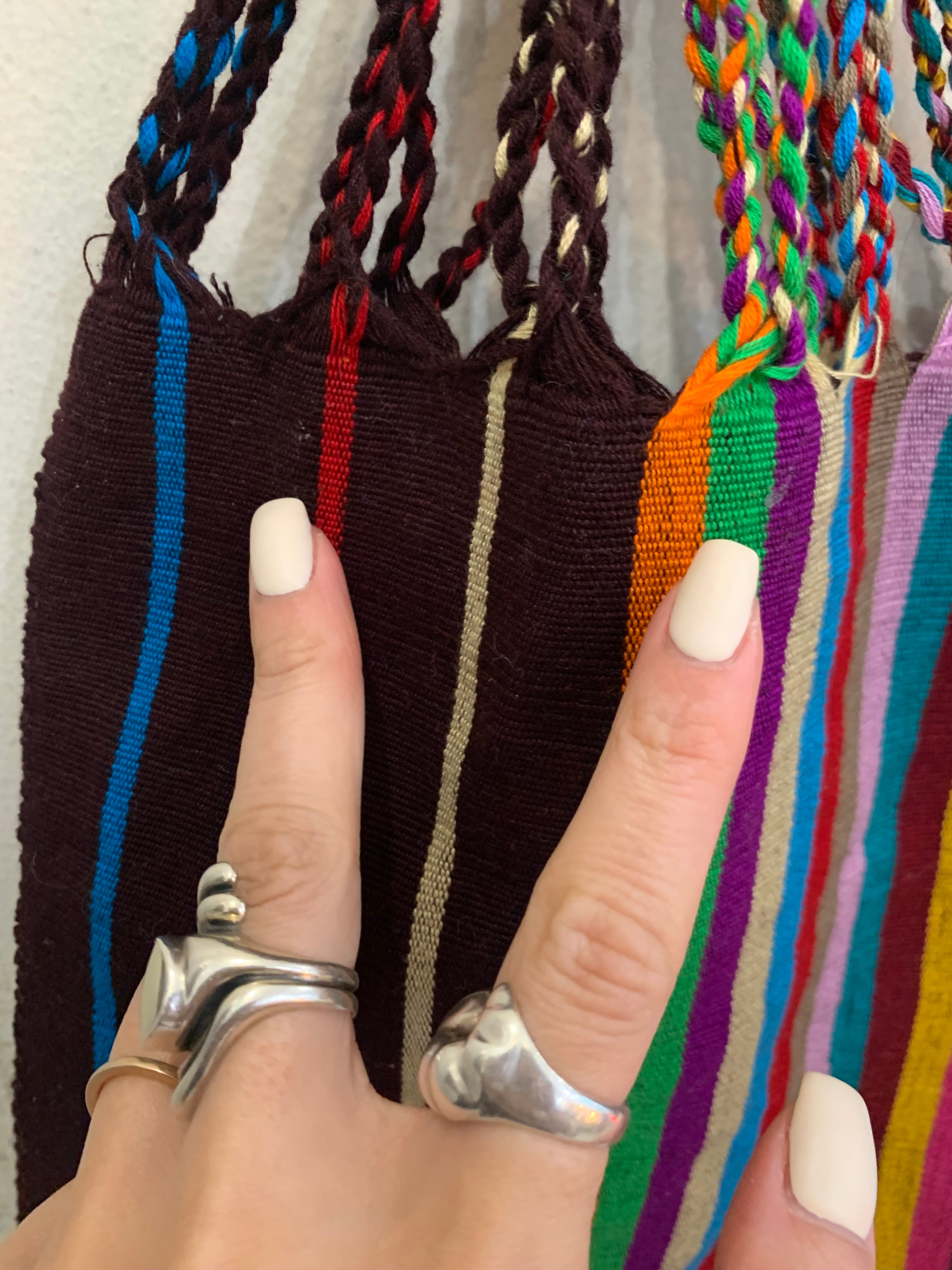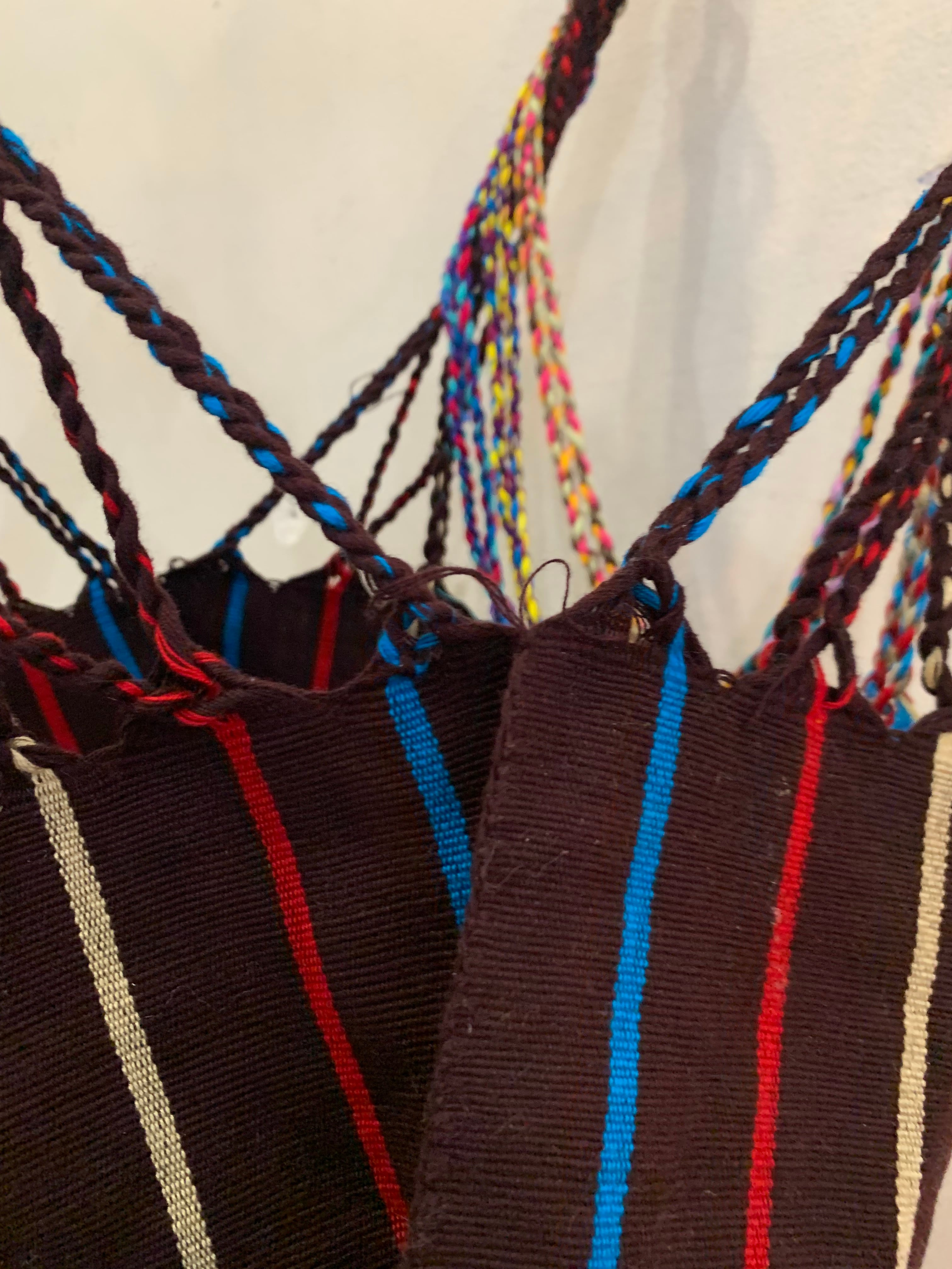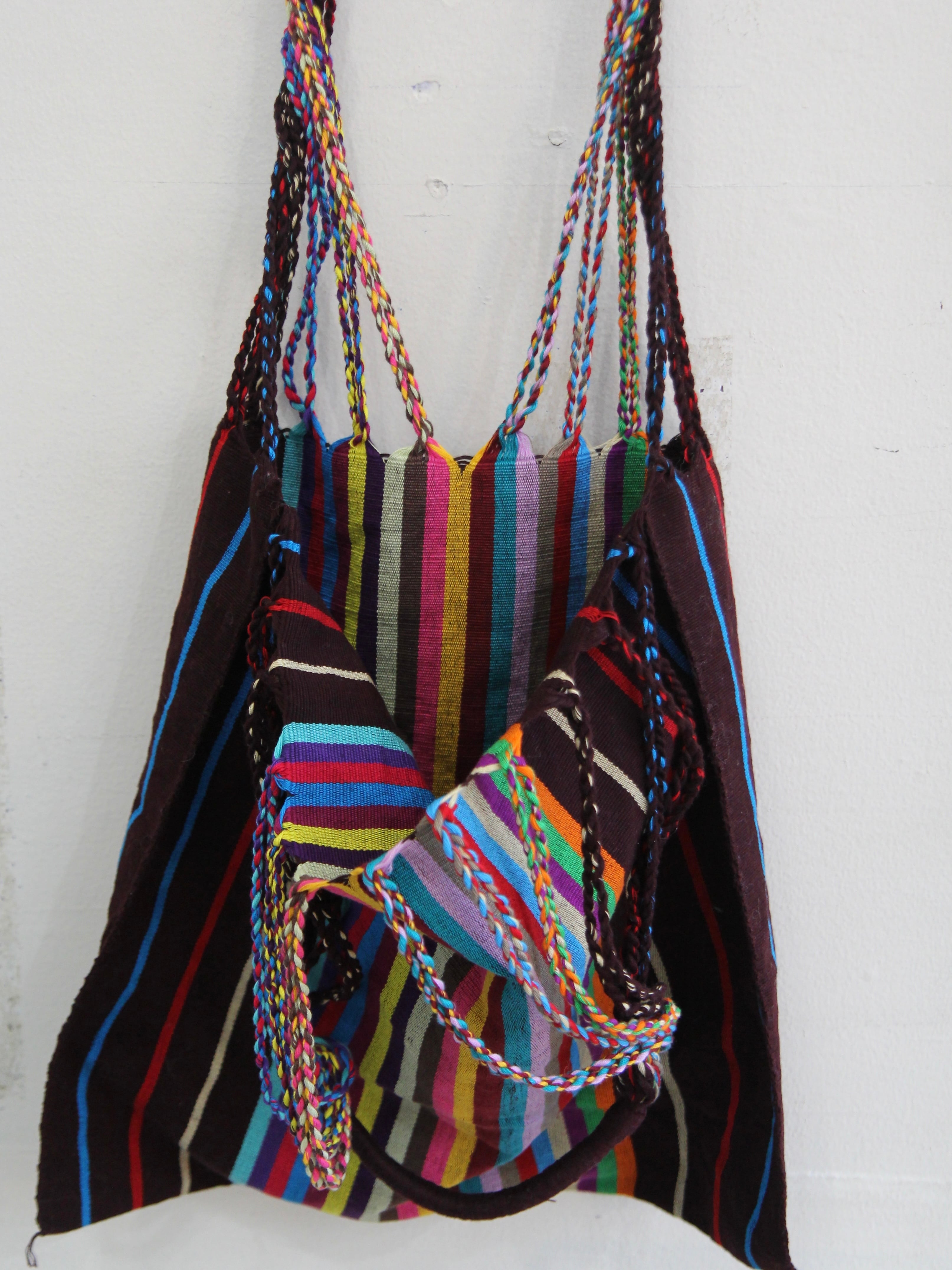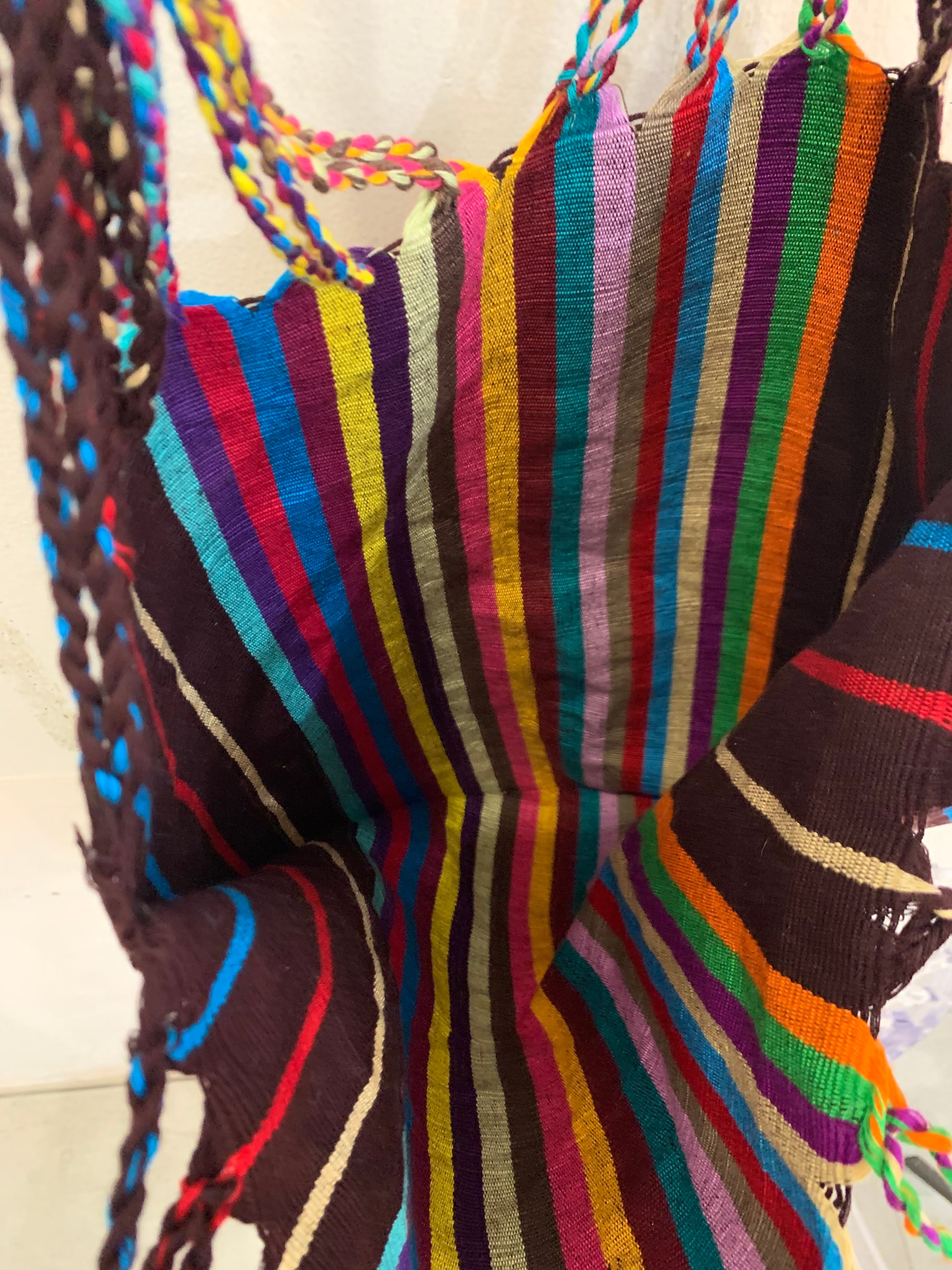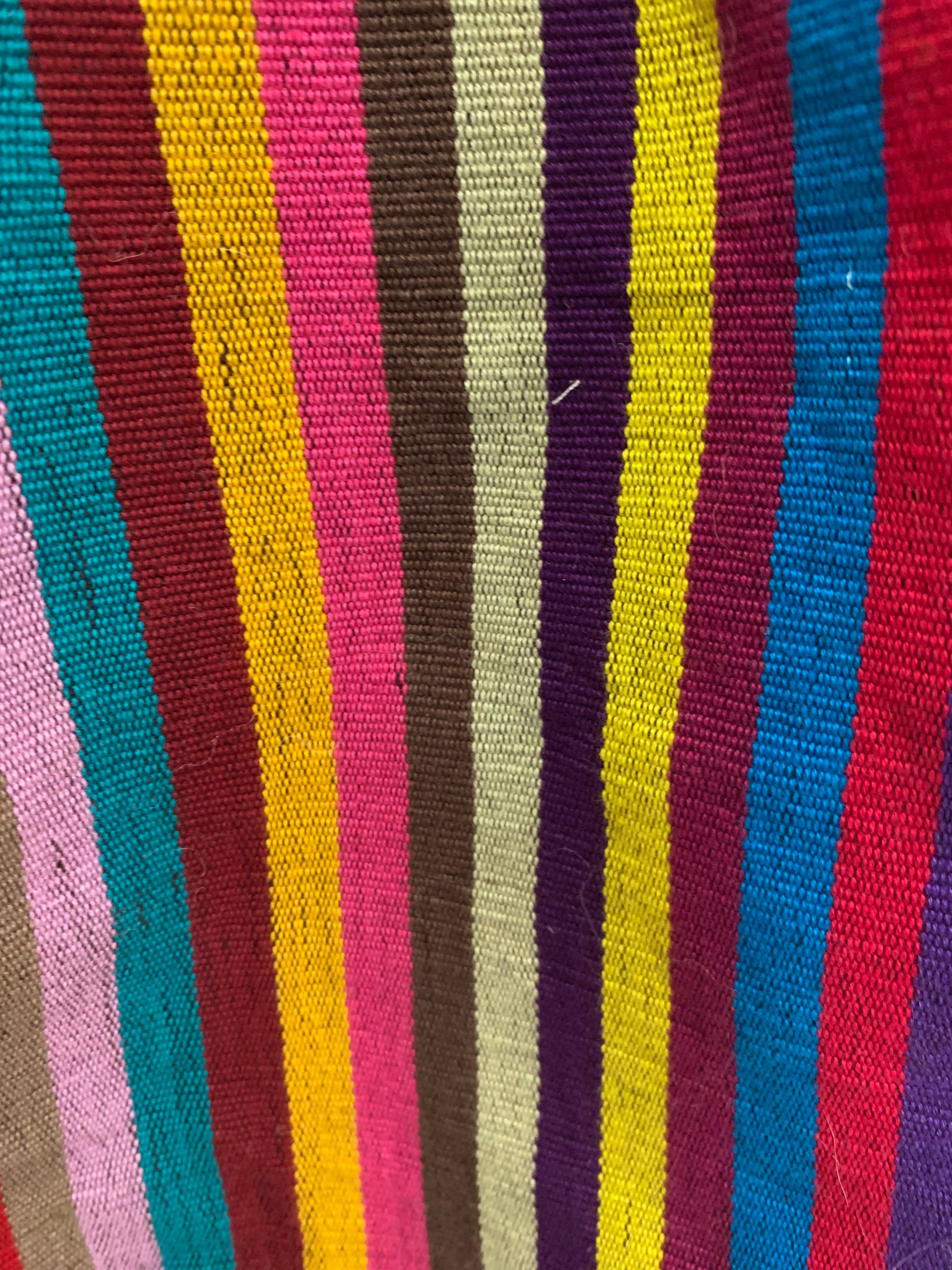 落ち着きのあるカラフルなストライプ柄のトートバッグ