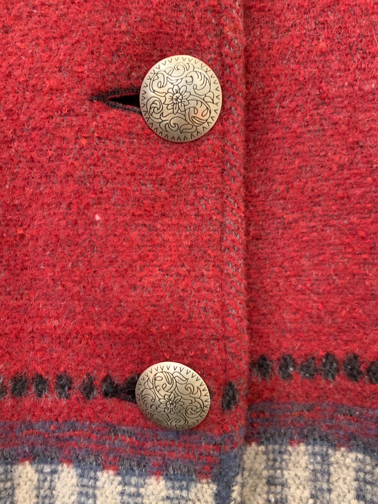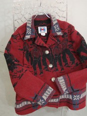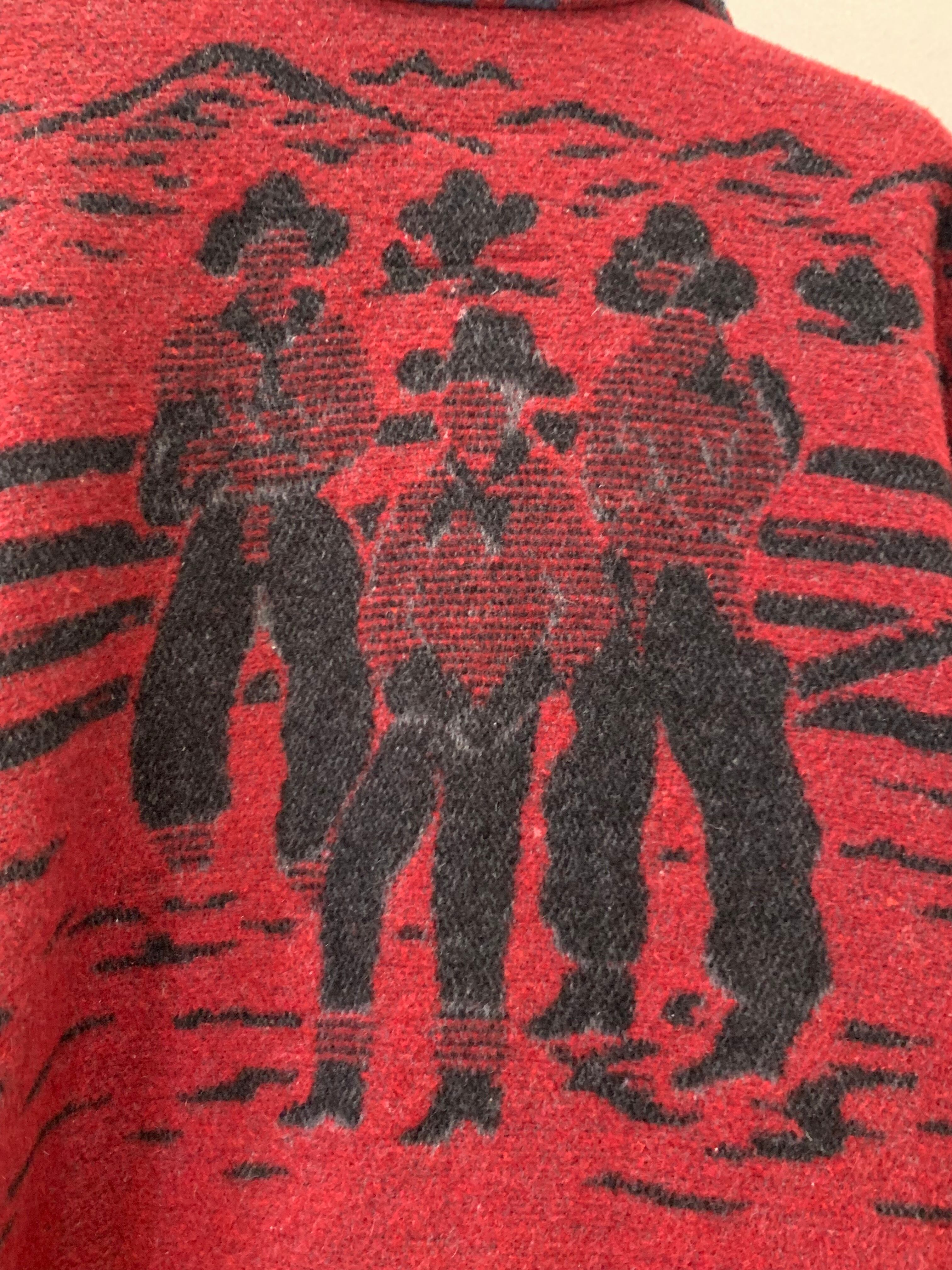 前後にカウボーイの絵柄、深くて落ち着きのある赤を基調としたデザイン