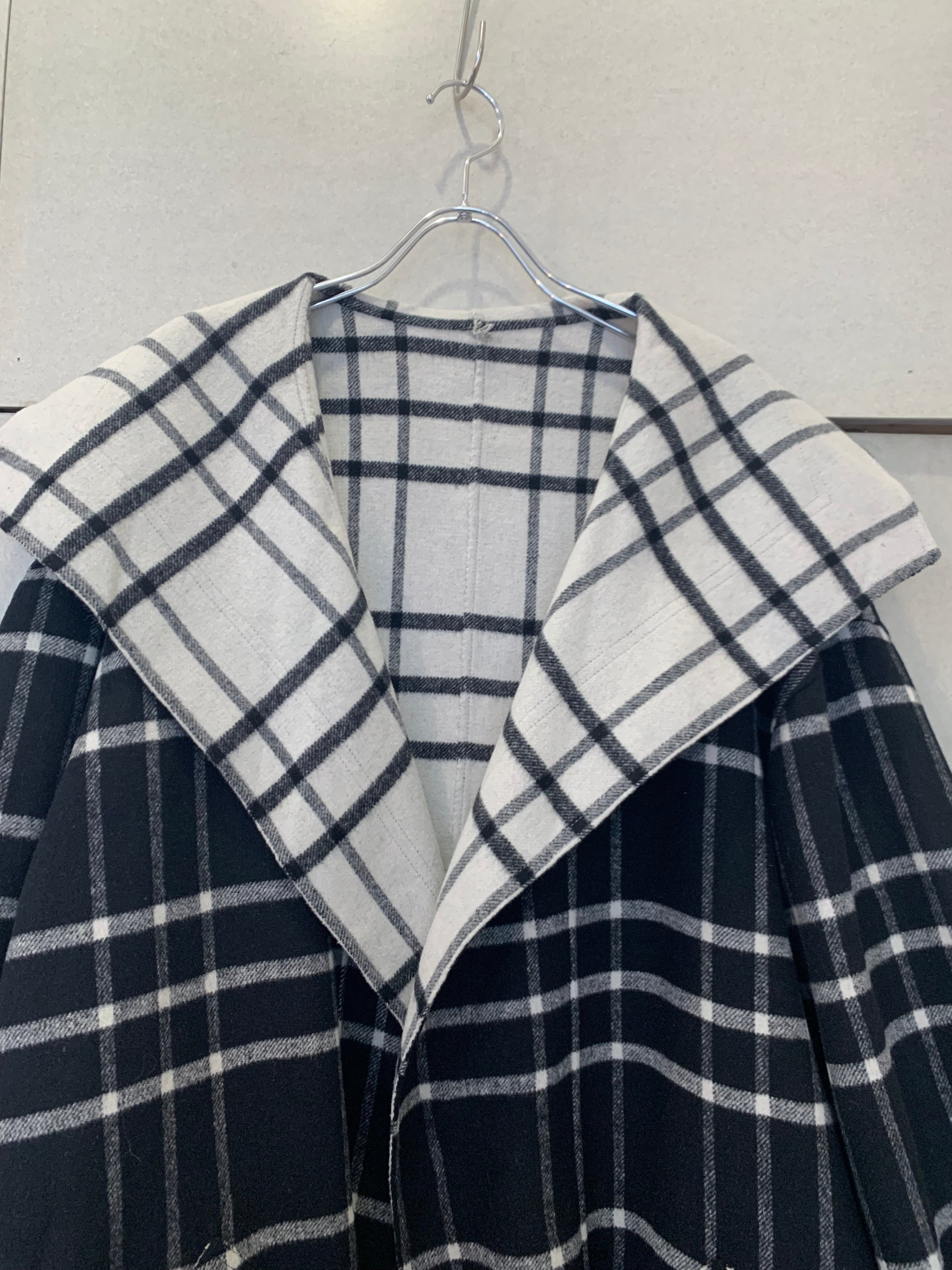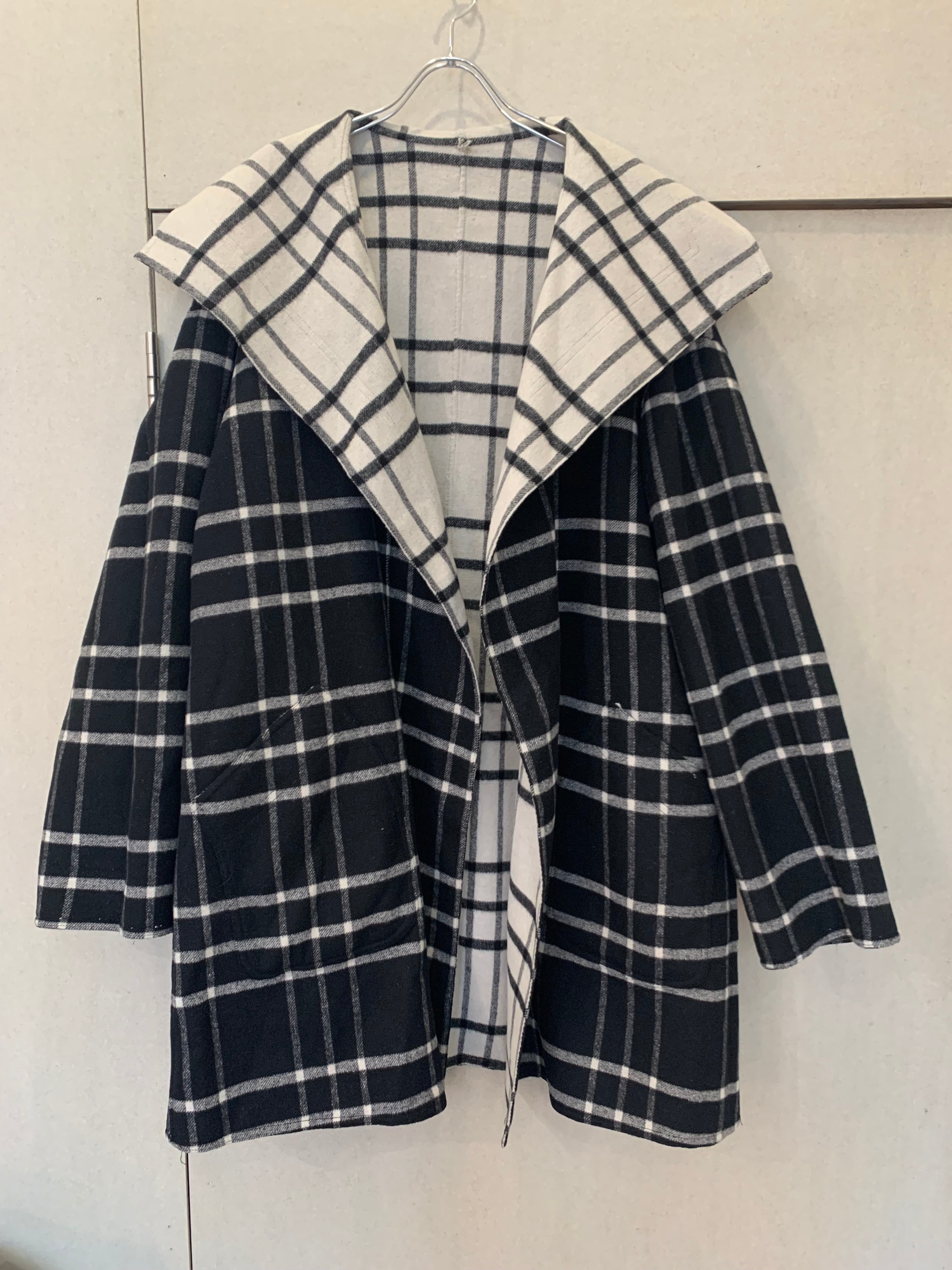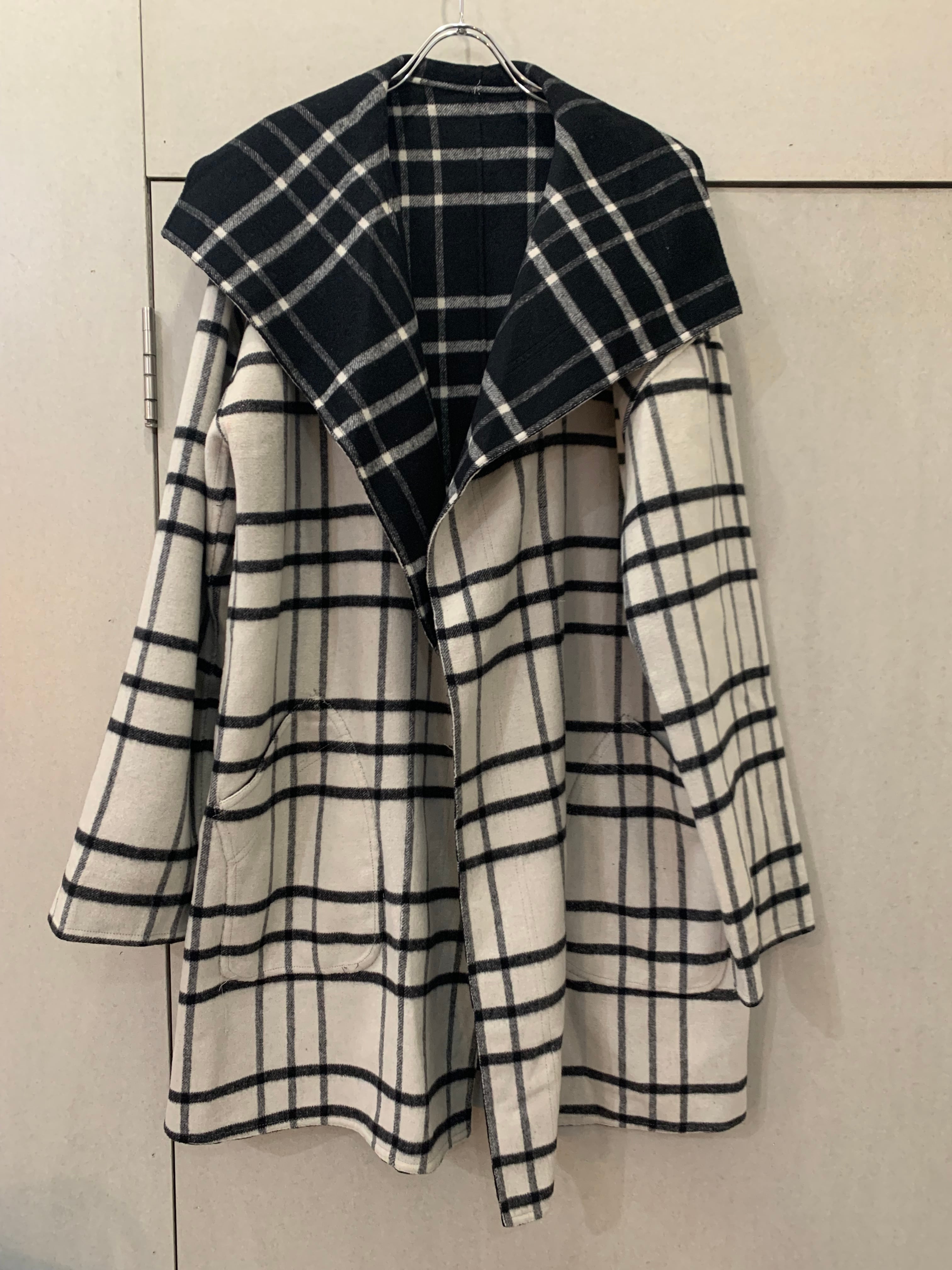 Check pattern reversible wrap coat