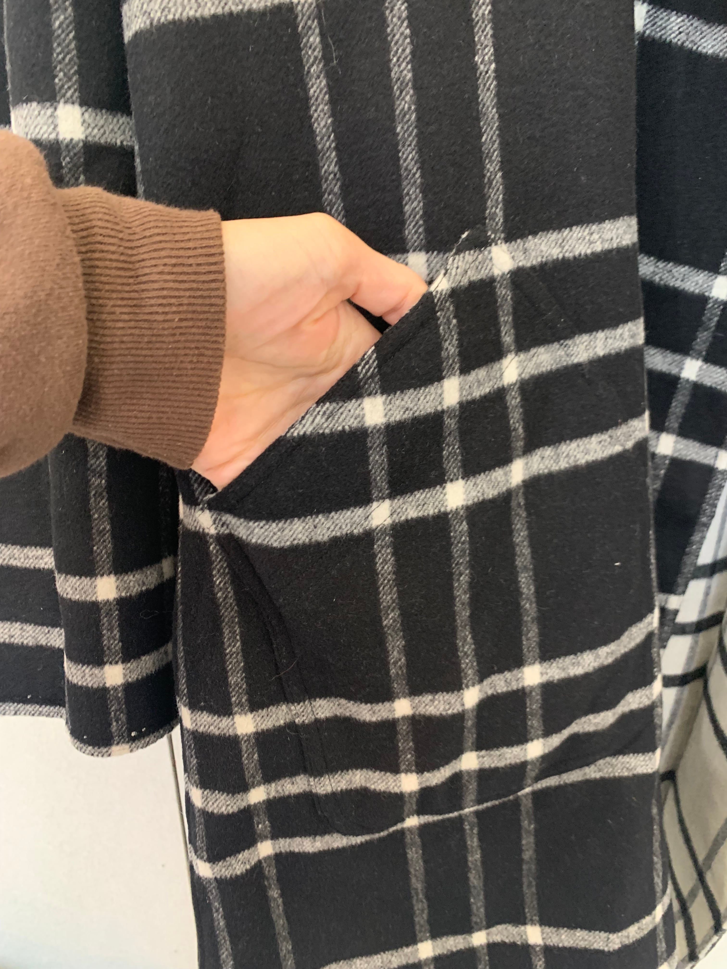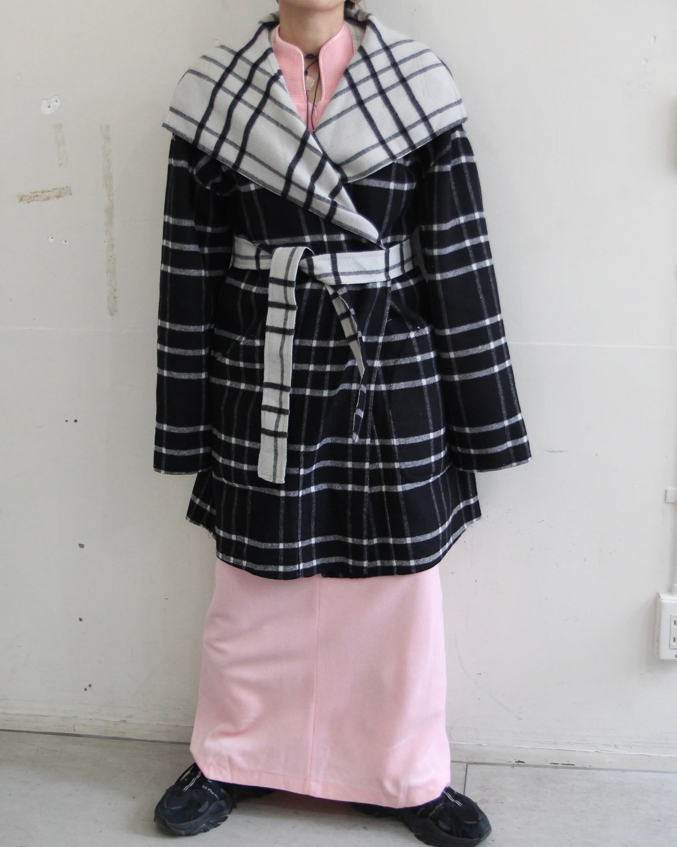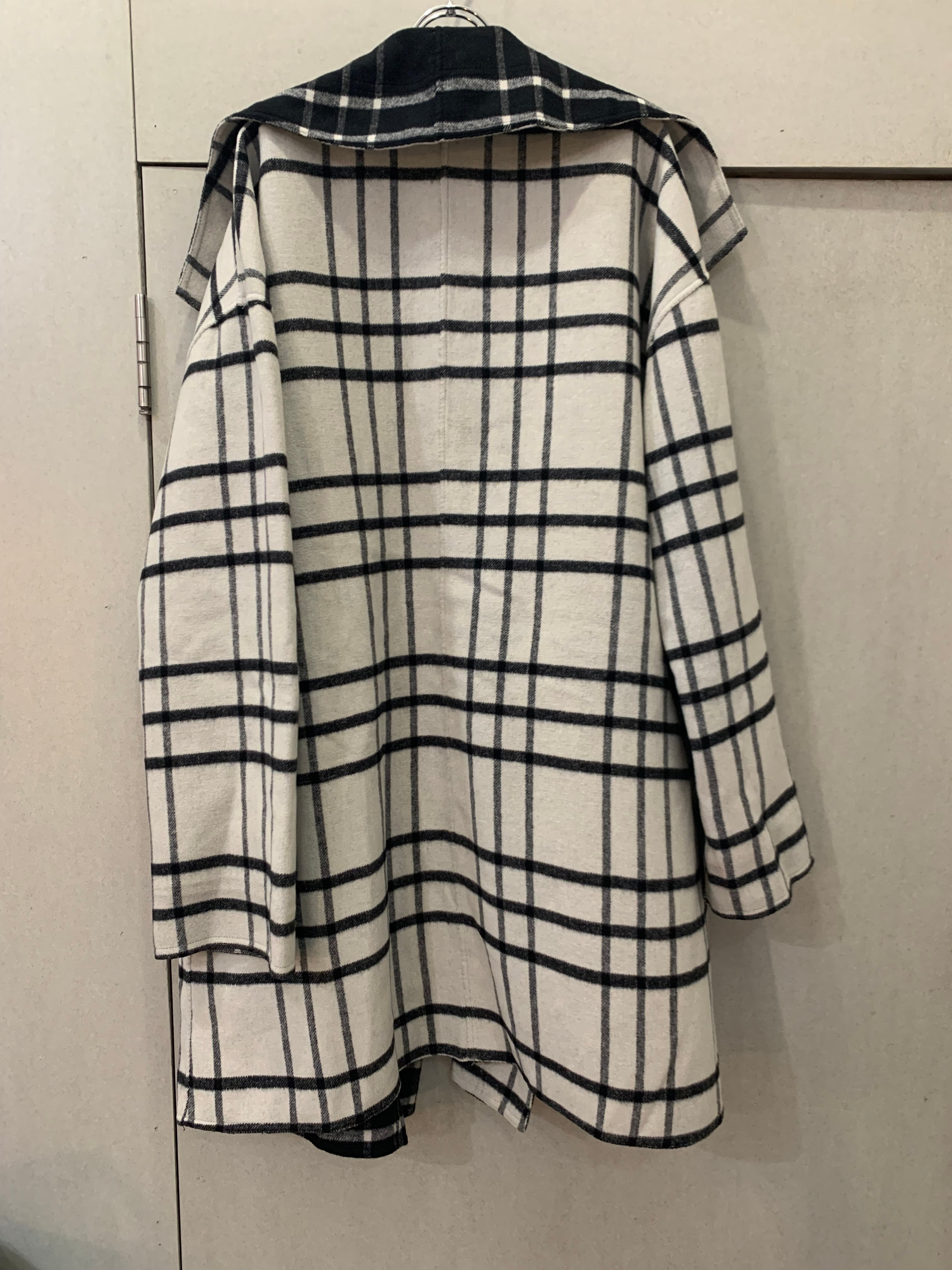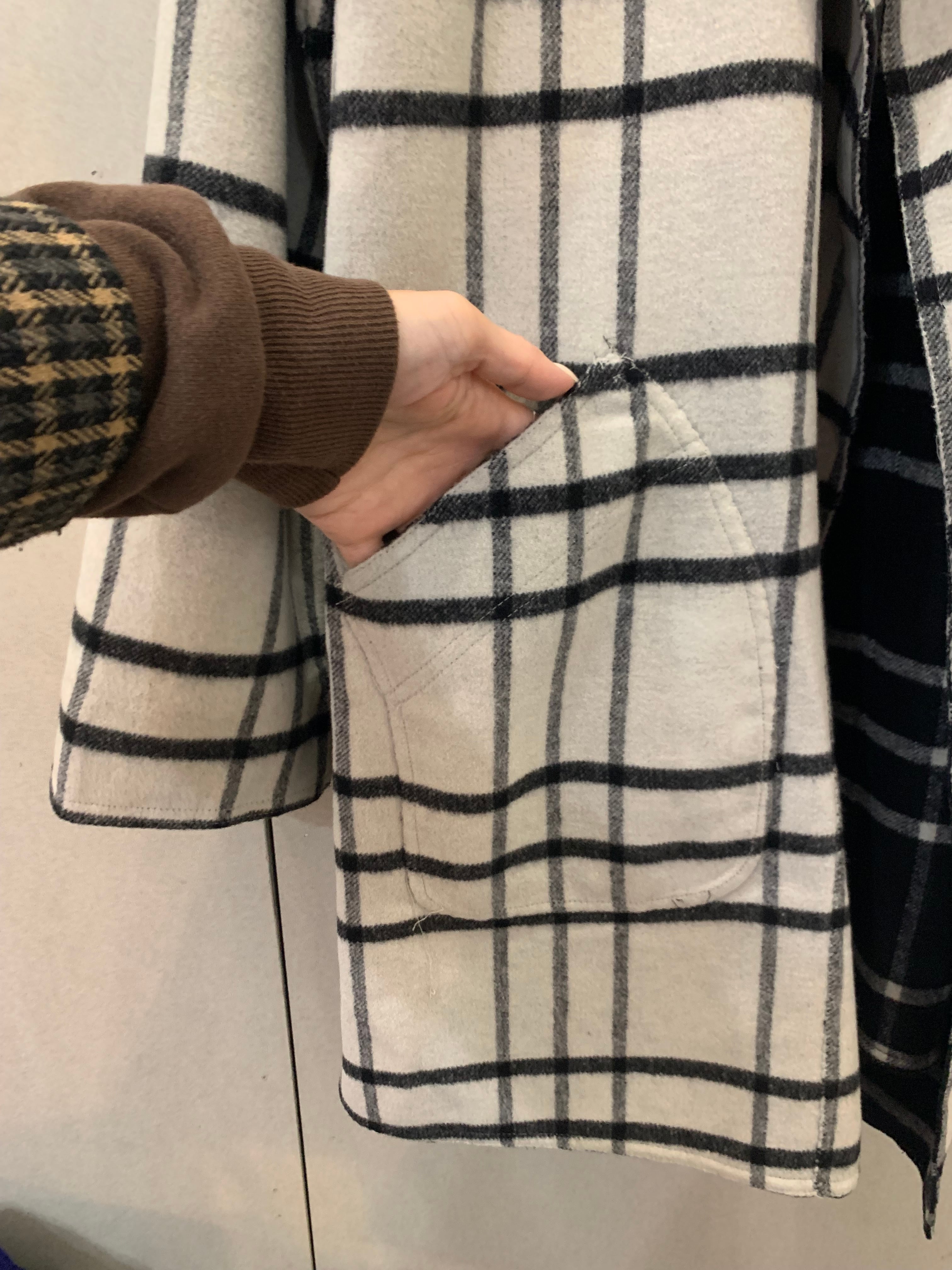 Check pattern reversible wrap coat