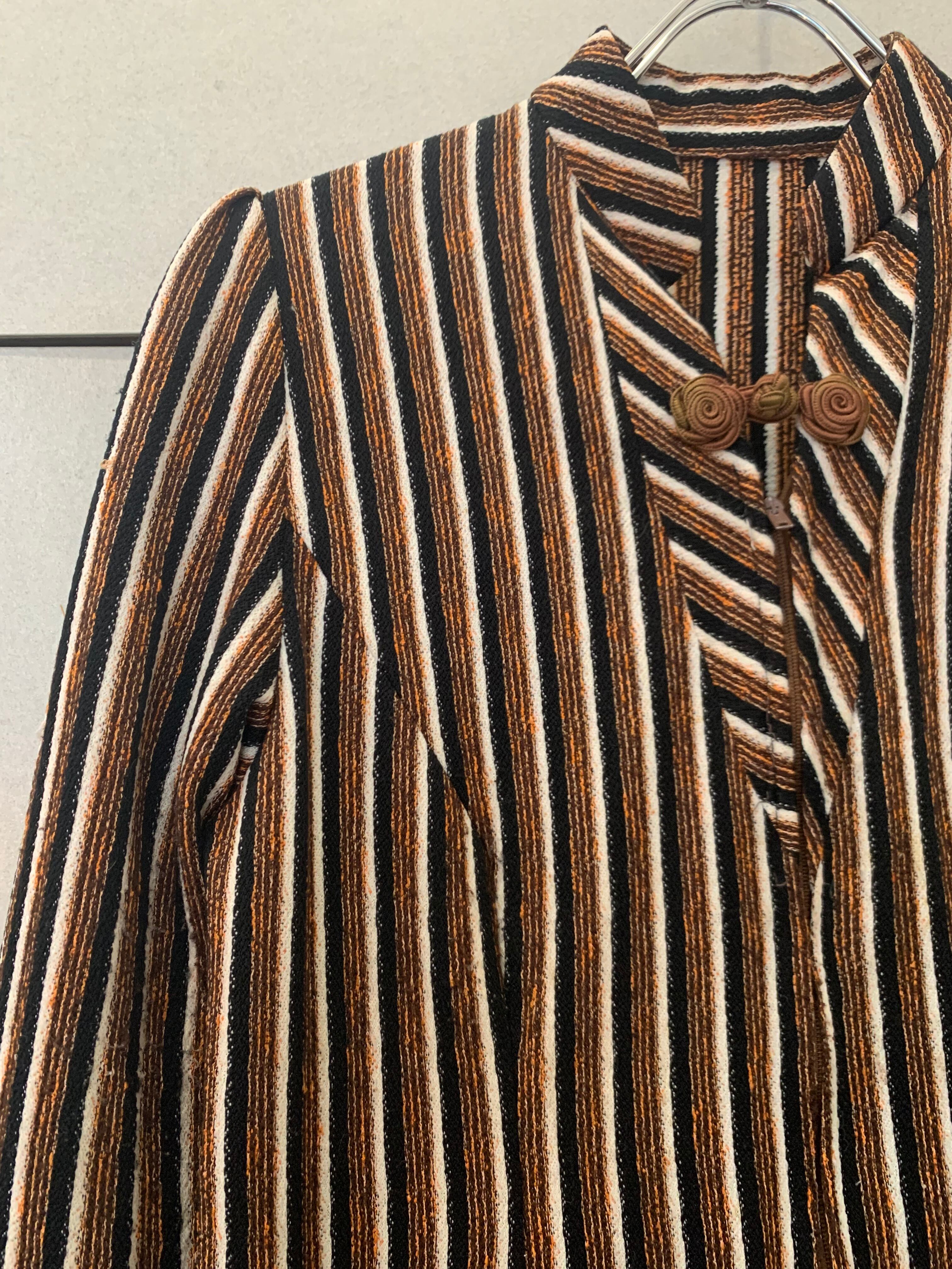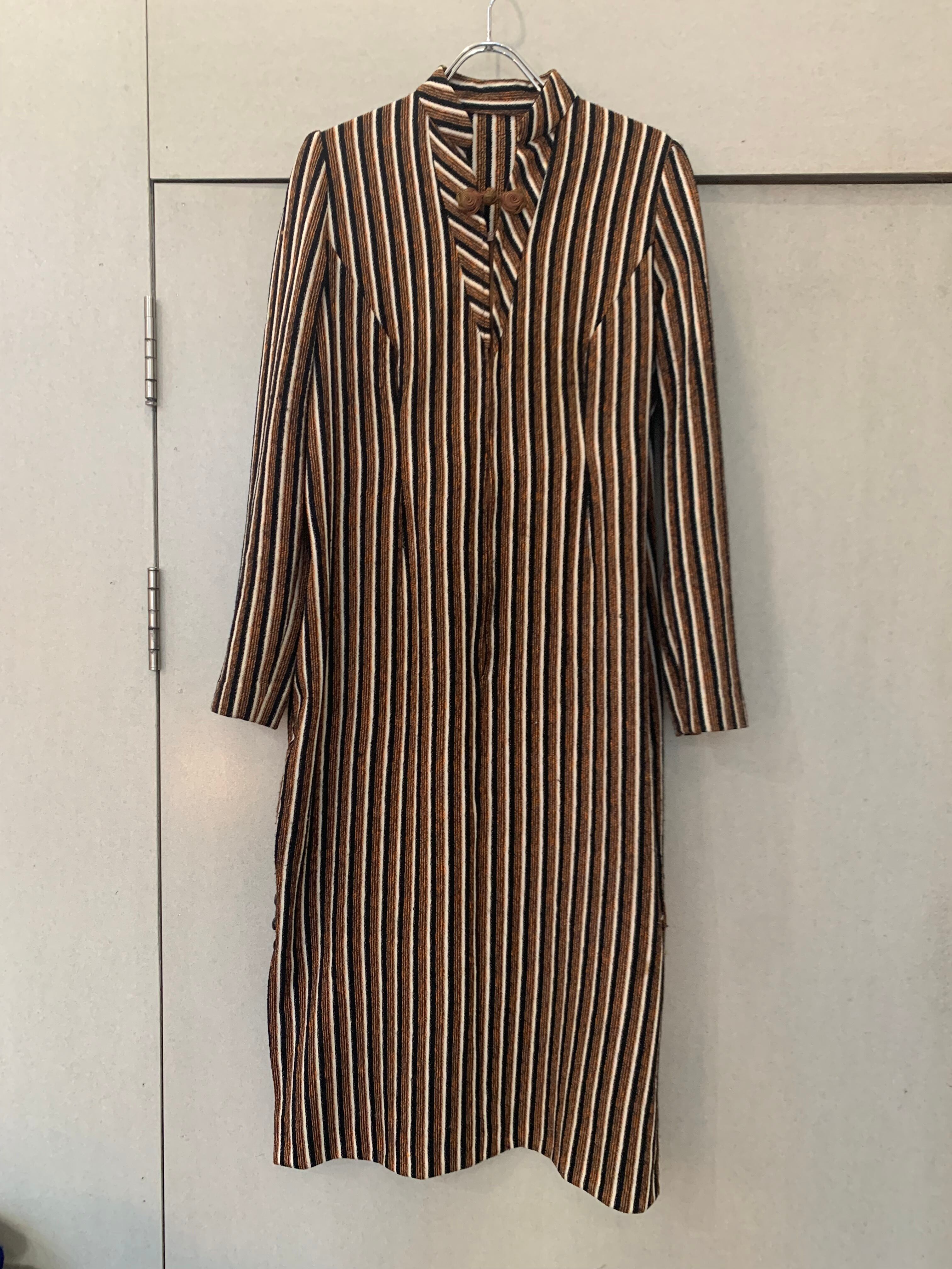 エスニックな雰囲気をかんじさせてくれるストライプ柄のセミロング丈のワンピース(トップス)です