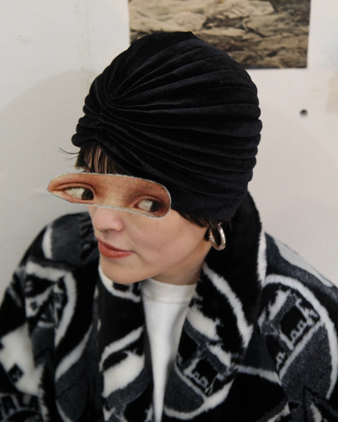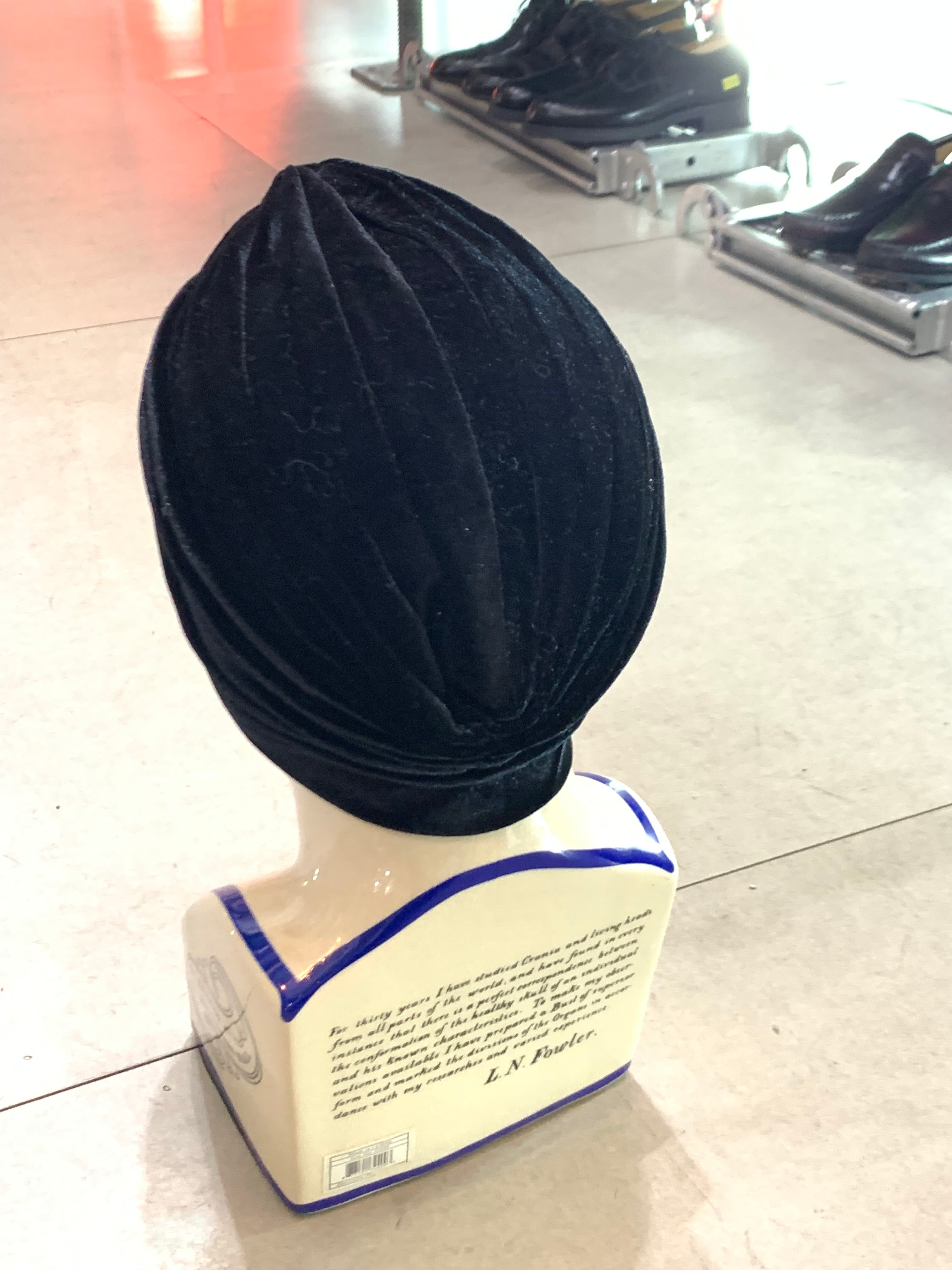アーモンドにもみえるベロア素材のデザインハット