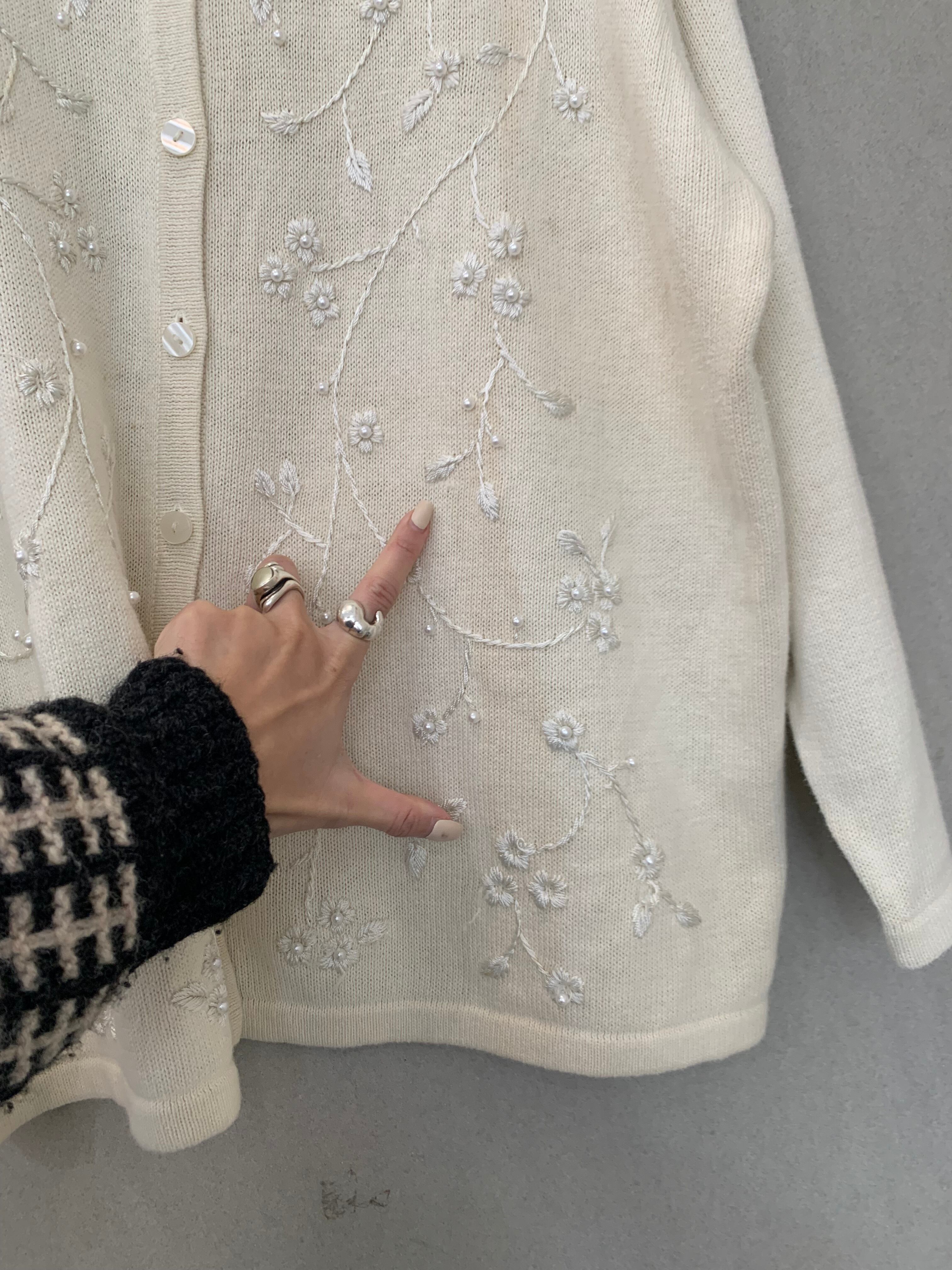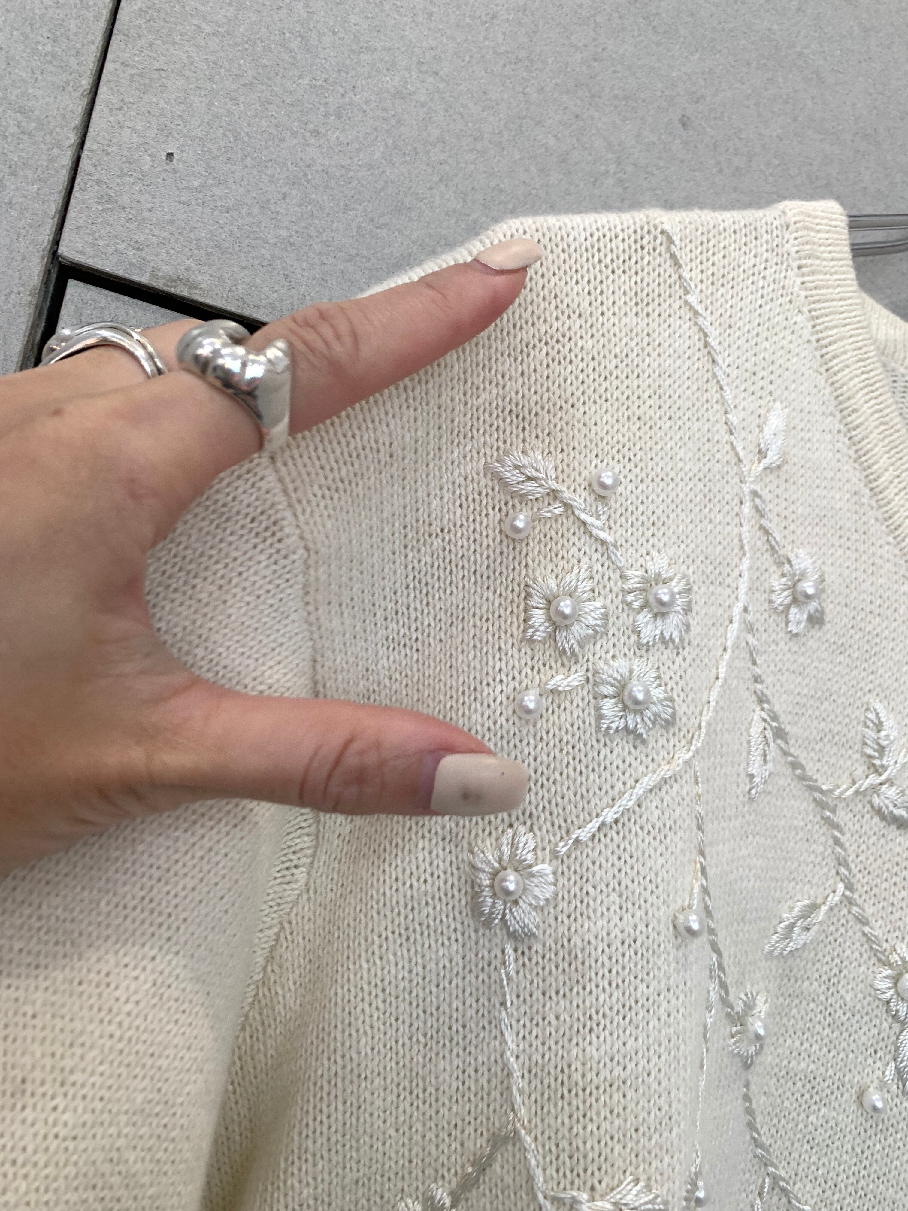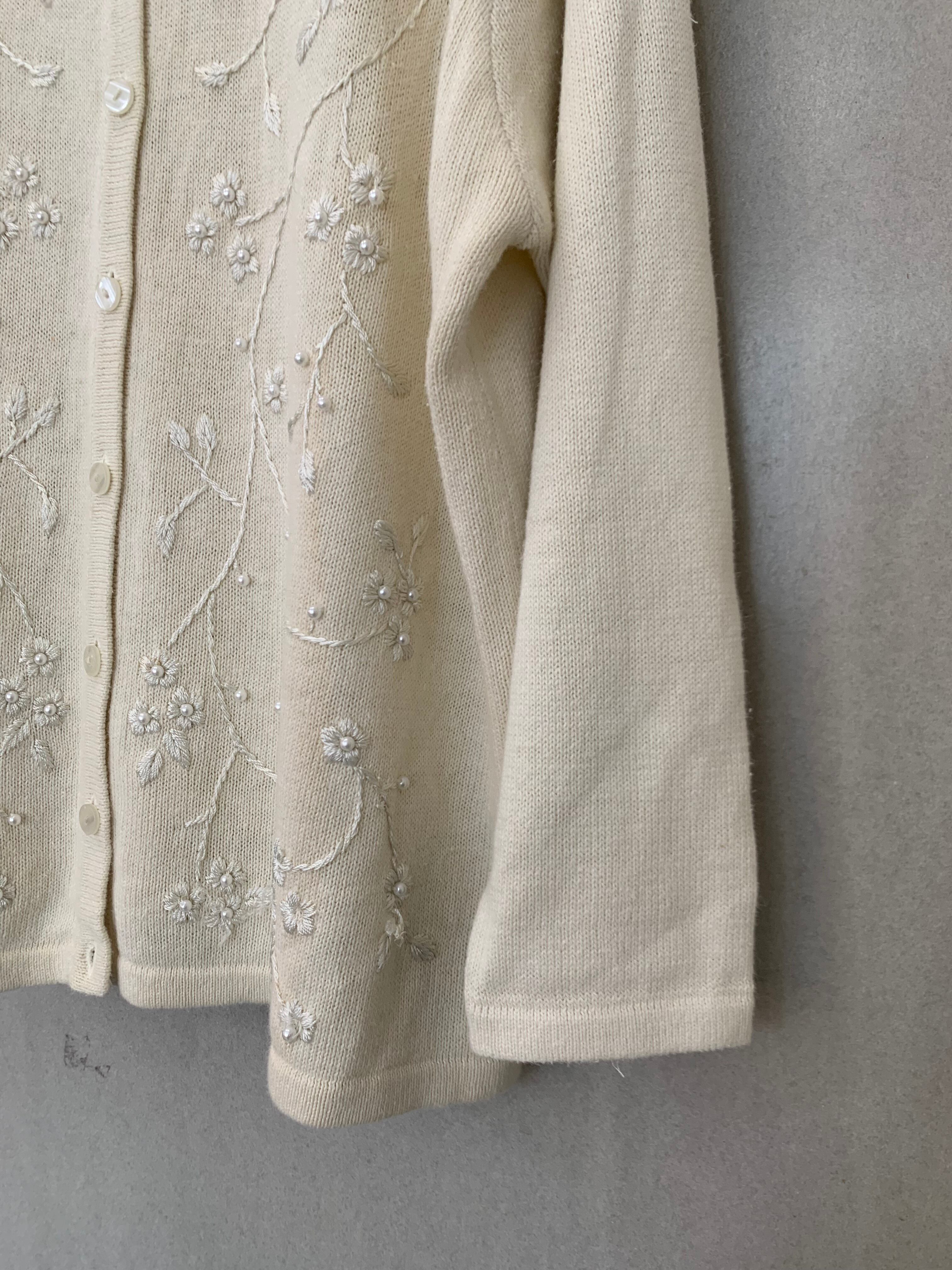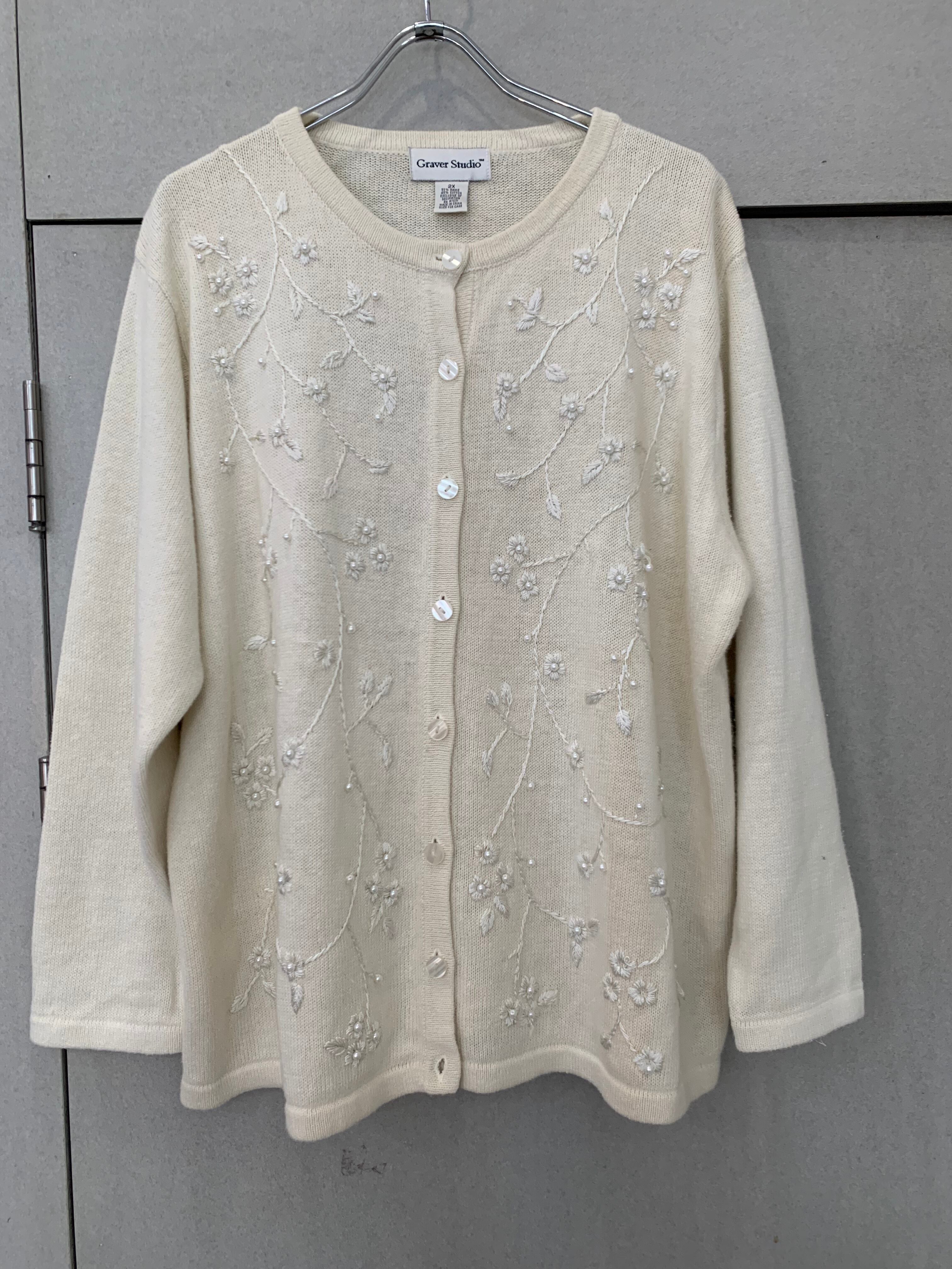 花柄刺繍(白)cardigan