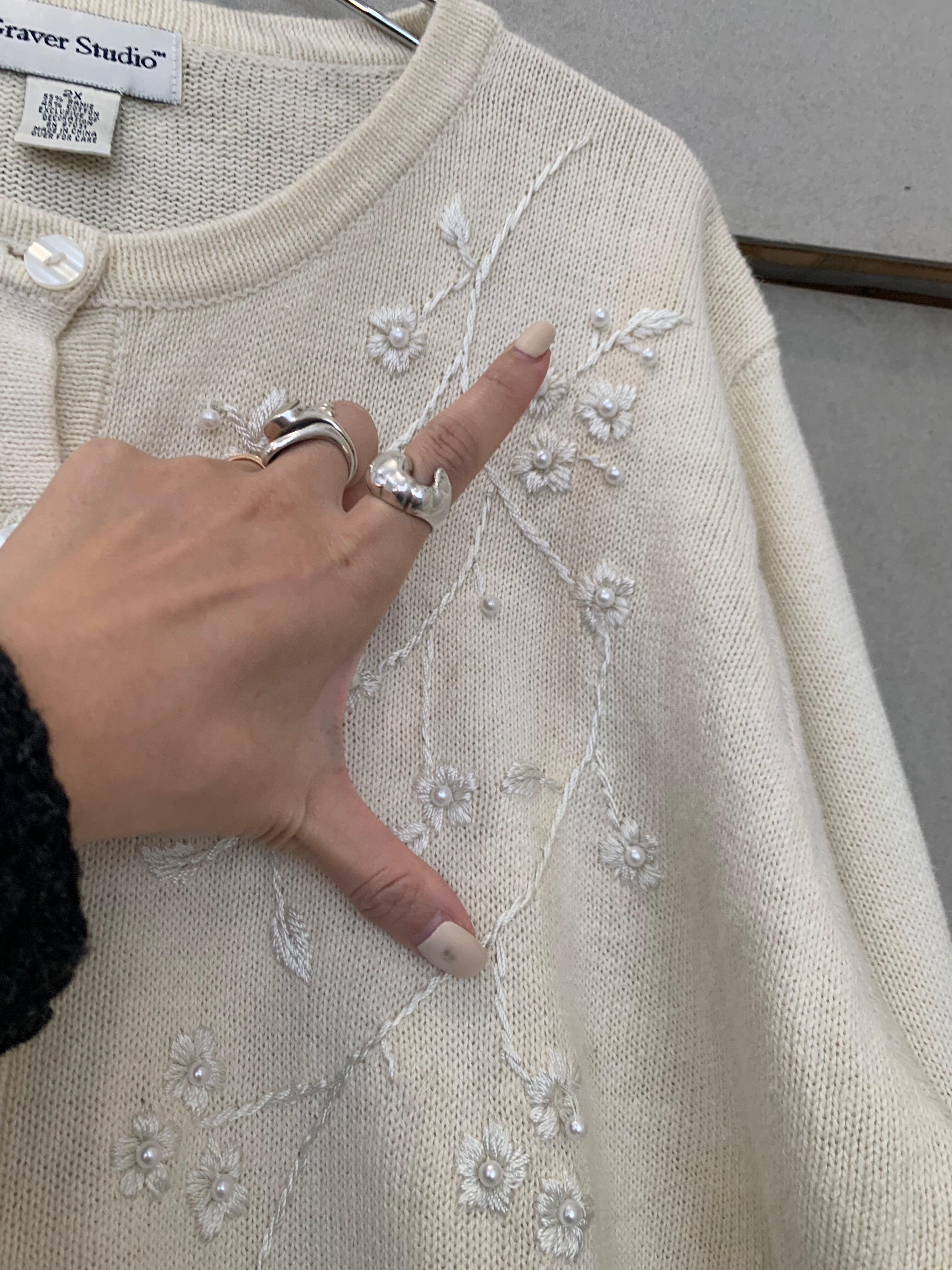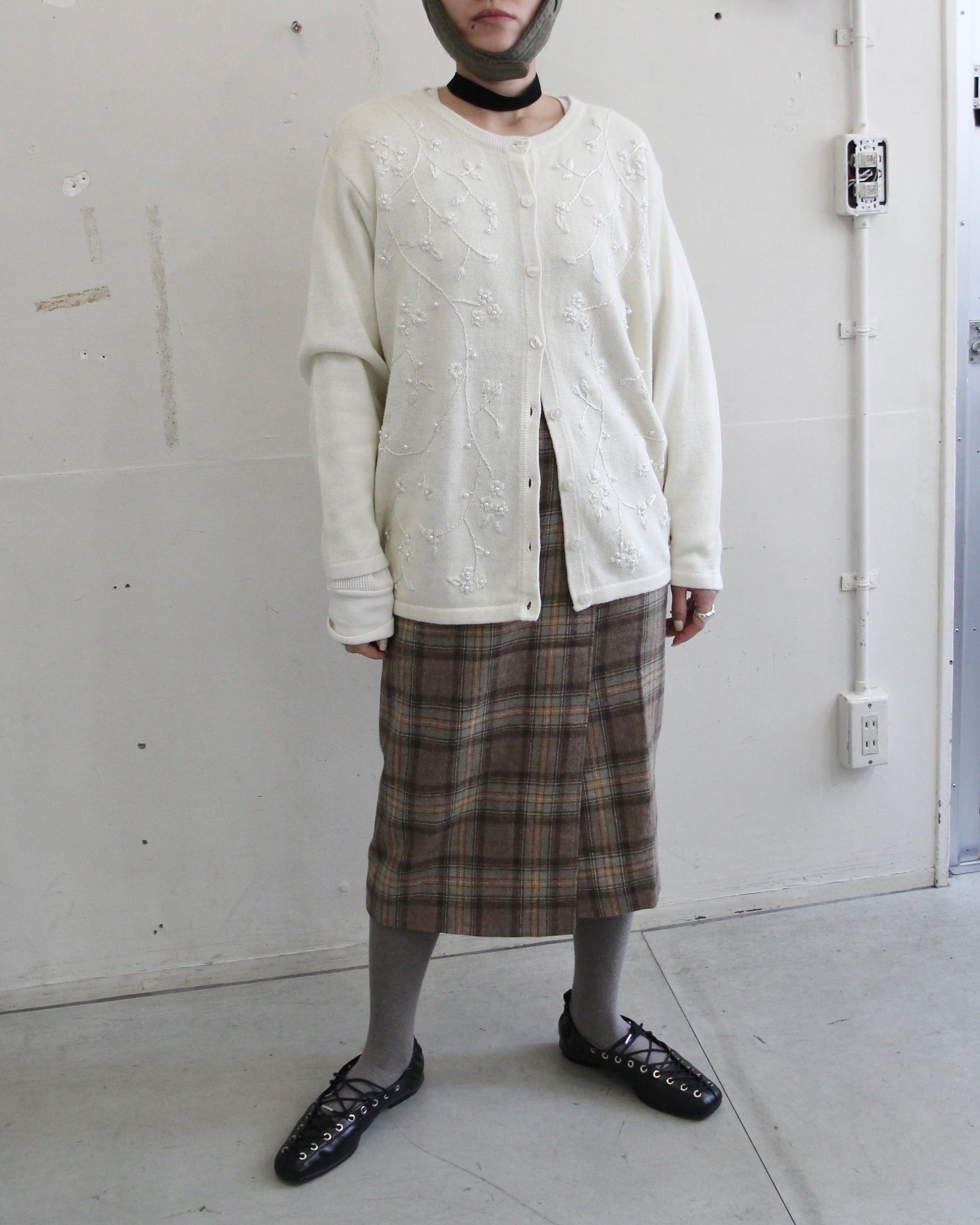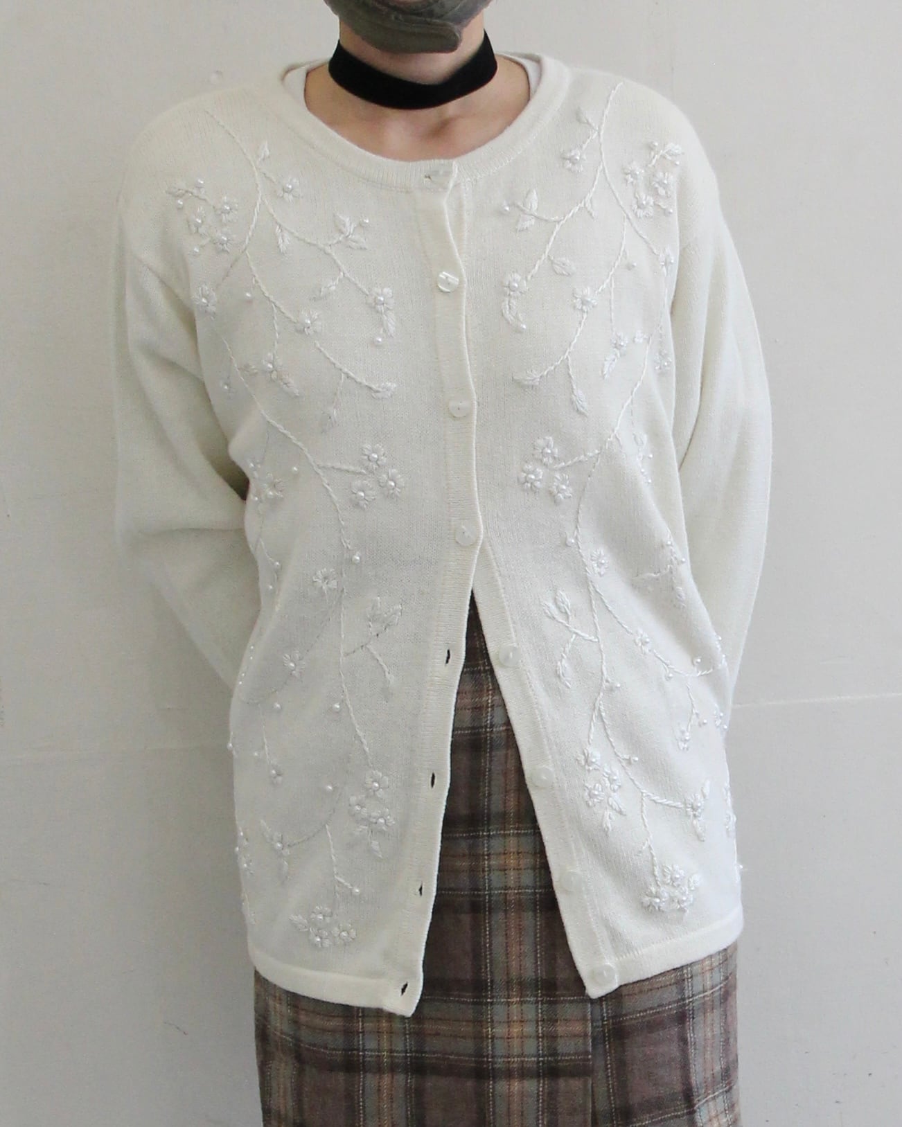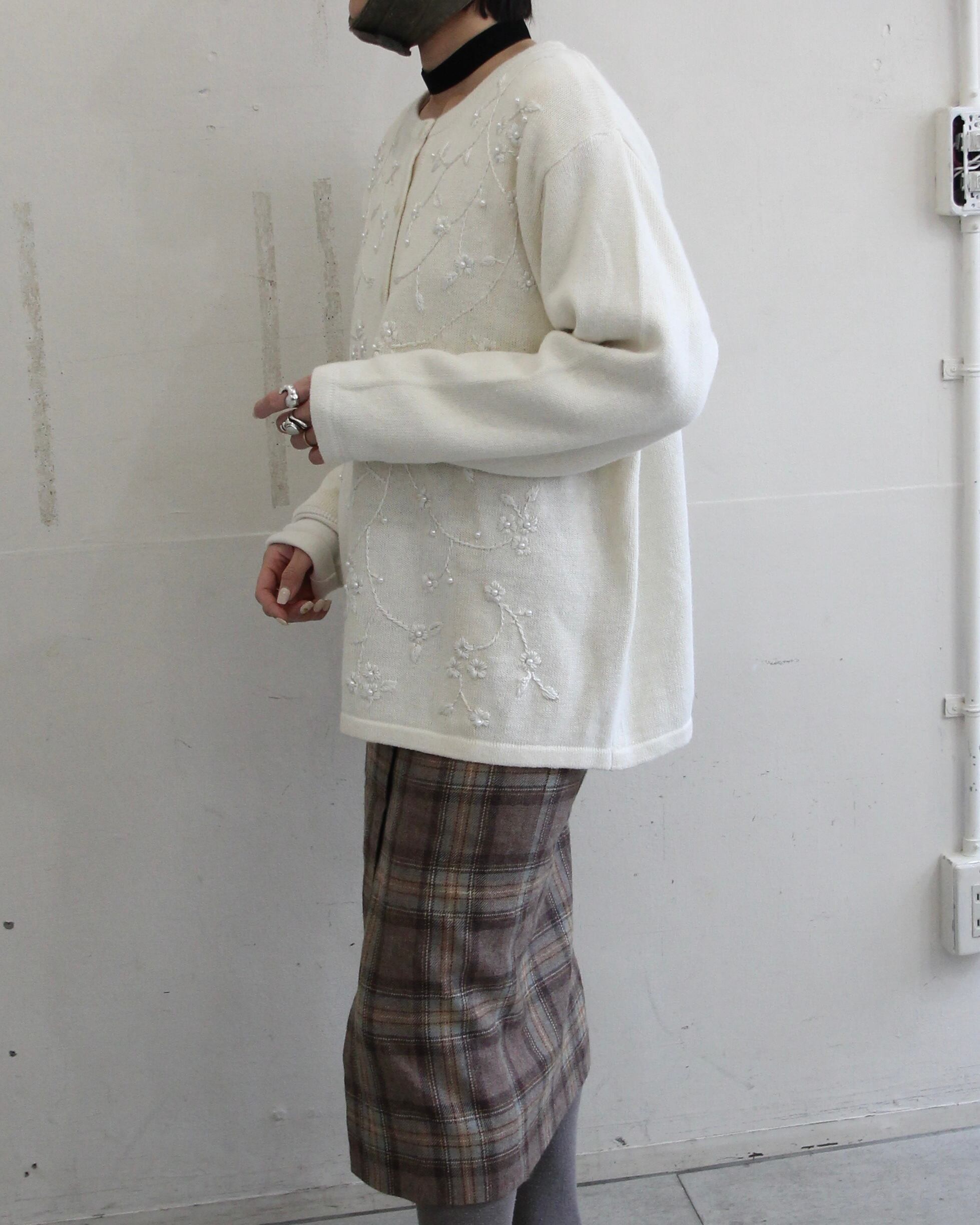 花柄刺繍(白)cardigan