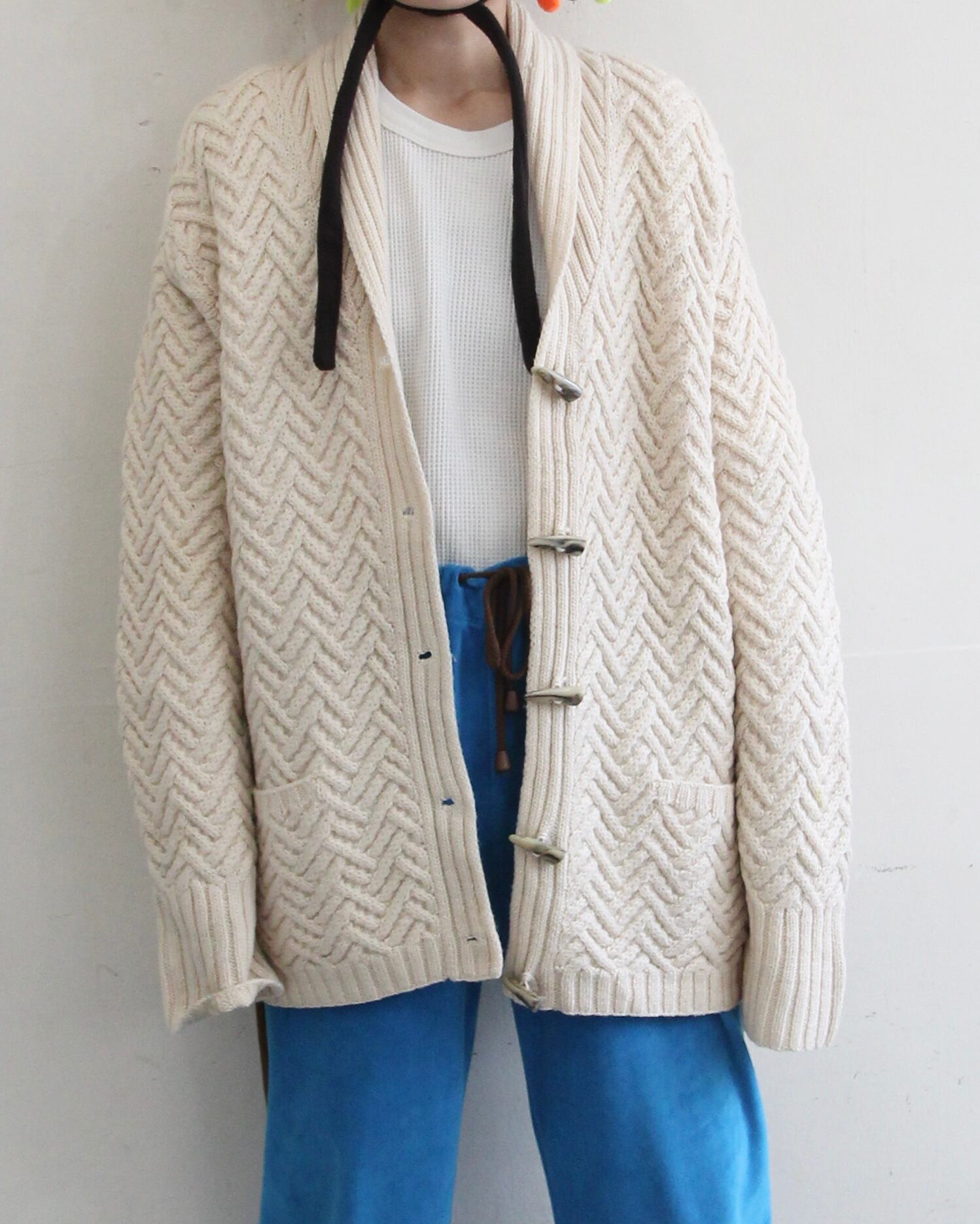 Lauren Ralph Lauren のゆったりとしたサイズ感、お尻まで隠れる丈のカーディガンです