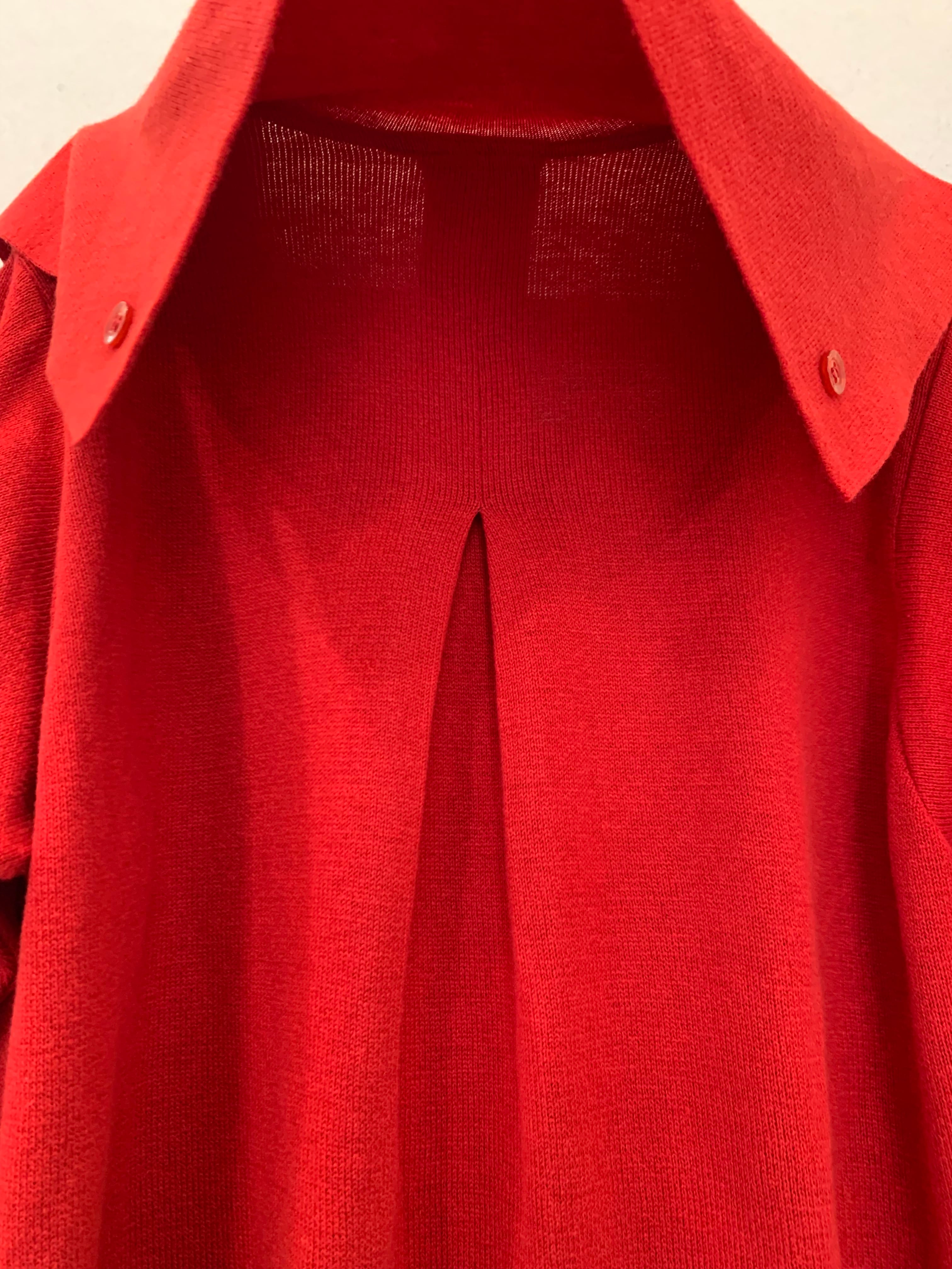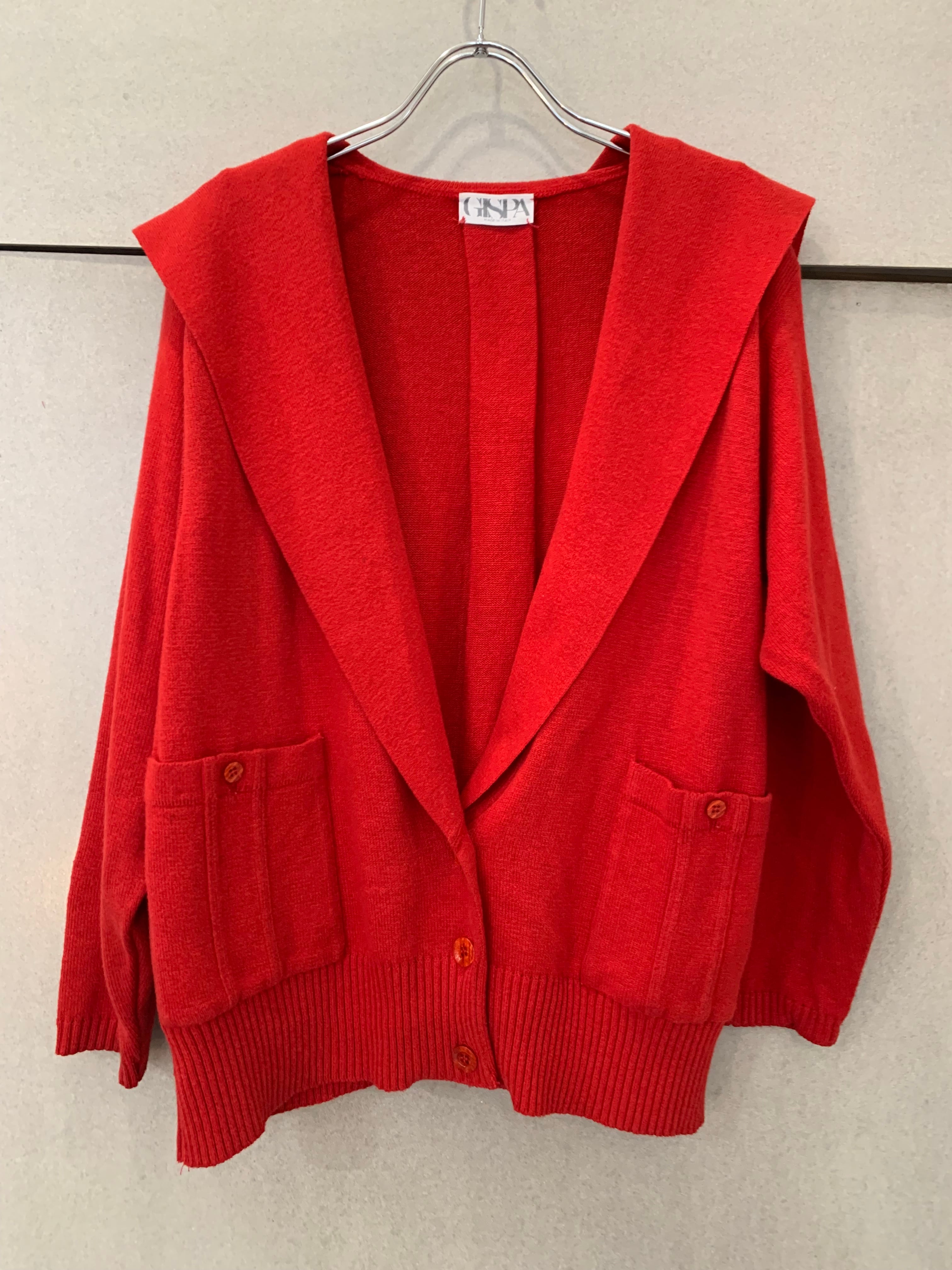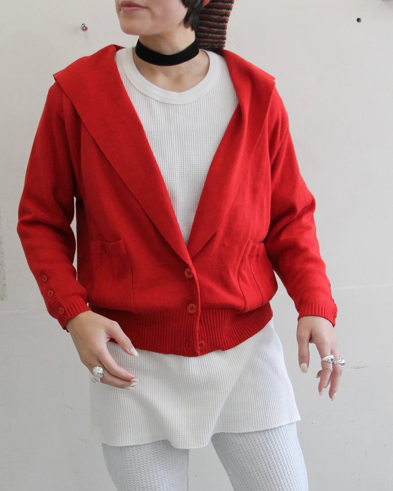 イタリア製、背中のセーラーカラーが特徴的な真っ赤なカーディガン