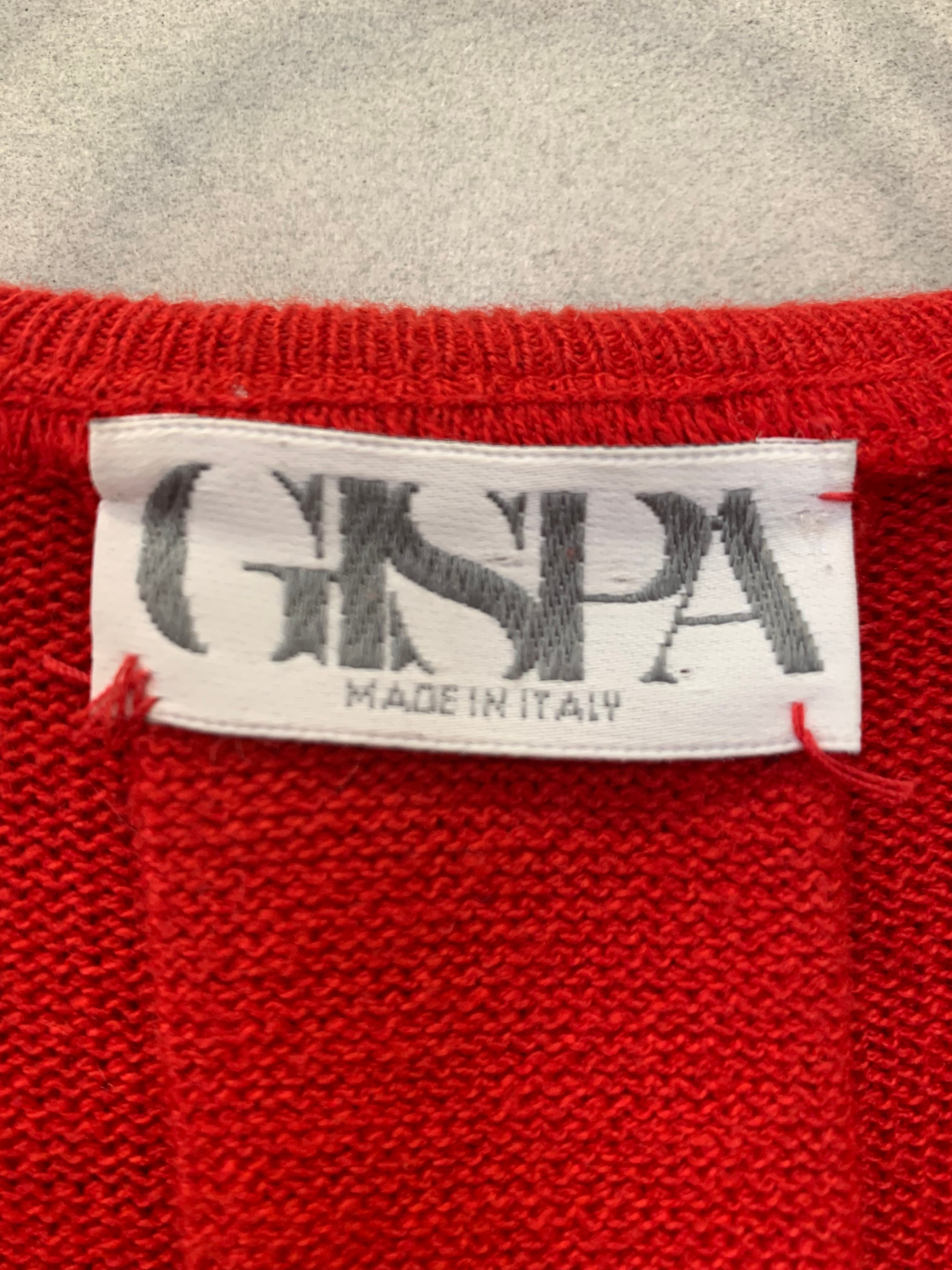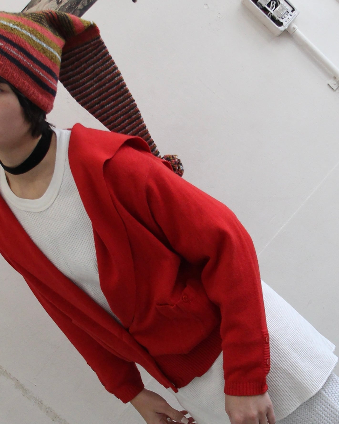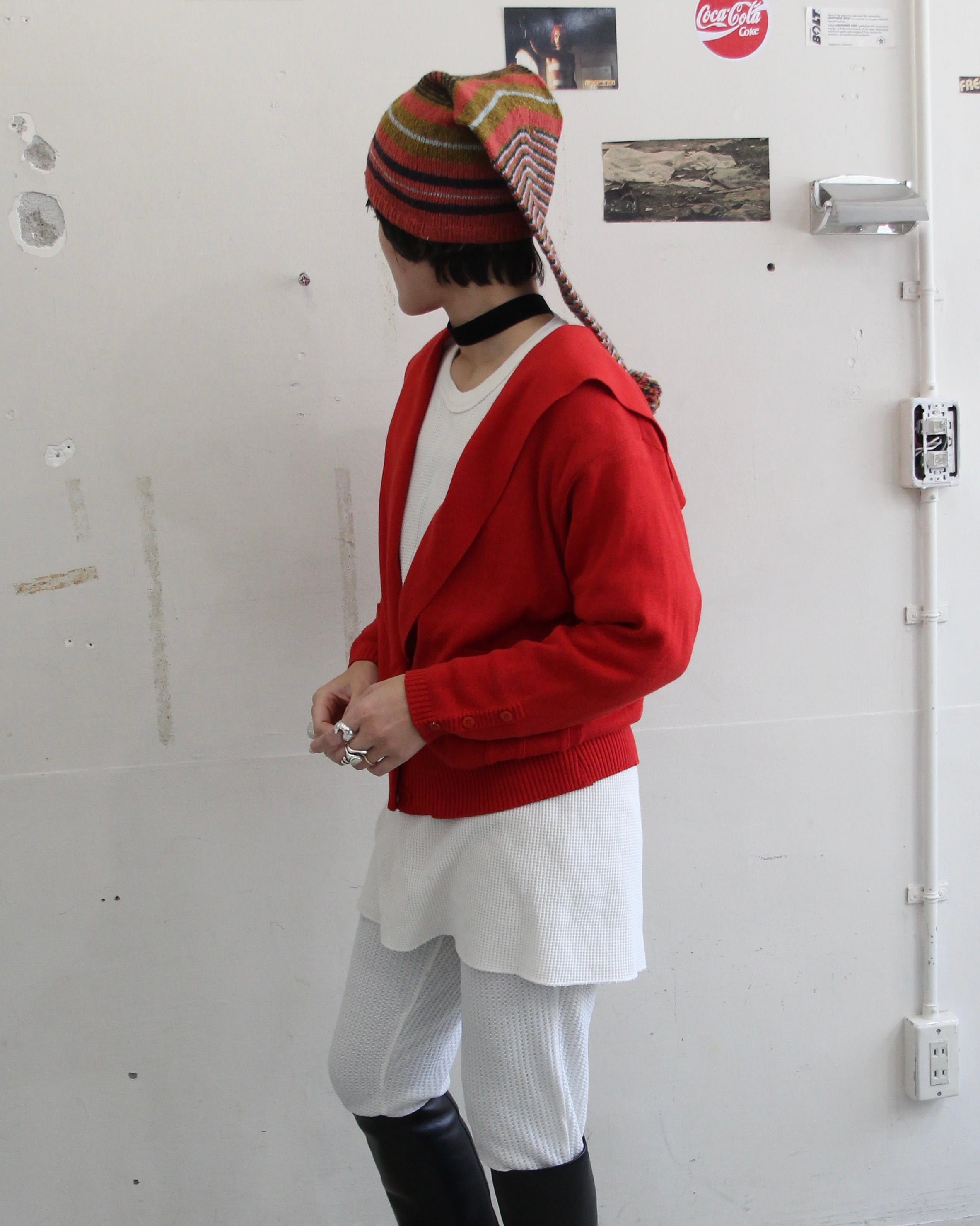 イタリア製、背中のセーラーカラーが特徴的な真っ赤なカーディガン