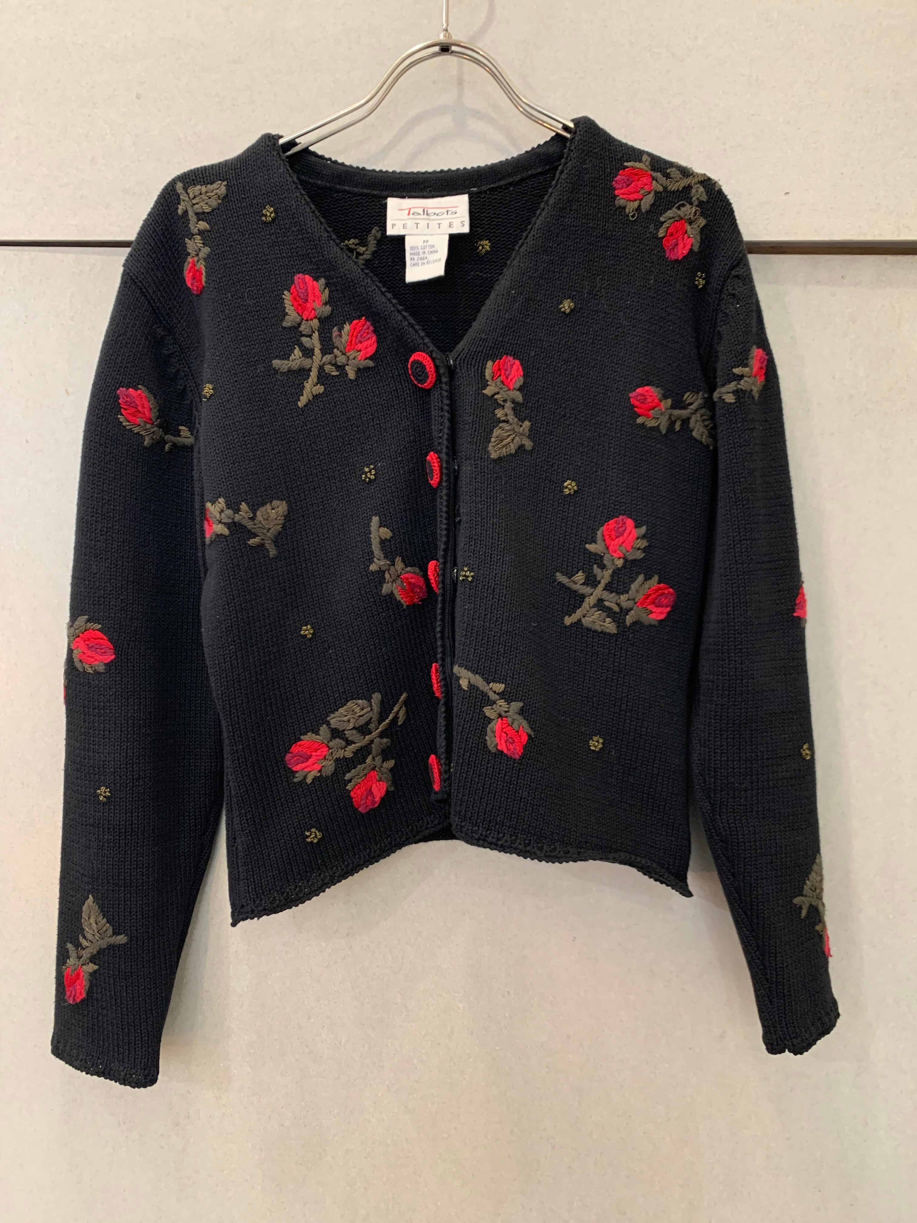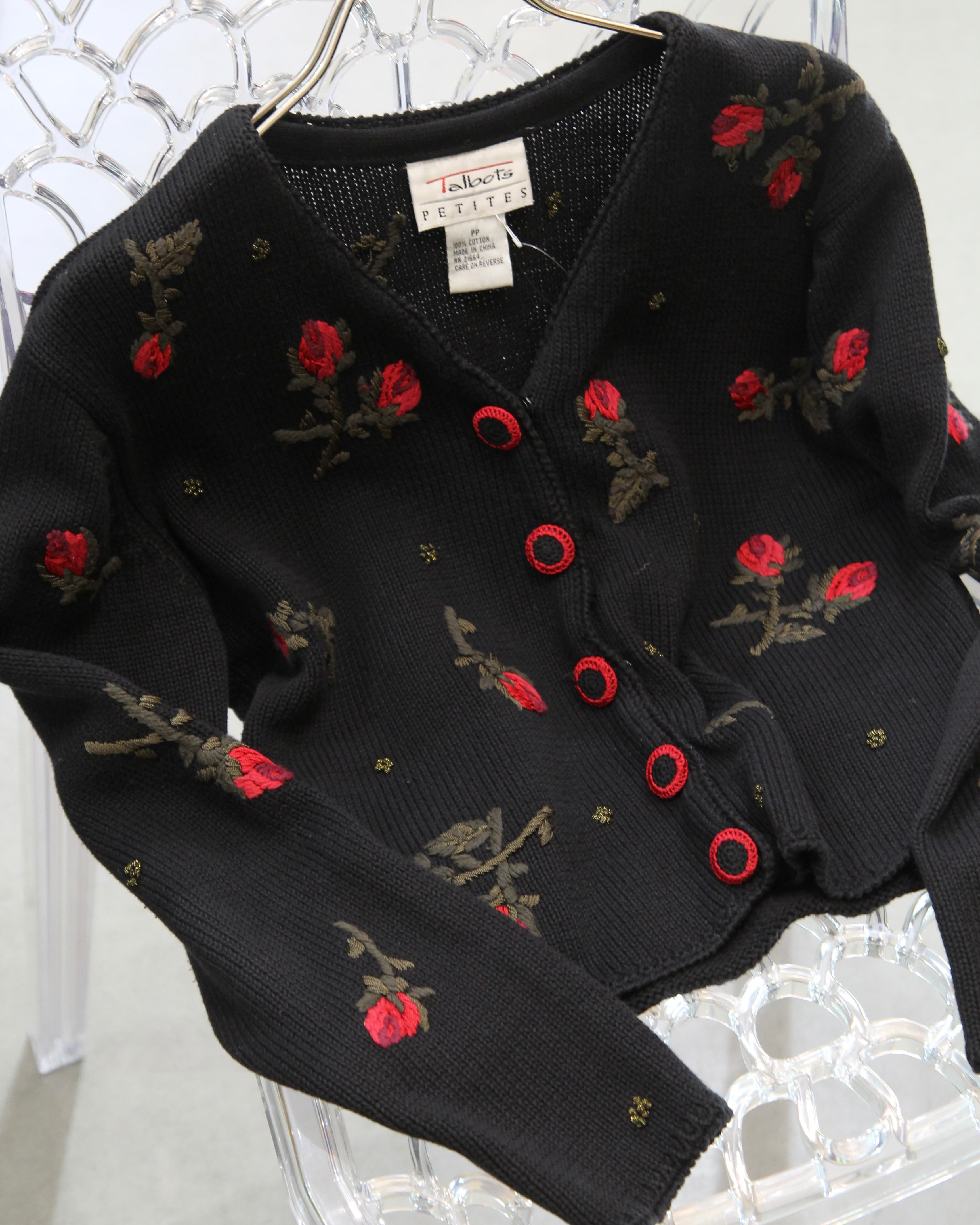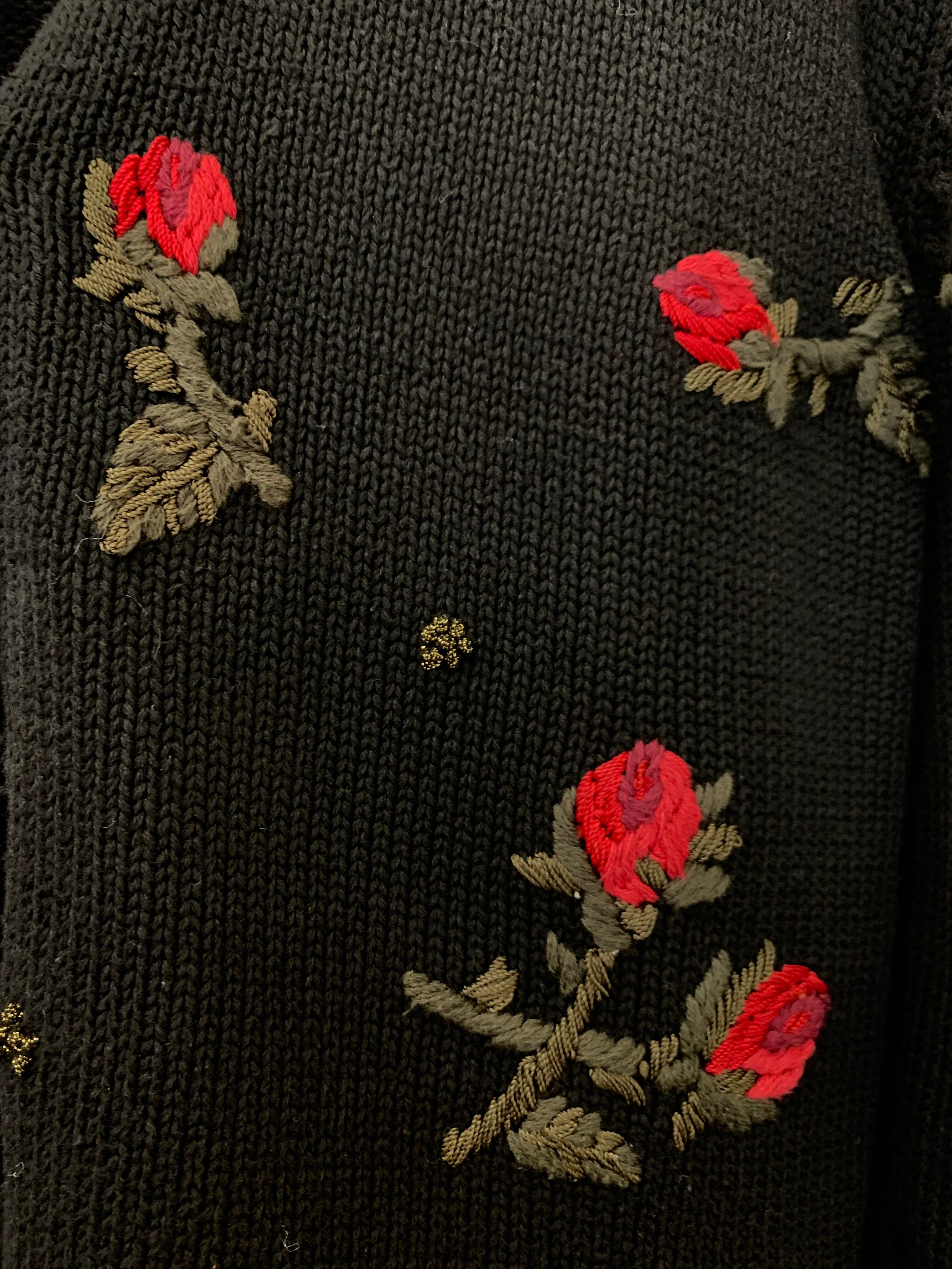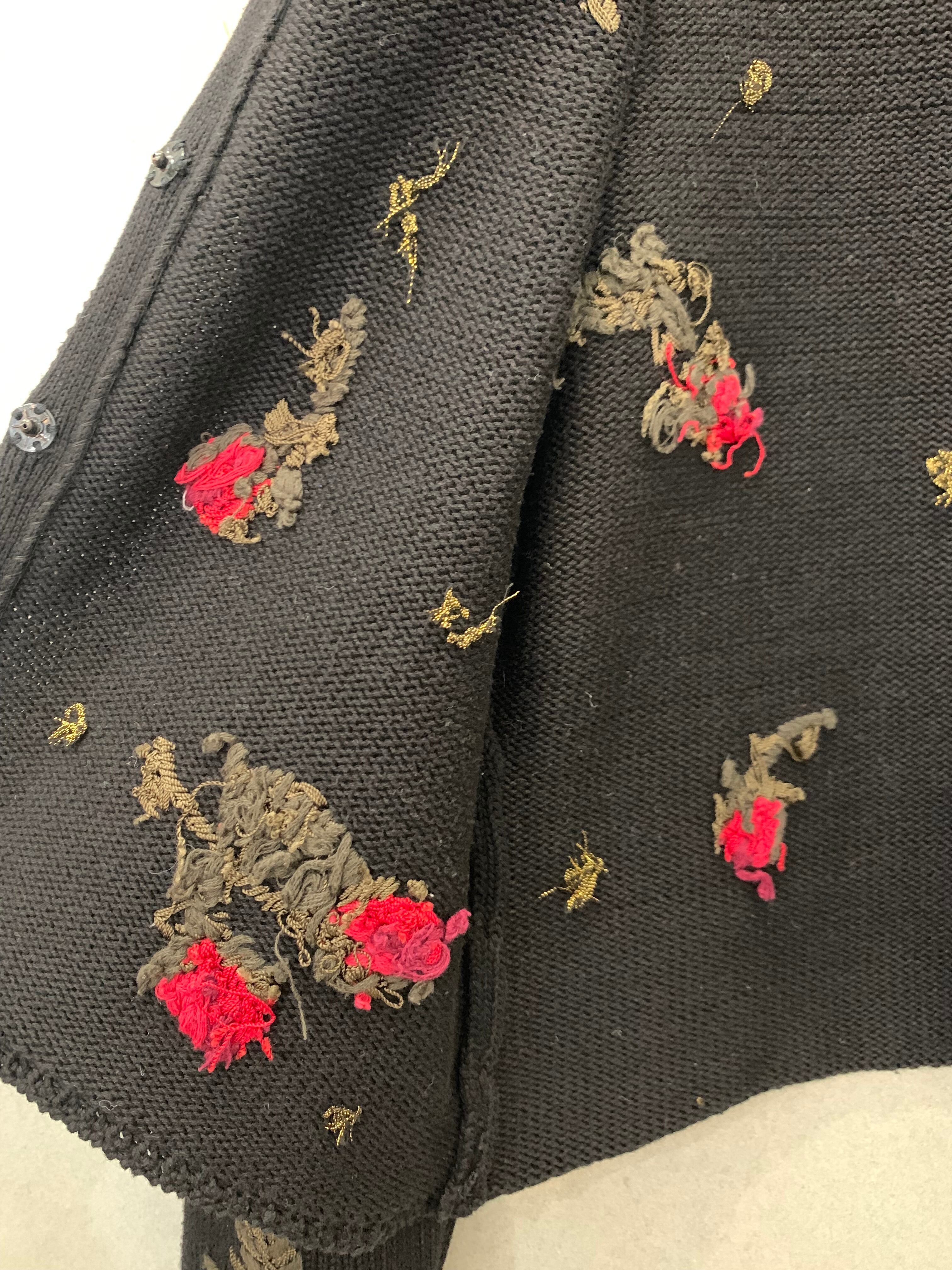 薔薇の刺繍が全体に散りばめられたカーディガン