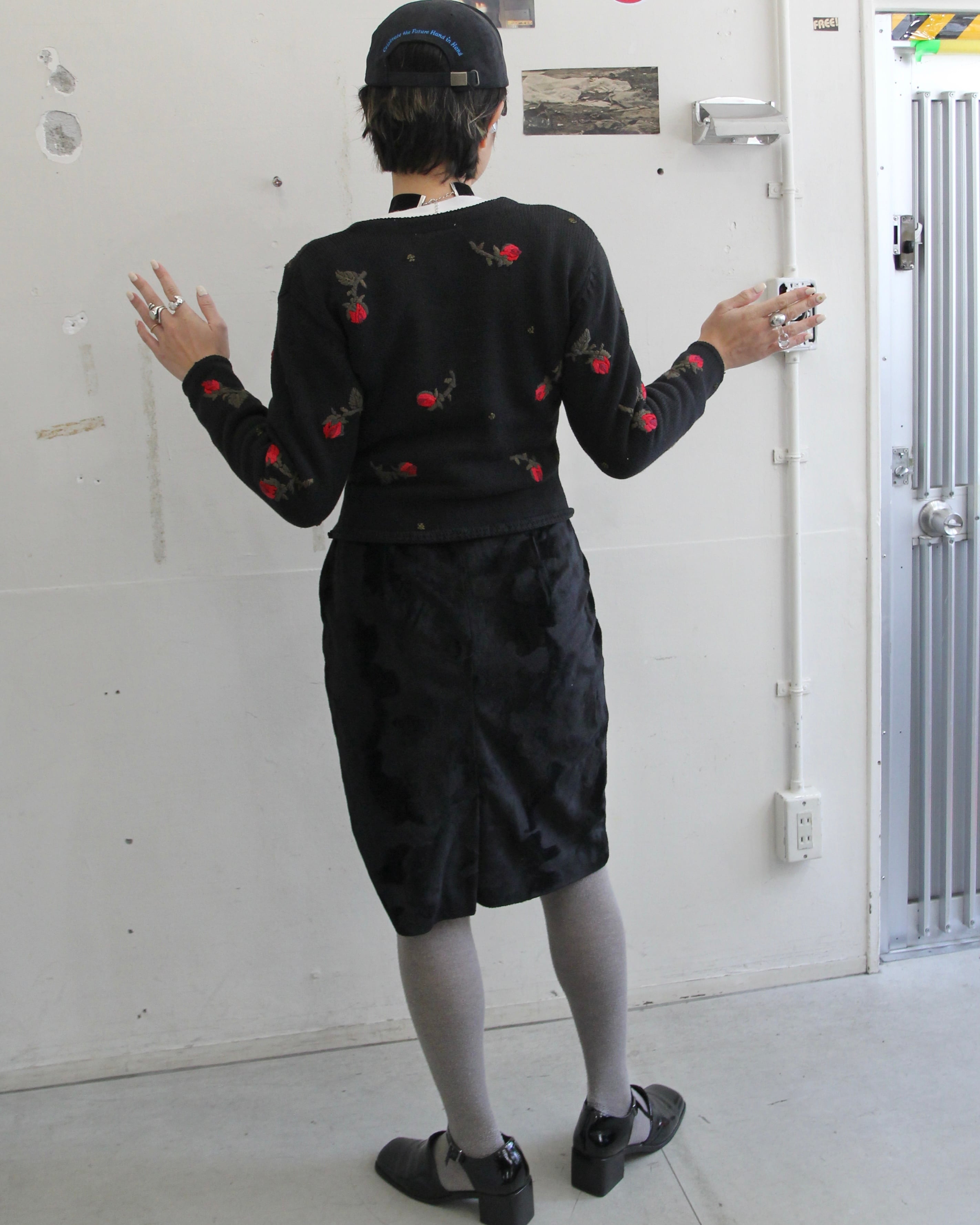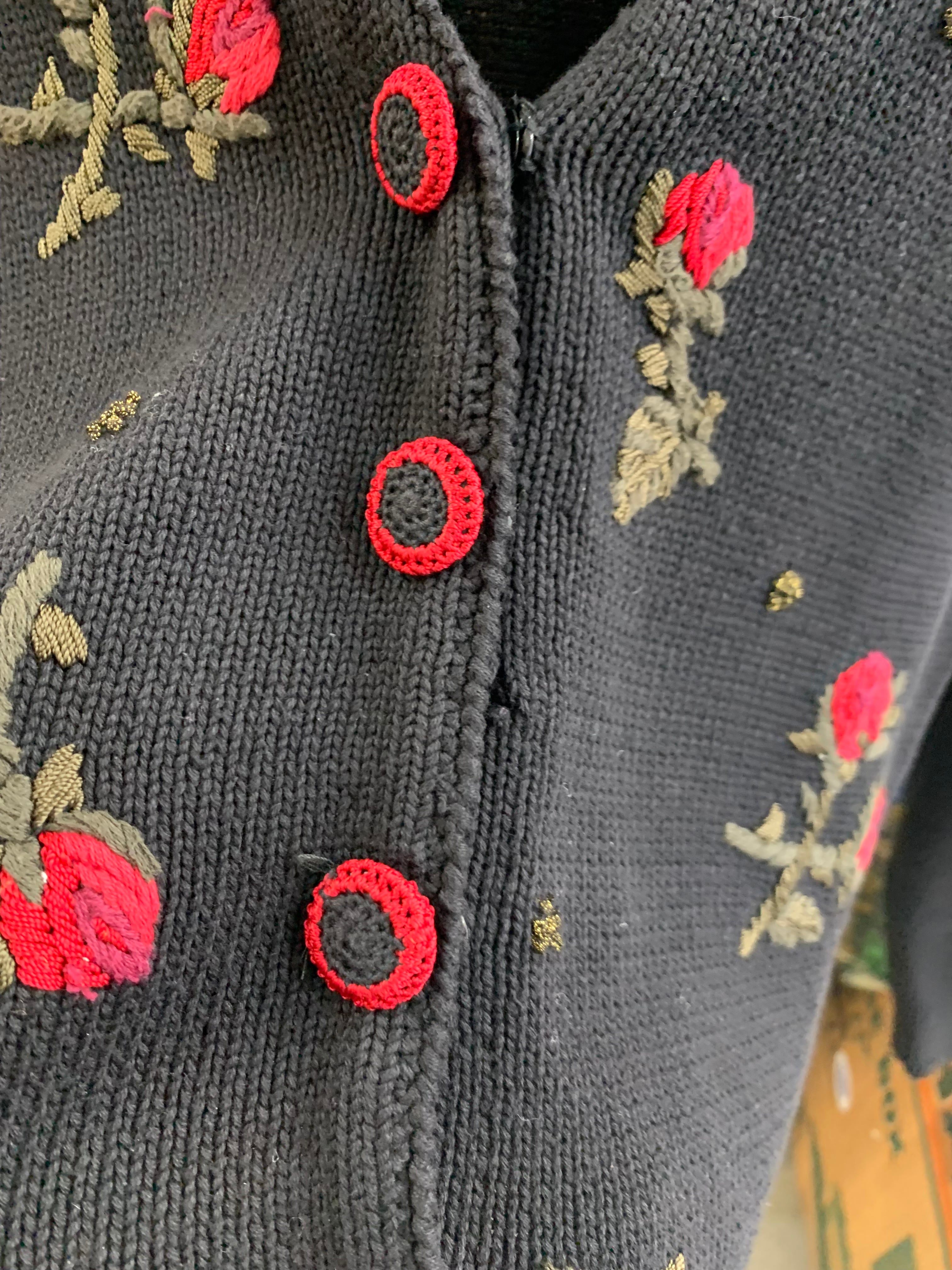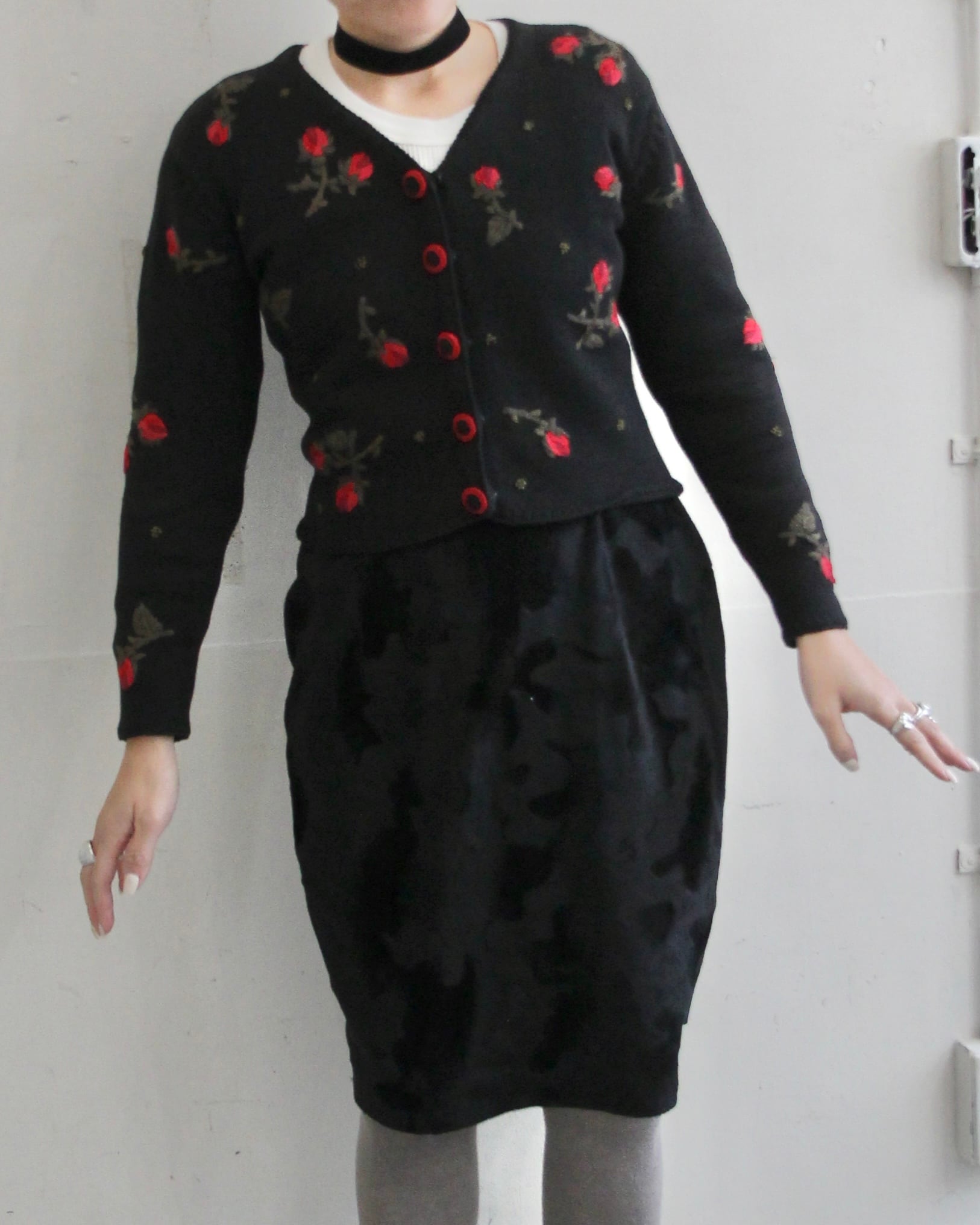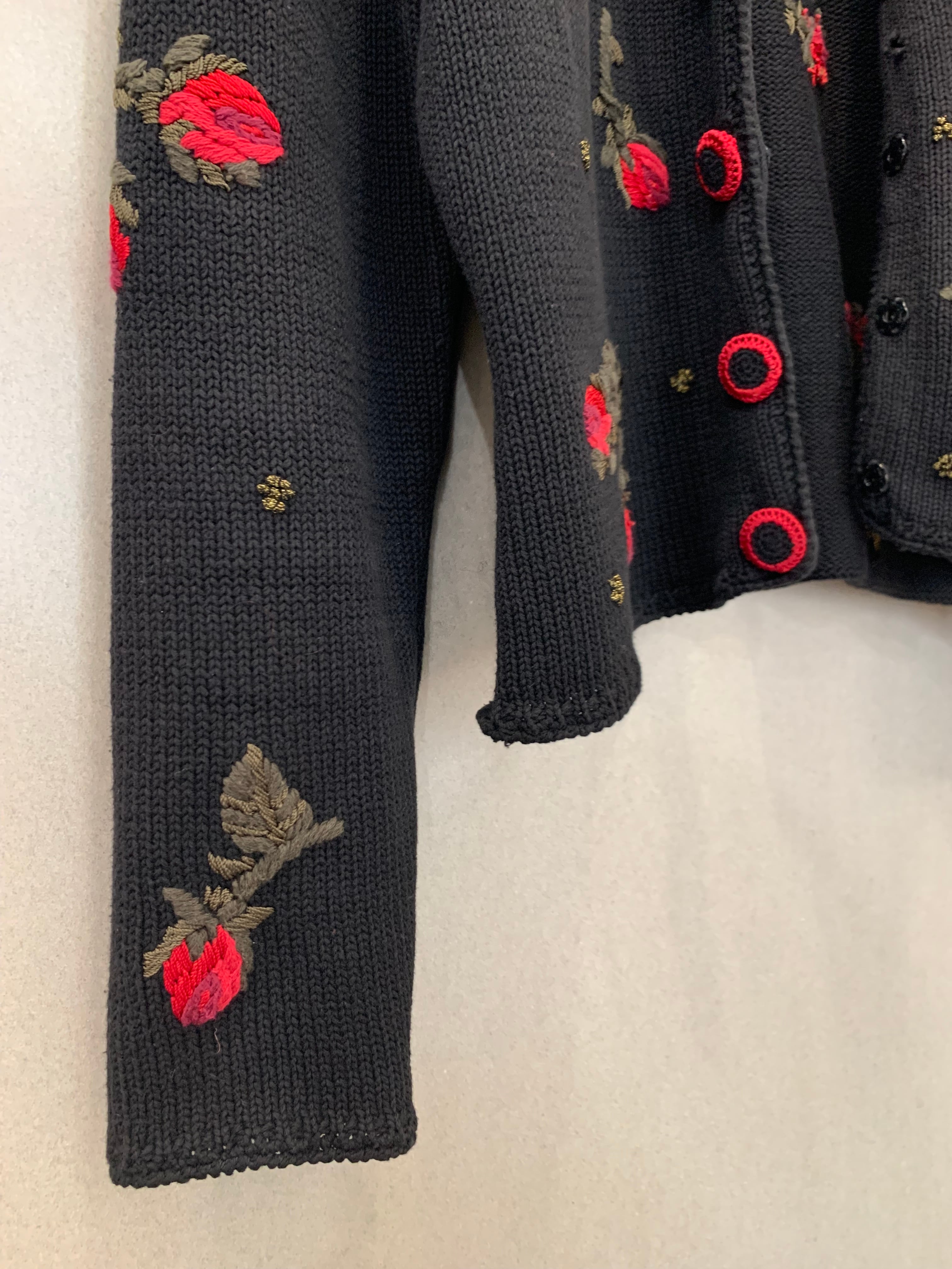 薔薇の刺繍が全体に散りばめられたカーディガン