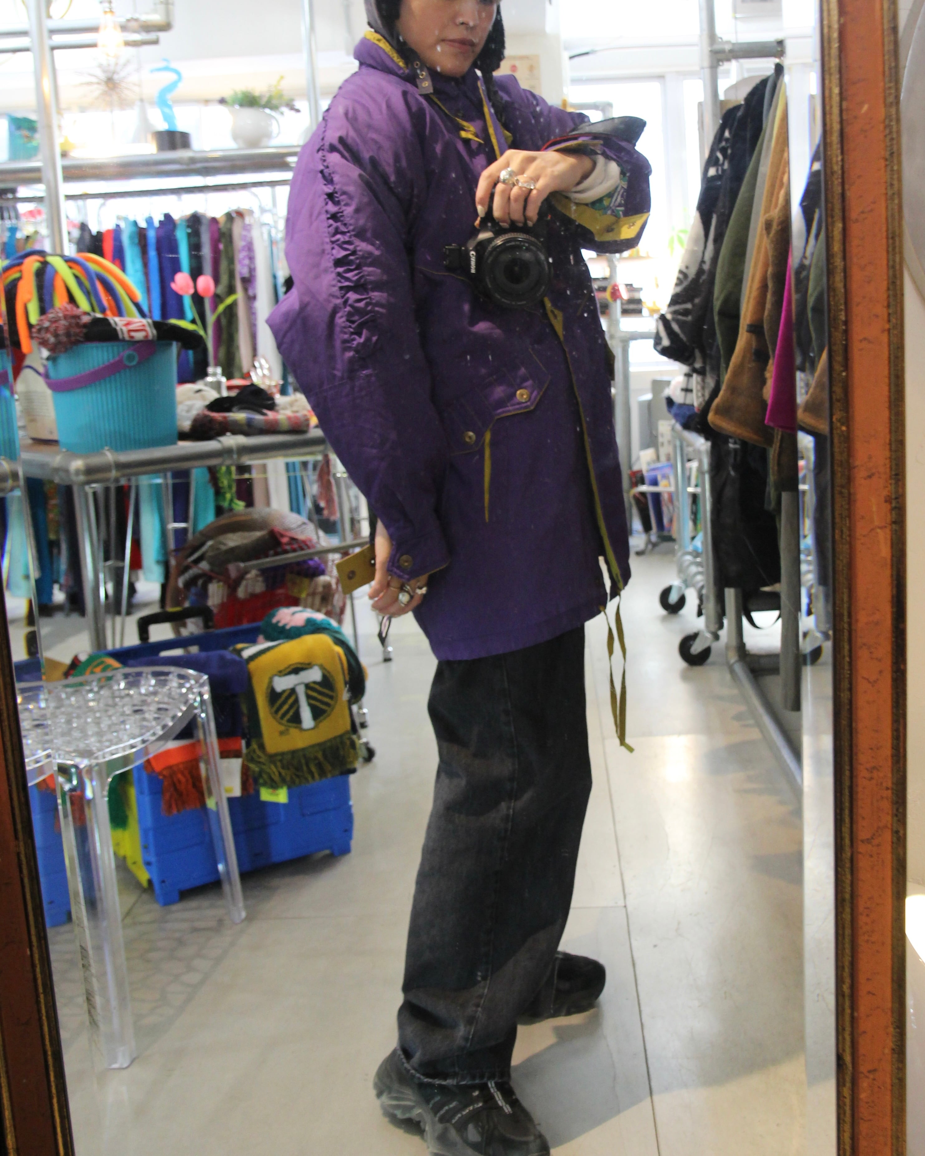 寒さに打ち勝つことができそうな、パープルカラーのヘビーアウターです(着心地・重さは軽いです)