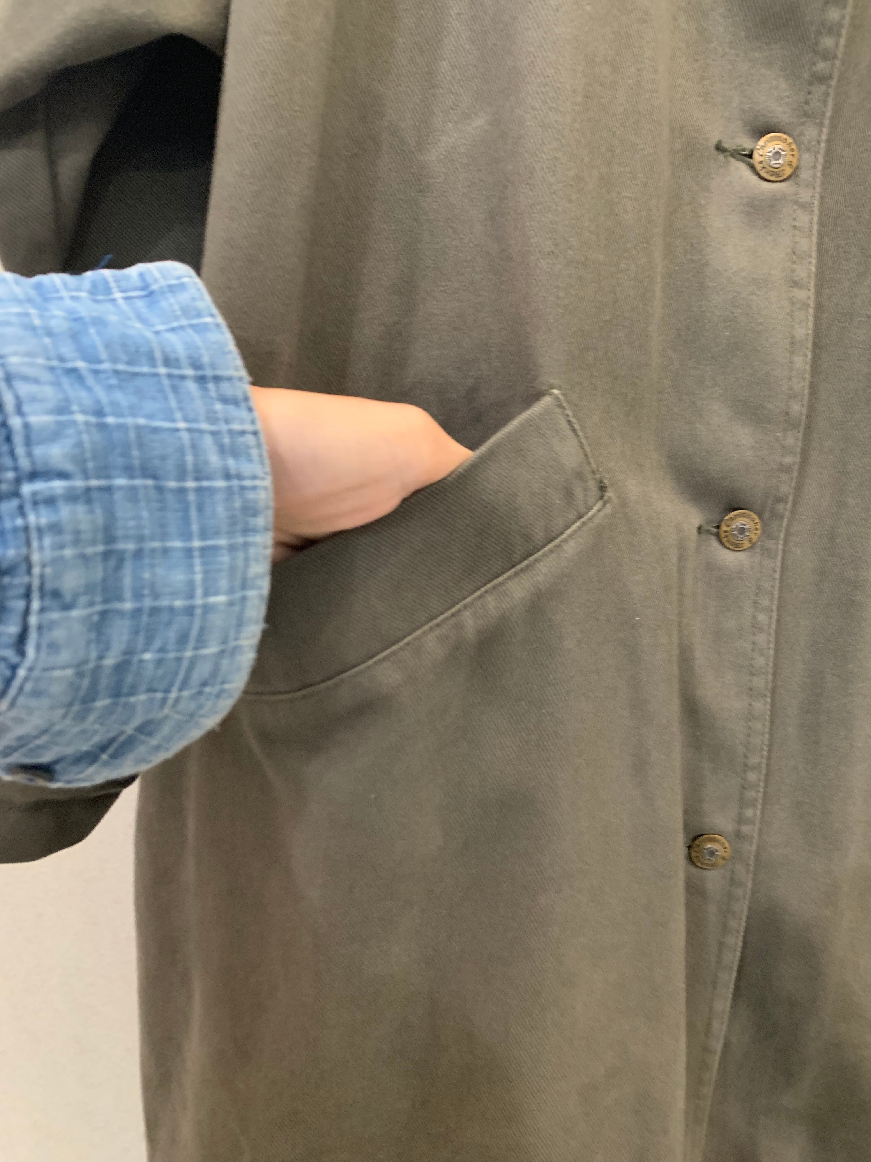 Khaki denim long coat