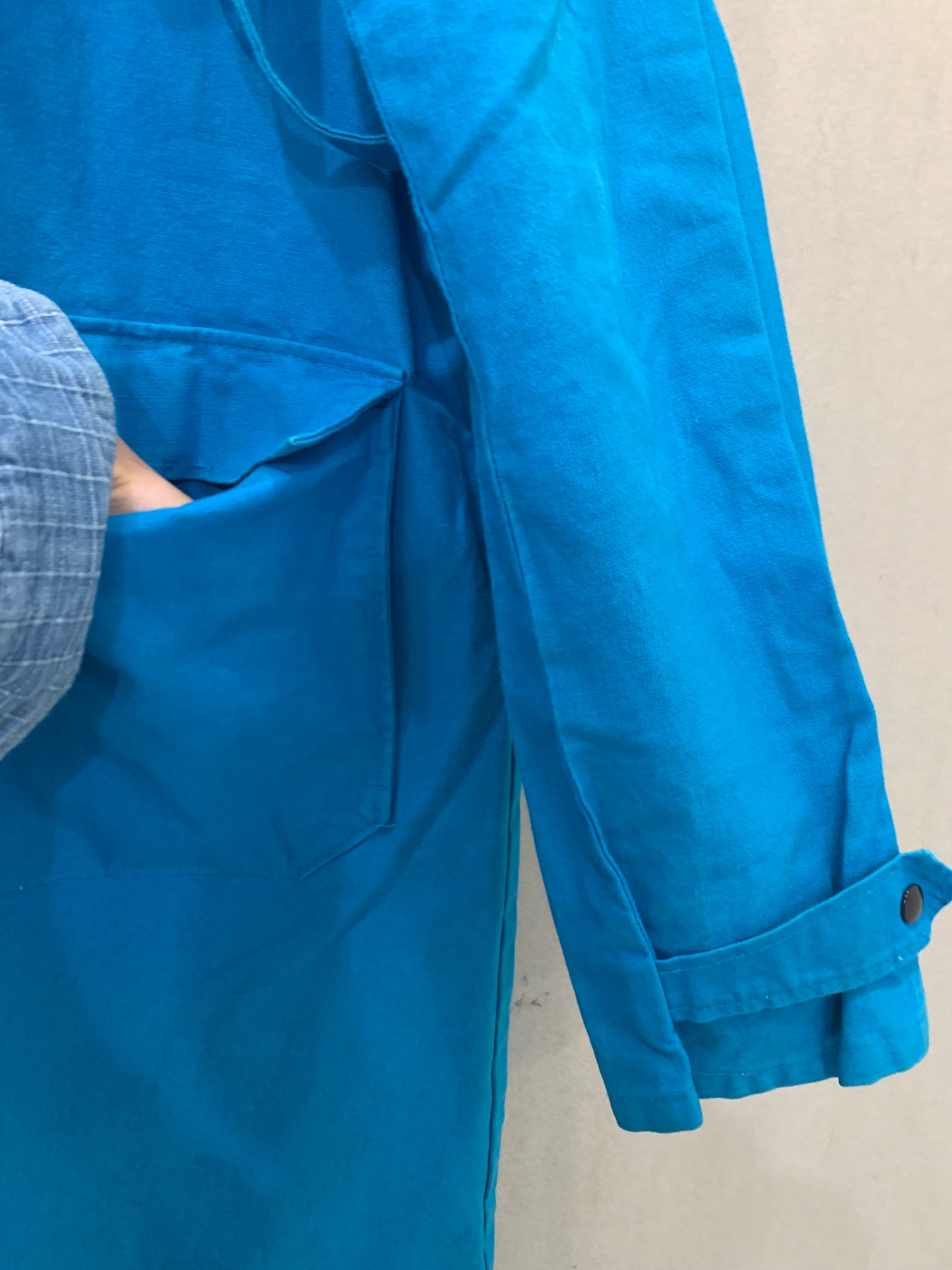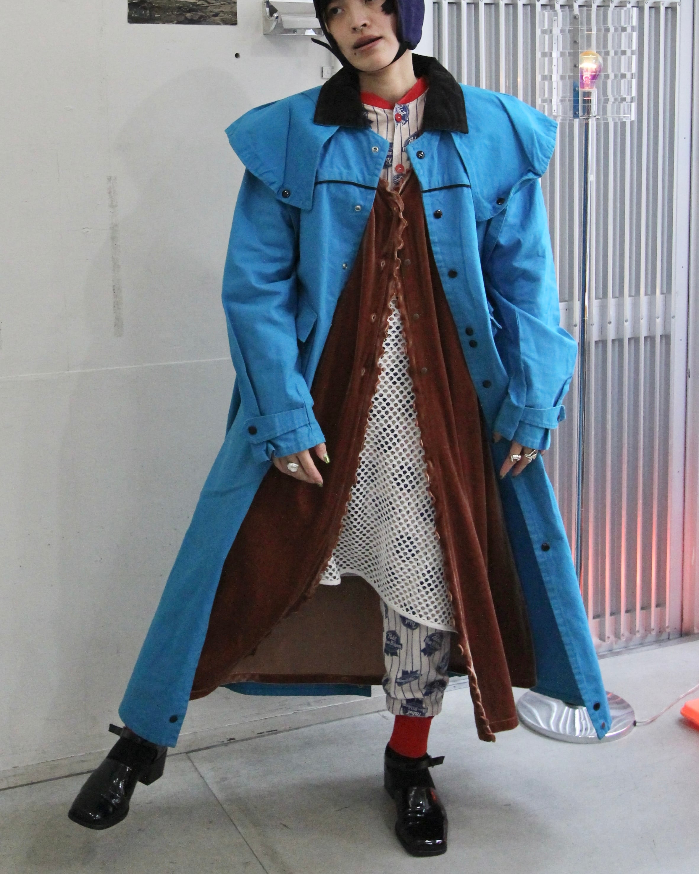 しっかり硬めのコットン生地でできた、馬乗りのためにつくられたロングコート