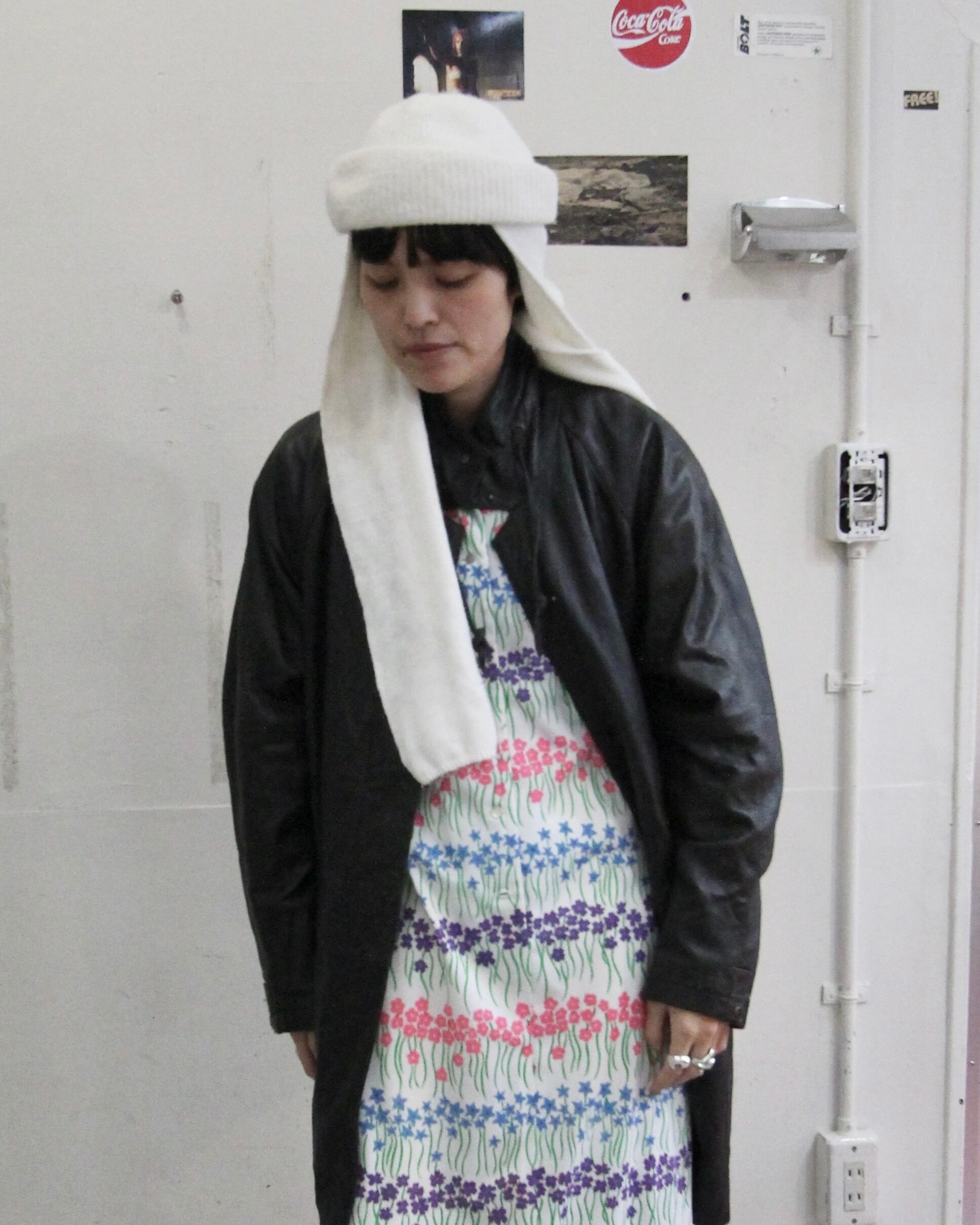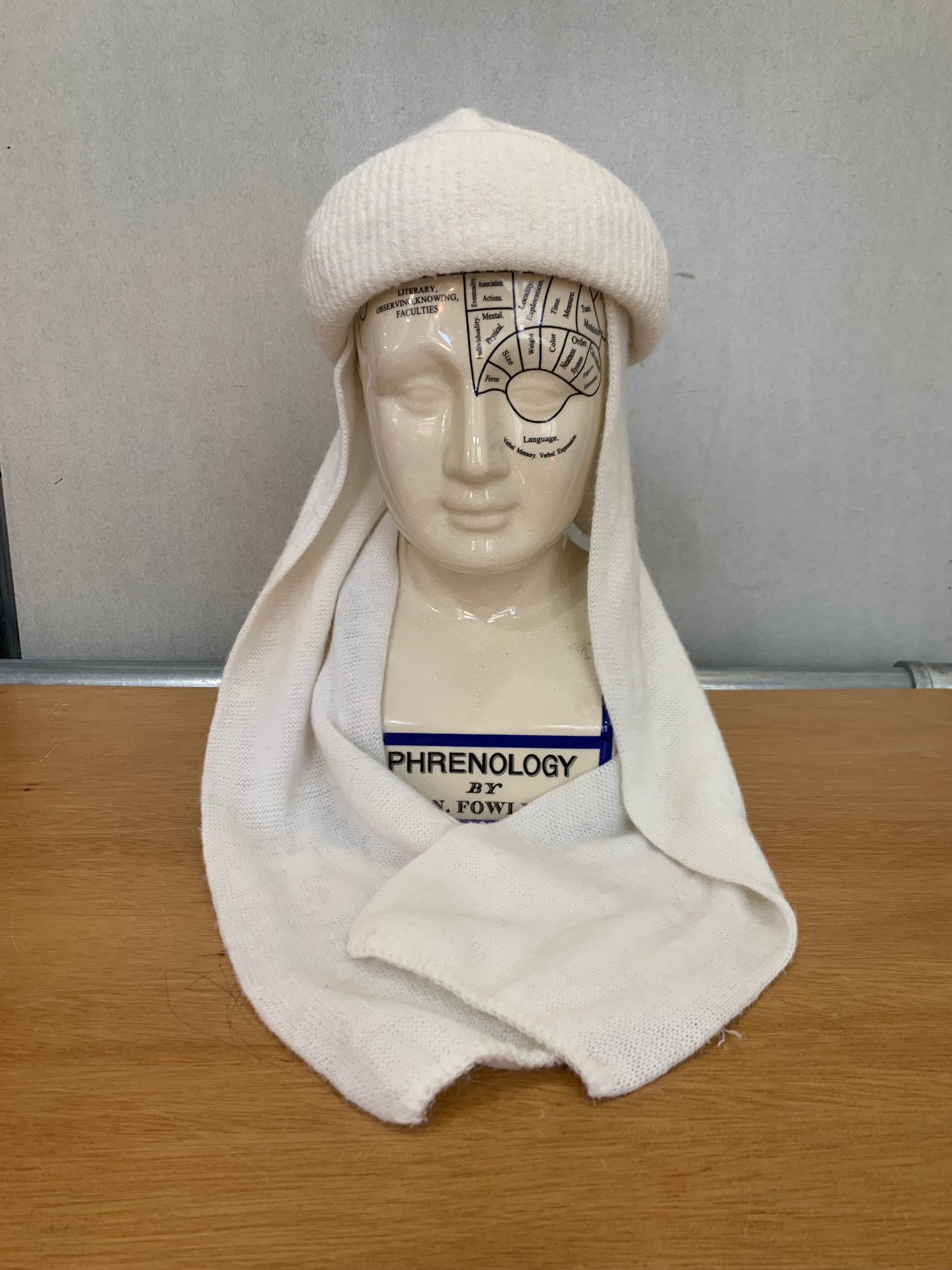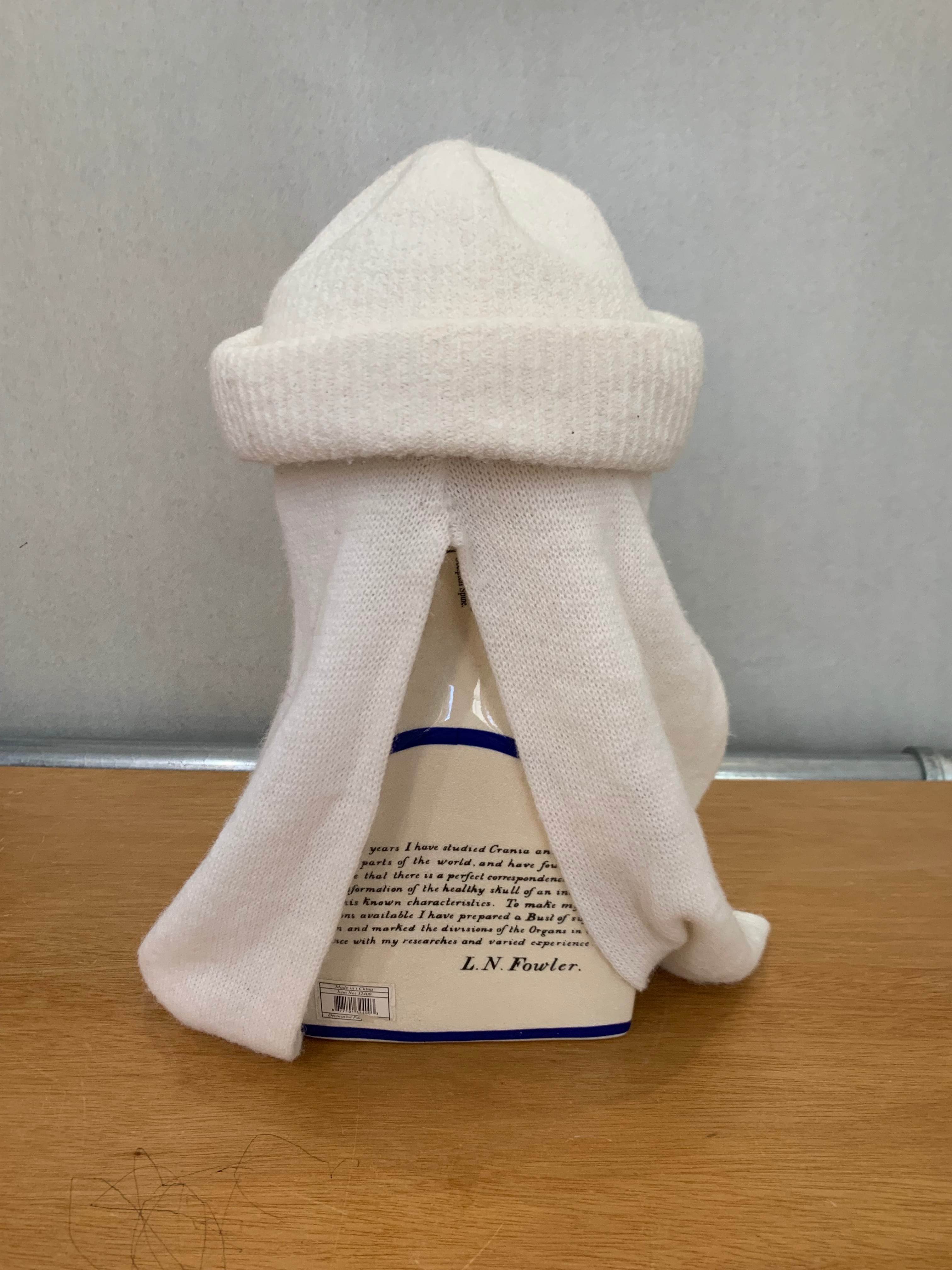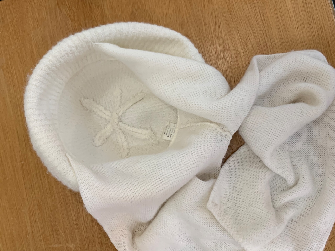 White knit hat with muffler