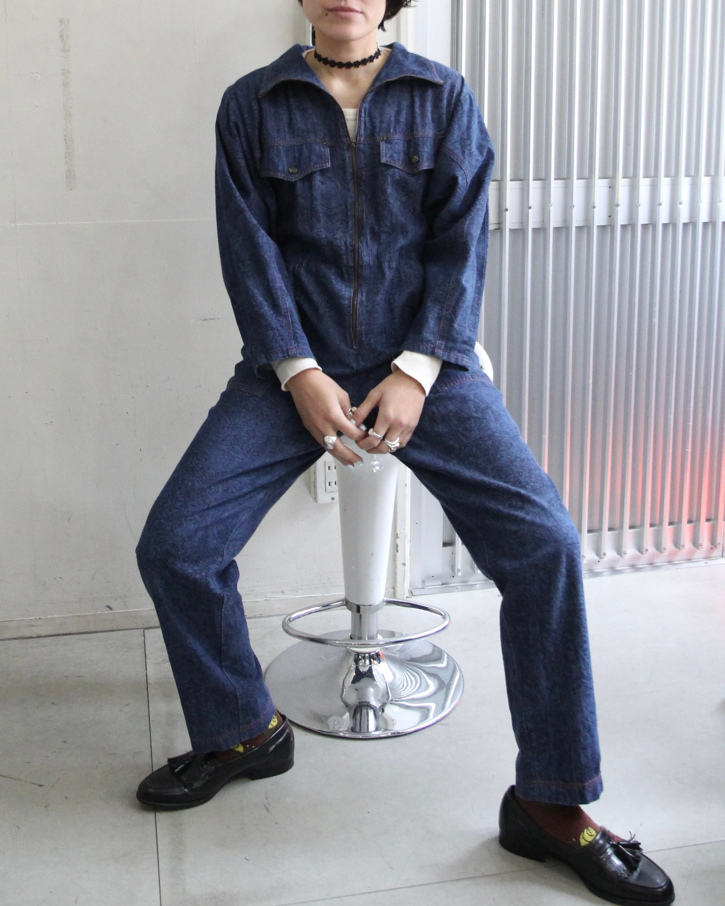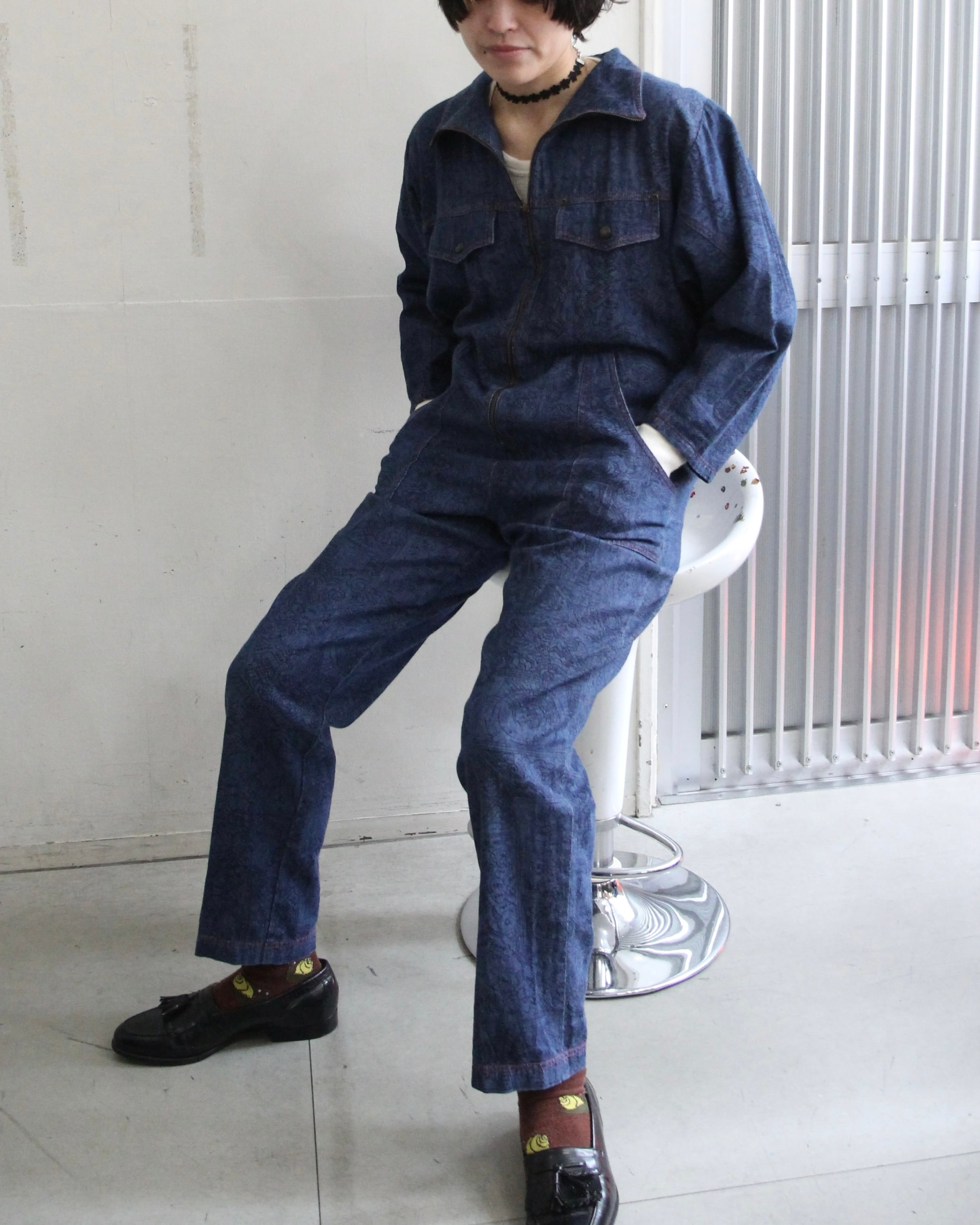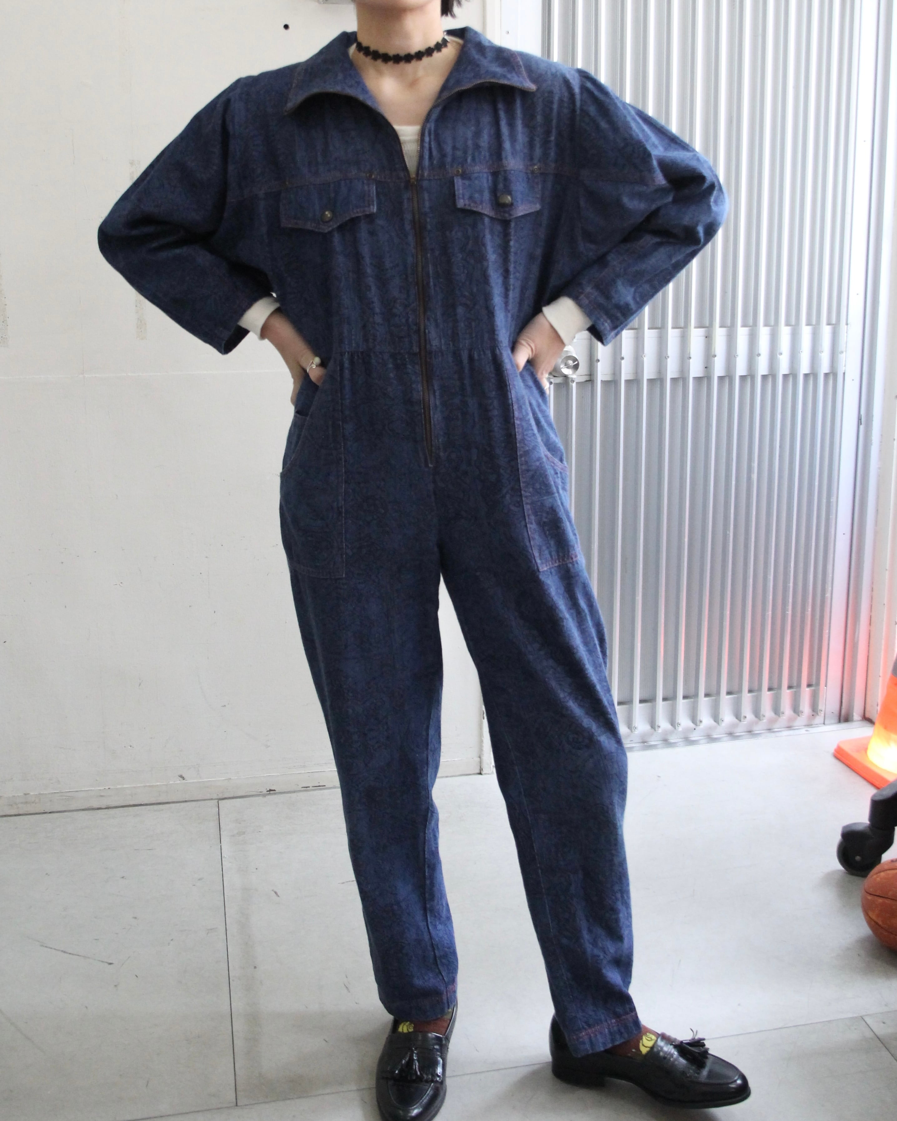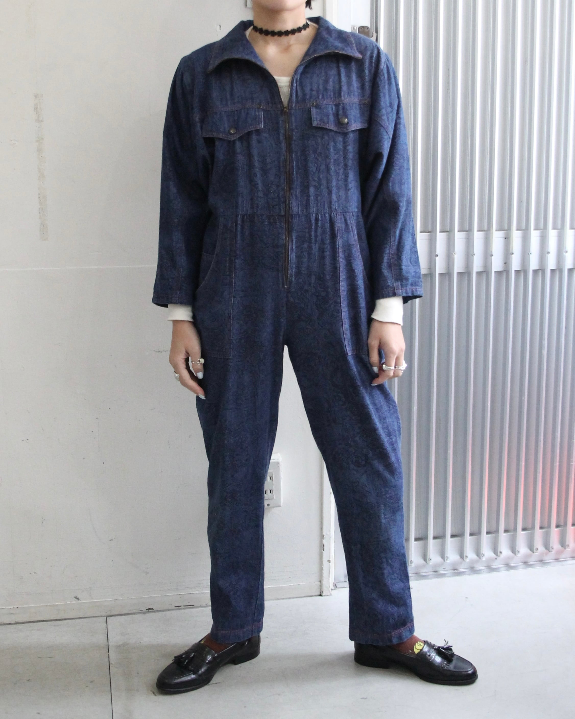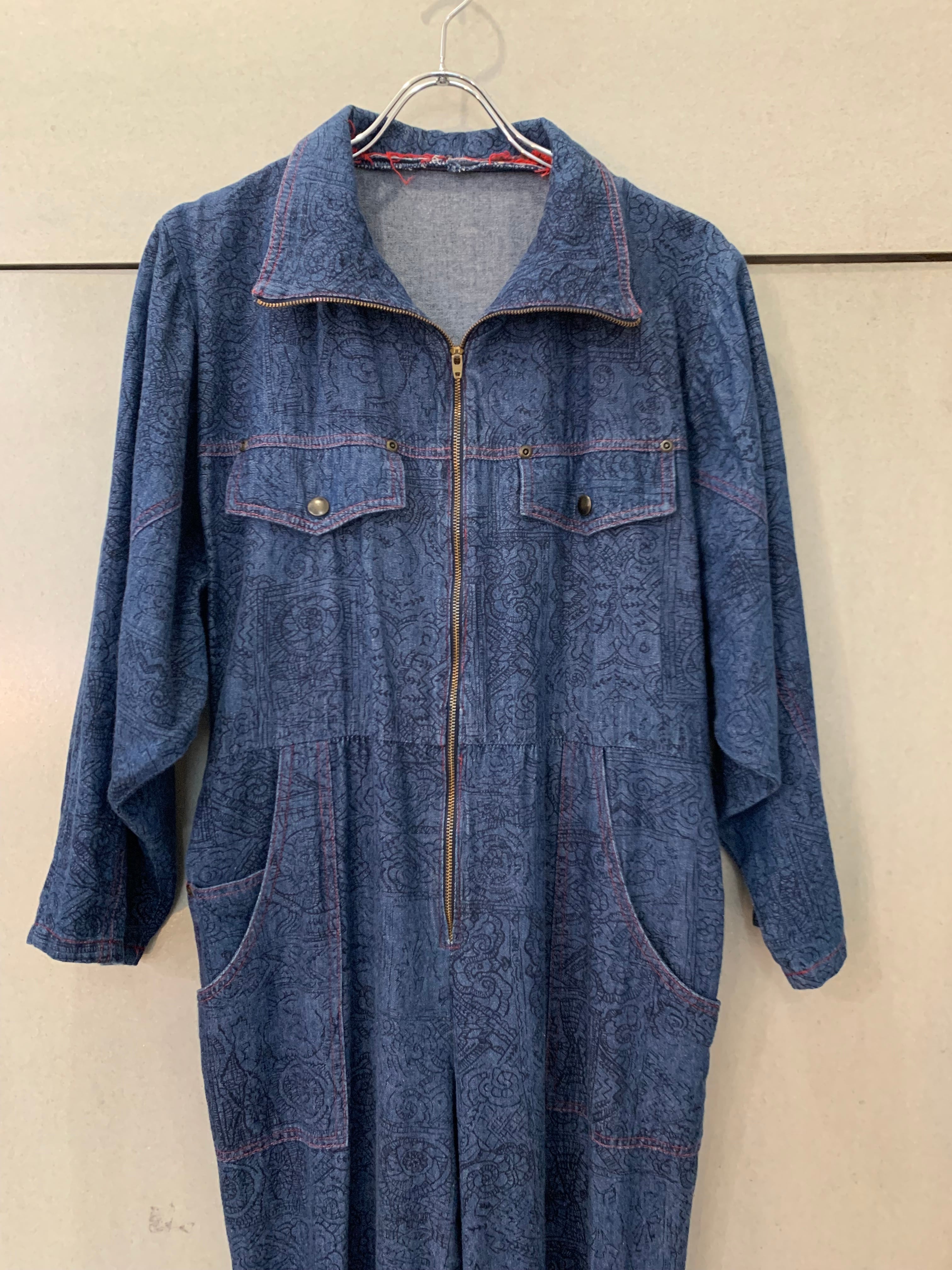 よく見ると模様がたくさんはいったデニムのオールインワン