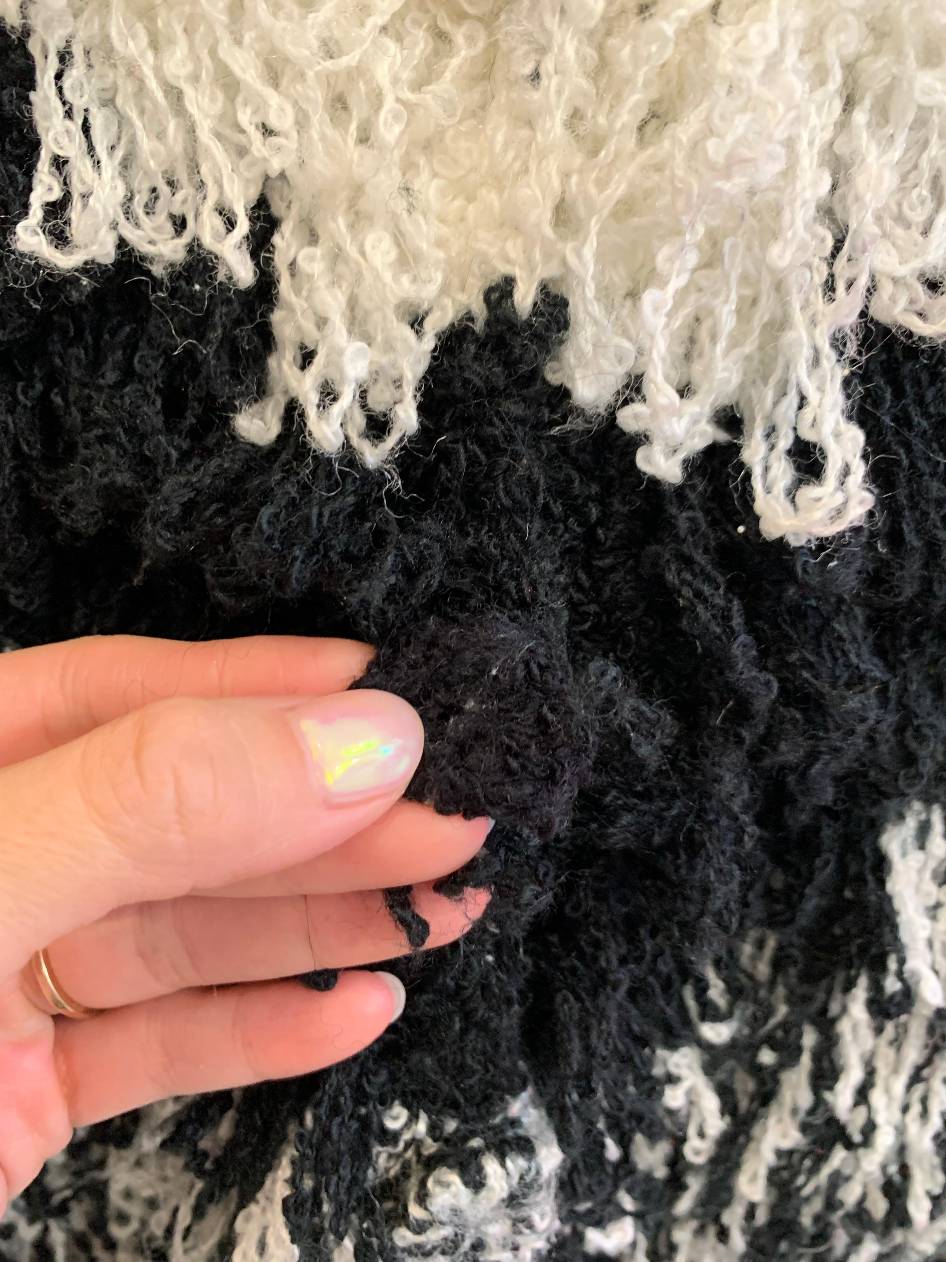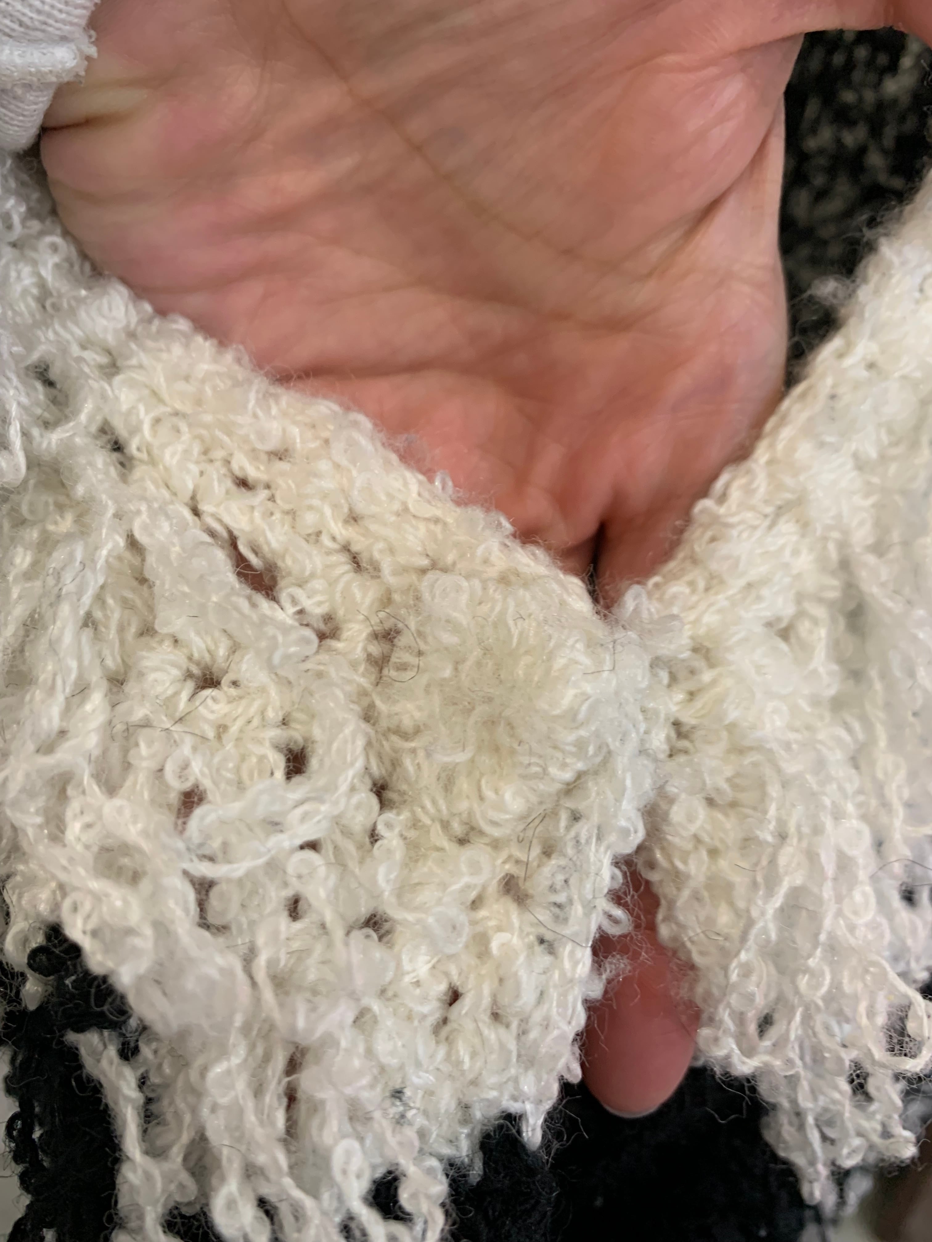 わかりづらいのですが、ボタンもニットで覆われております(写真さいご3枚)